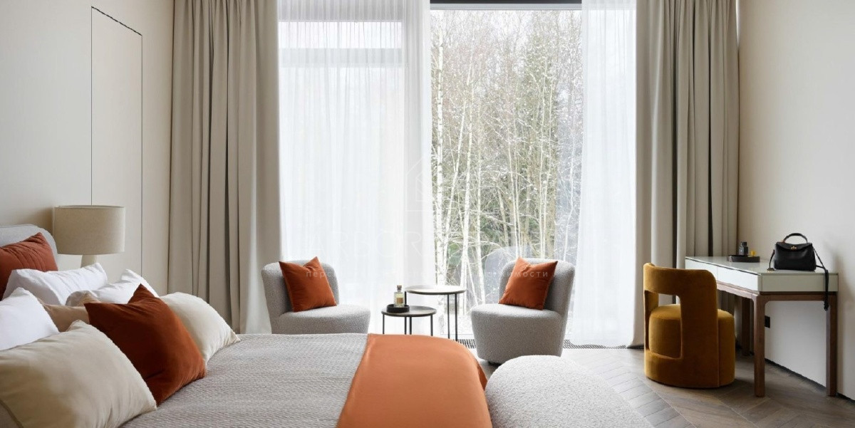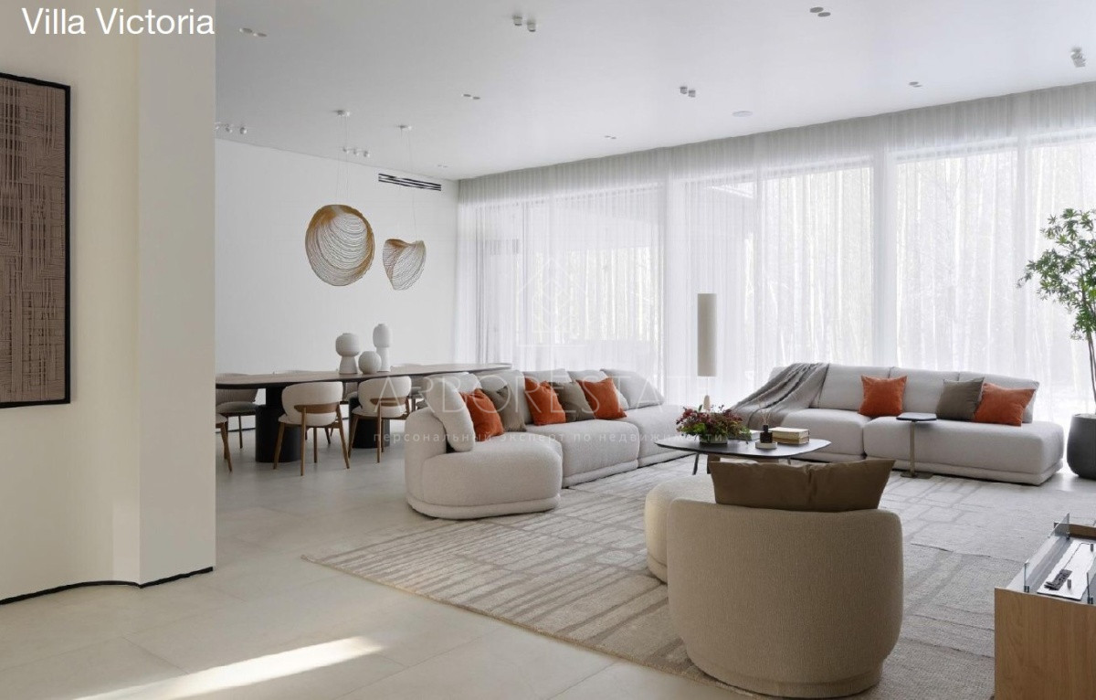 Villa Victoria — готовый к проживанию дом площадью 627,5 м² с архитектурой в стиле Hi-Tech. Пространство включает 6 спален, SPA-зону с сауной, летнюю кухню на террасе с мангалом. Отделка выполнена с использованием натуральных материалов, дополнена панорамным остеклением, открывающим вид на лес.