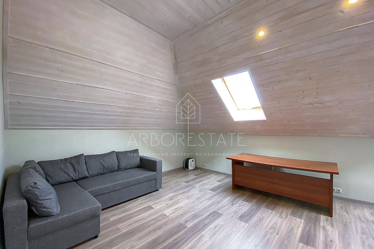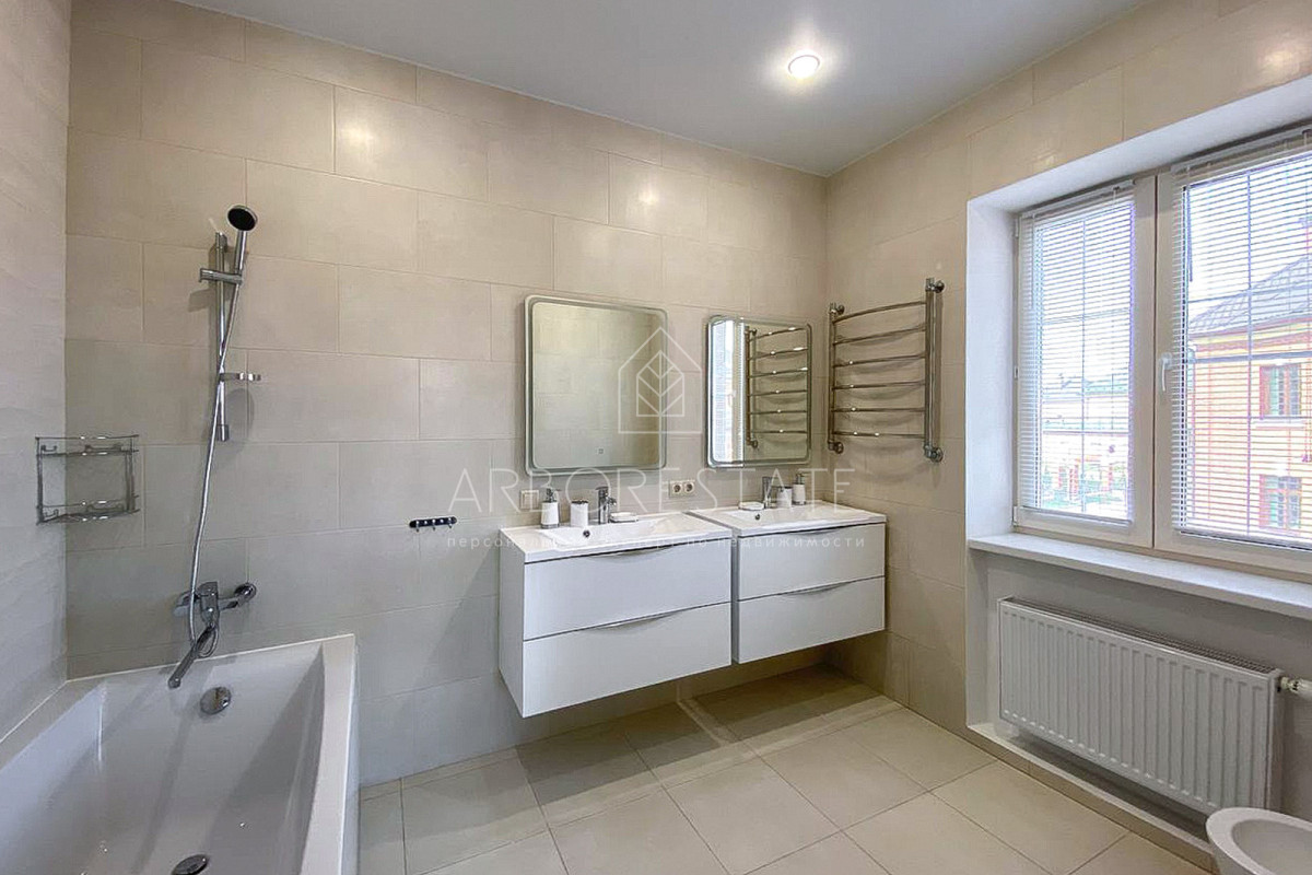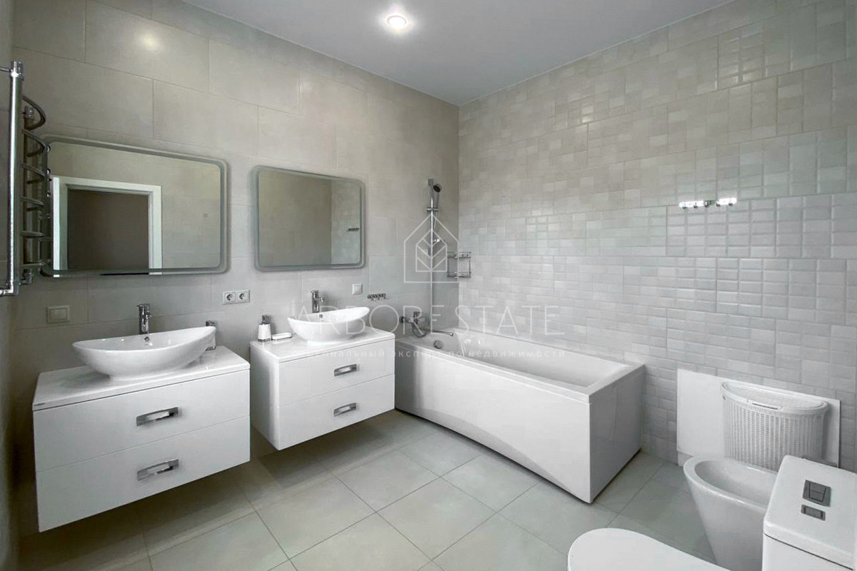В доме сделан дизайнерский ремонт. В вашем распоряжении 3 спальни, кабинет, игровая комната, застекленная отапливаемая терасса 30 кв.м, 5 санузлов, баня и гараж на 2 машиноместа.