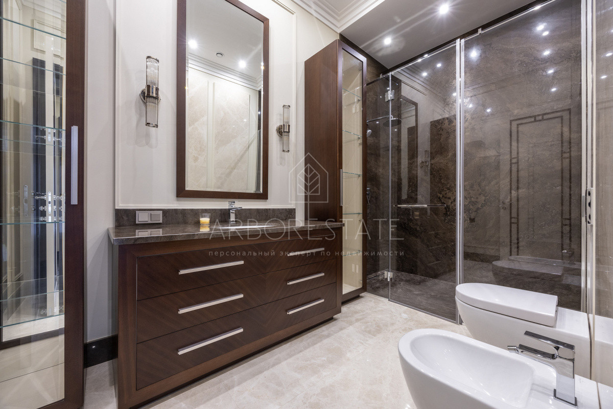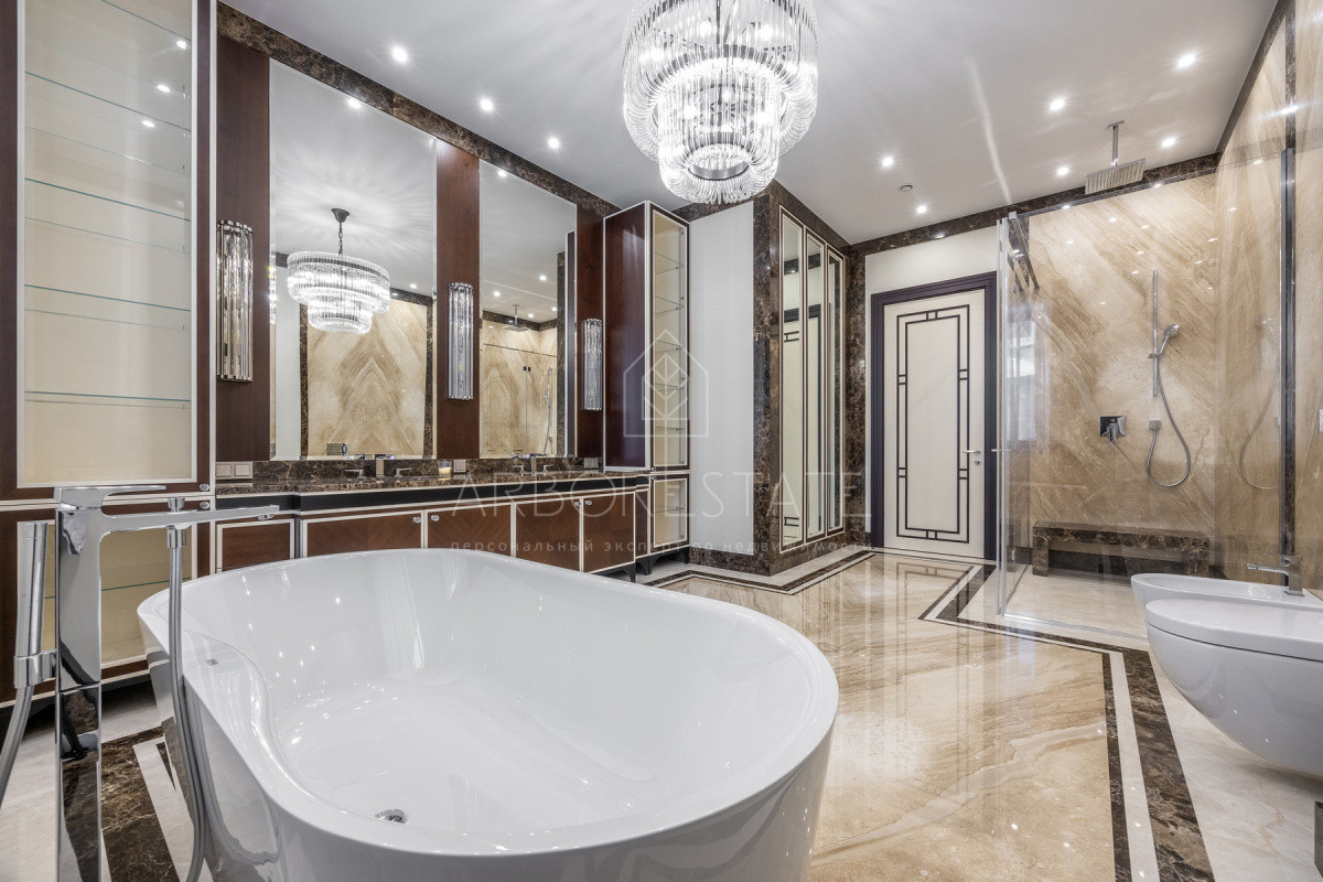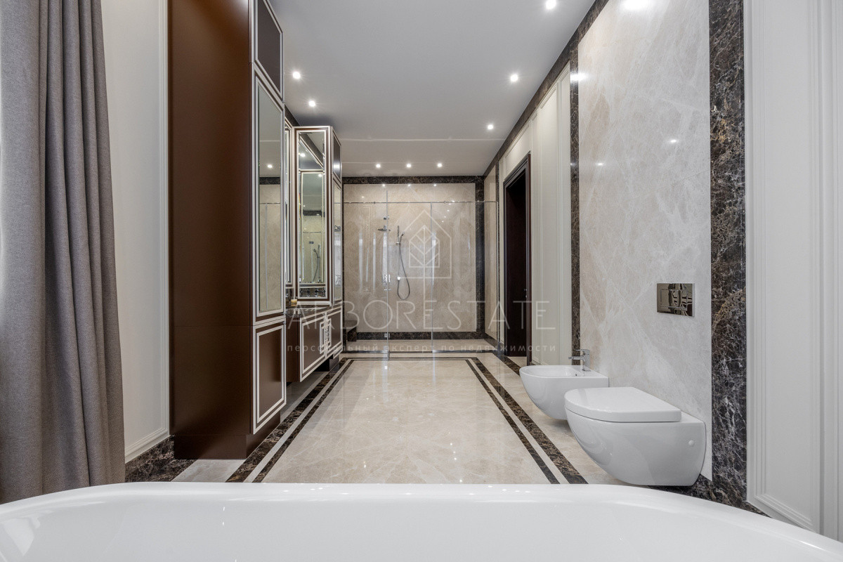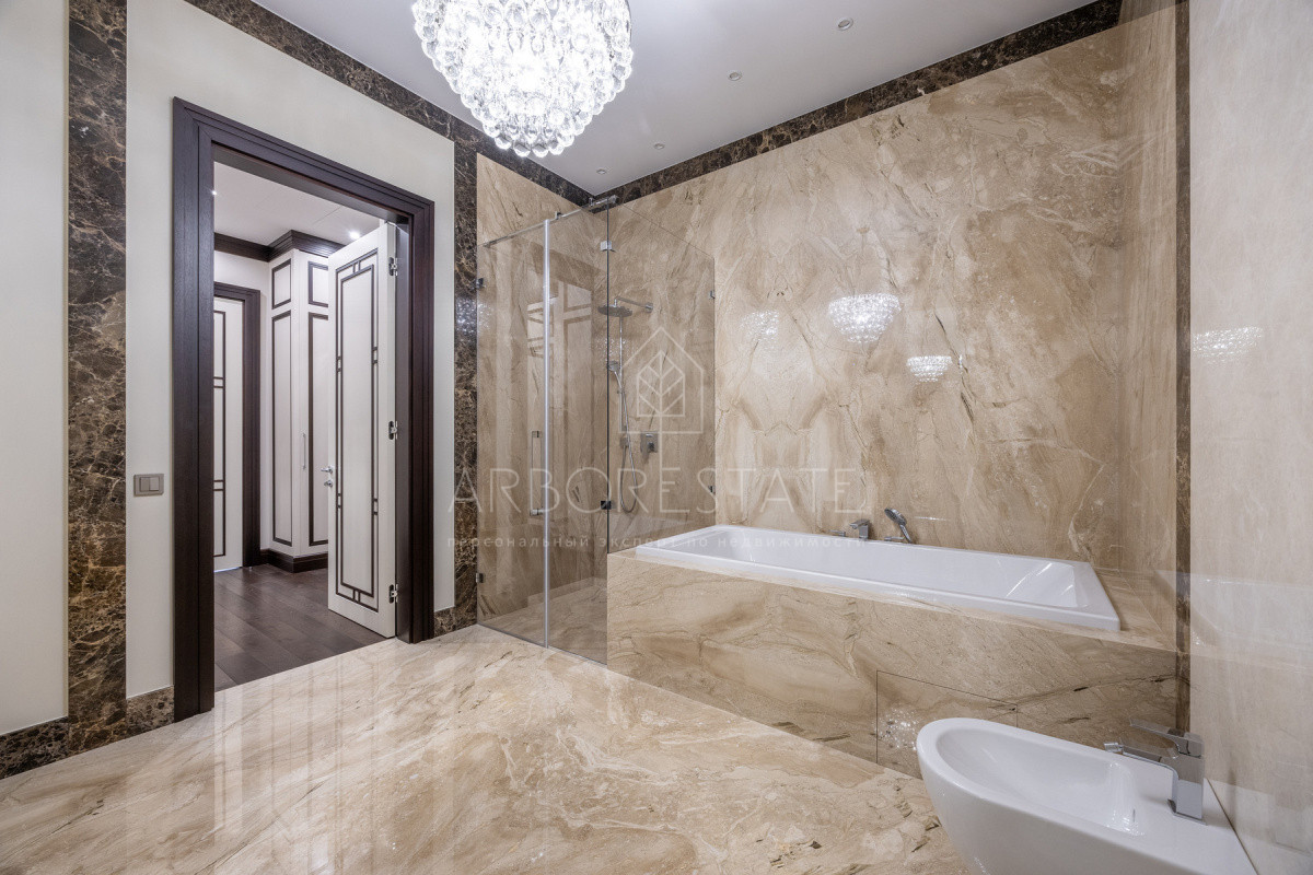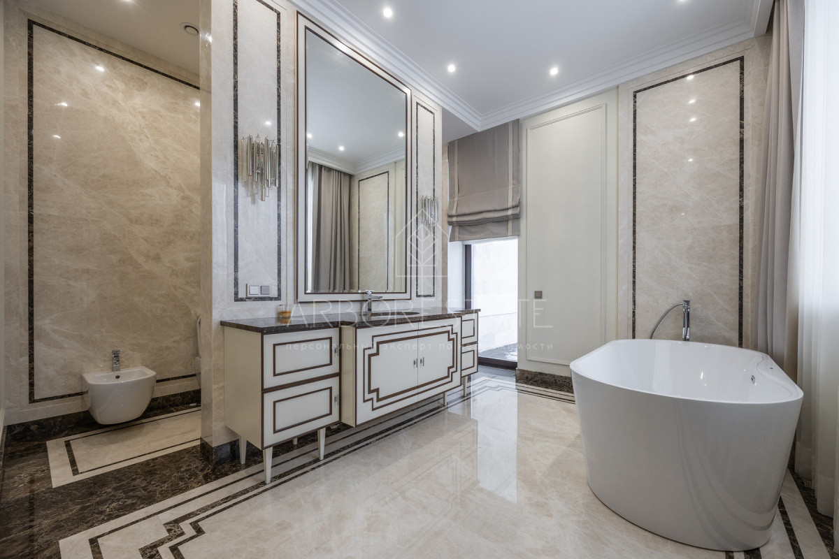 Во внутренней и внешней отделке использованы премиальные материалы: дерево, мрамор, гранит, травертин.