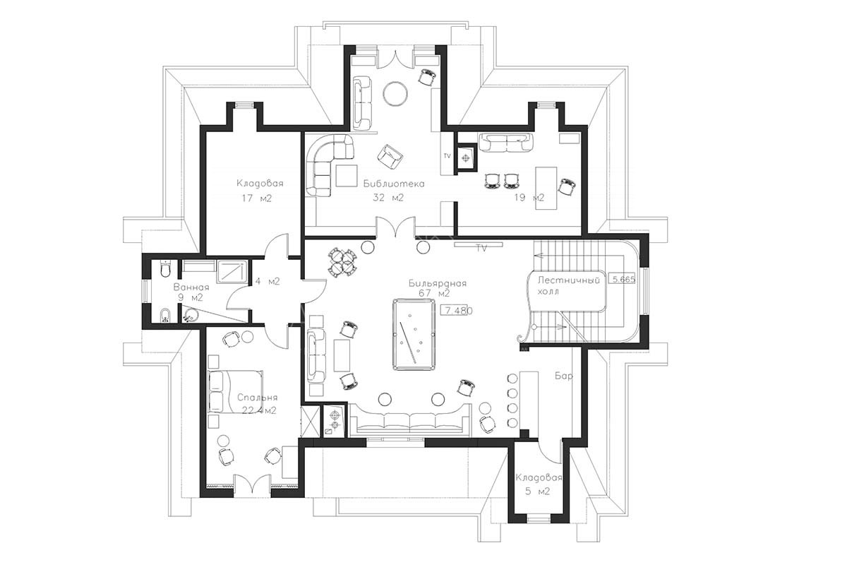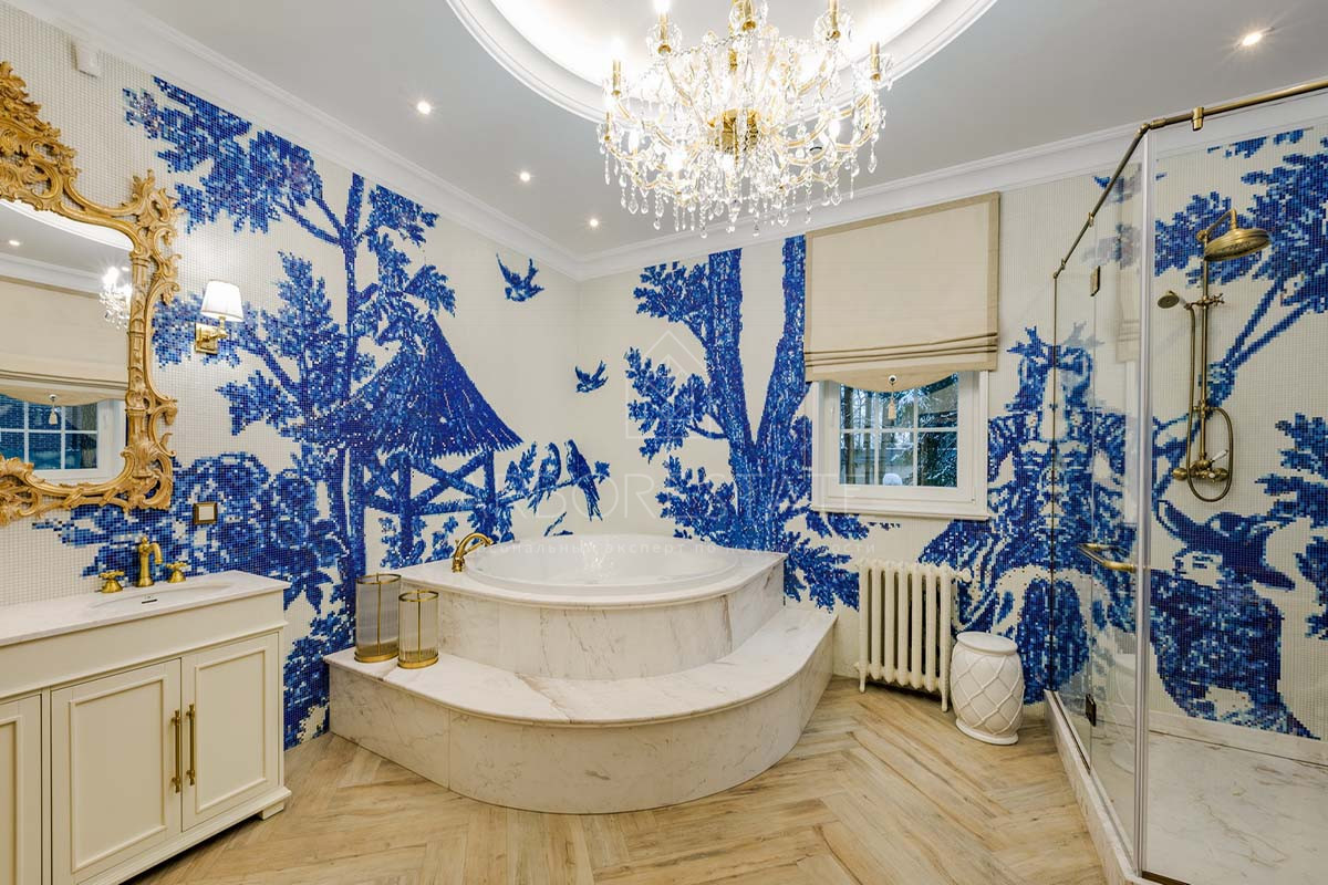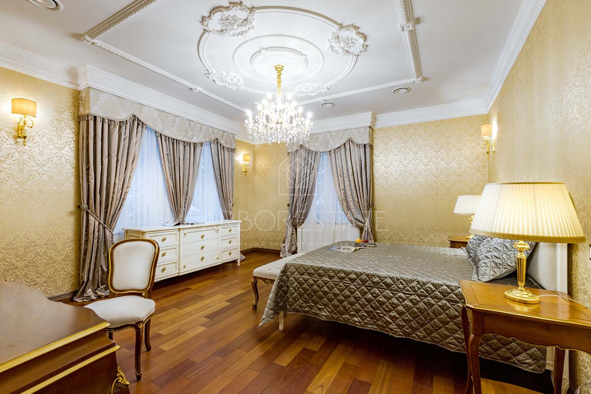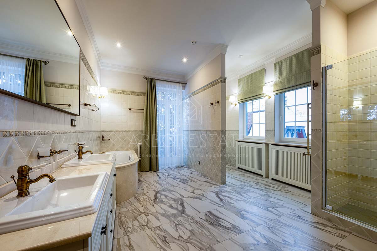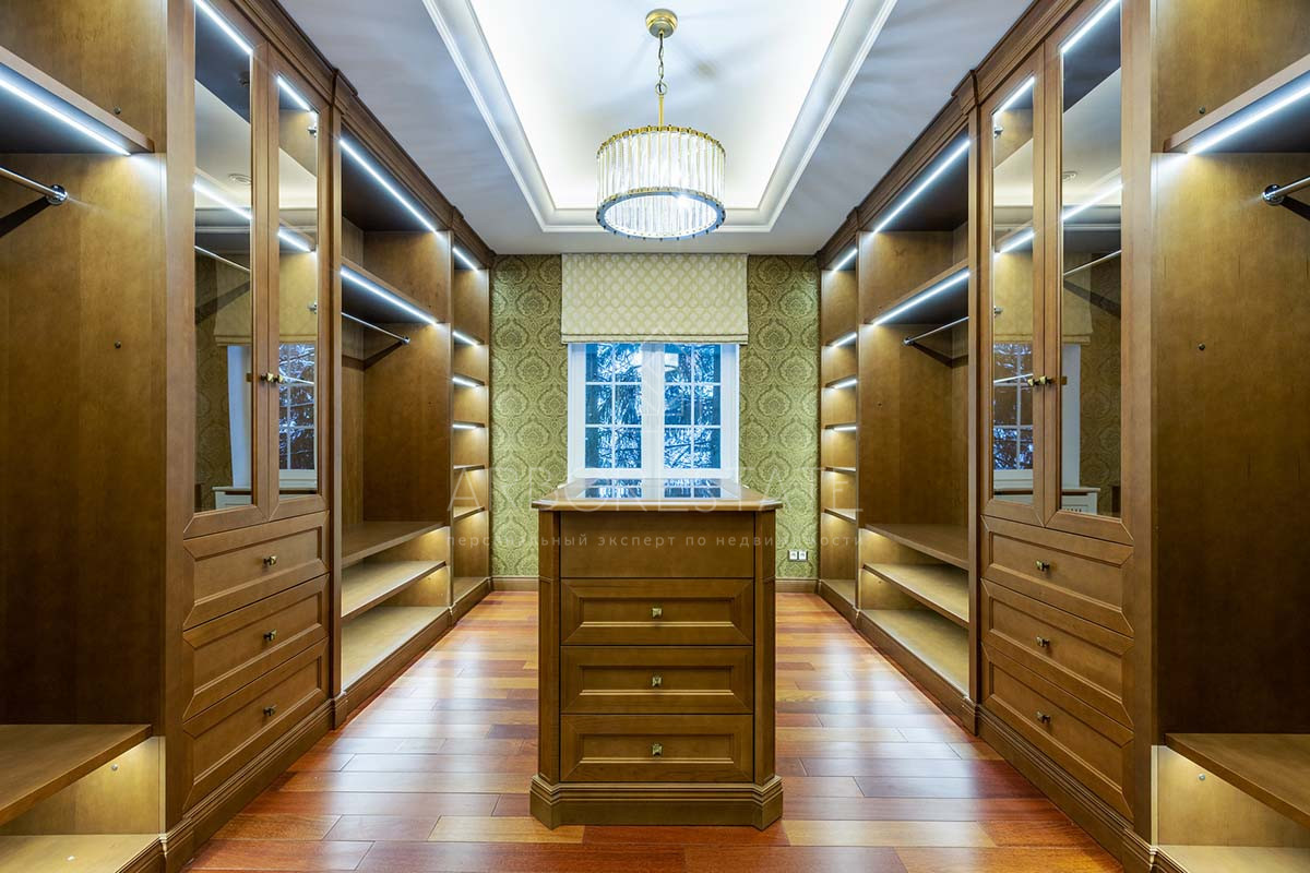 Отделка дома уникальна, выполнена по индивидуальному дизайн проекту. В отделке использованы материалы премиум класса. Удобная планировка создаёт атмосферу уюта домашнего проживания и функциональности помещений. В доме расположились гостиная с камином, столовая с выходом на приватную террасу, кухня, четыре спальных комнаты со своими санузлами, 2 гардеробные, кабинет, бильярдная, библиотека со стрельчатым потолком, зона SPA с сауной, есть подсобные помещения, постирочная. В доме гараж на 2 машиноместа.