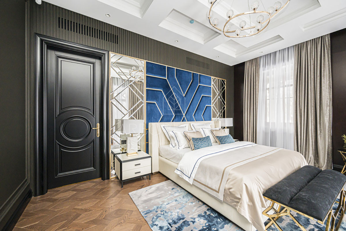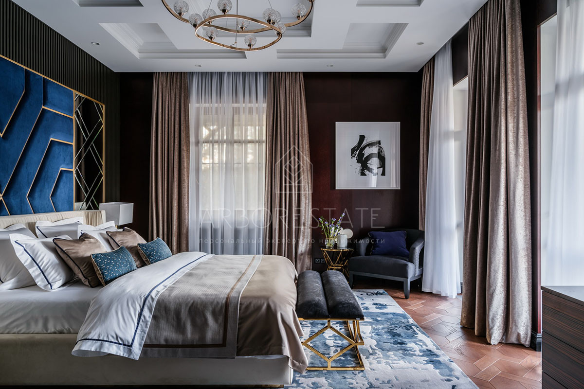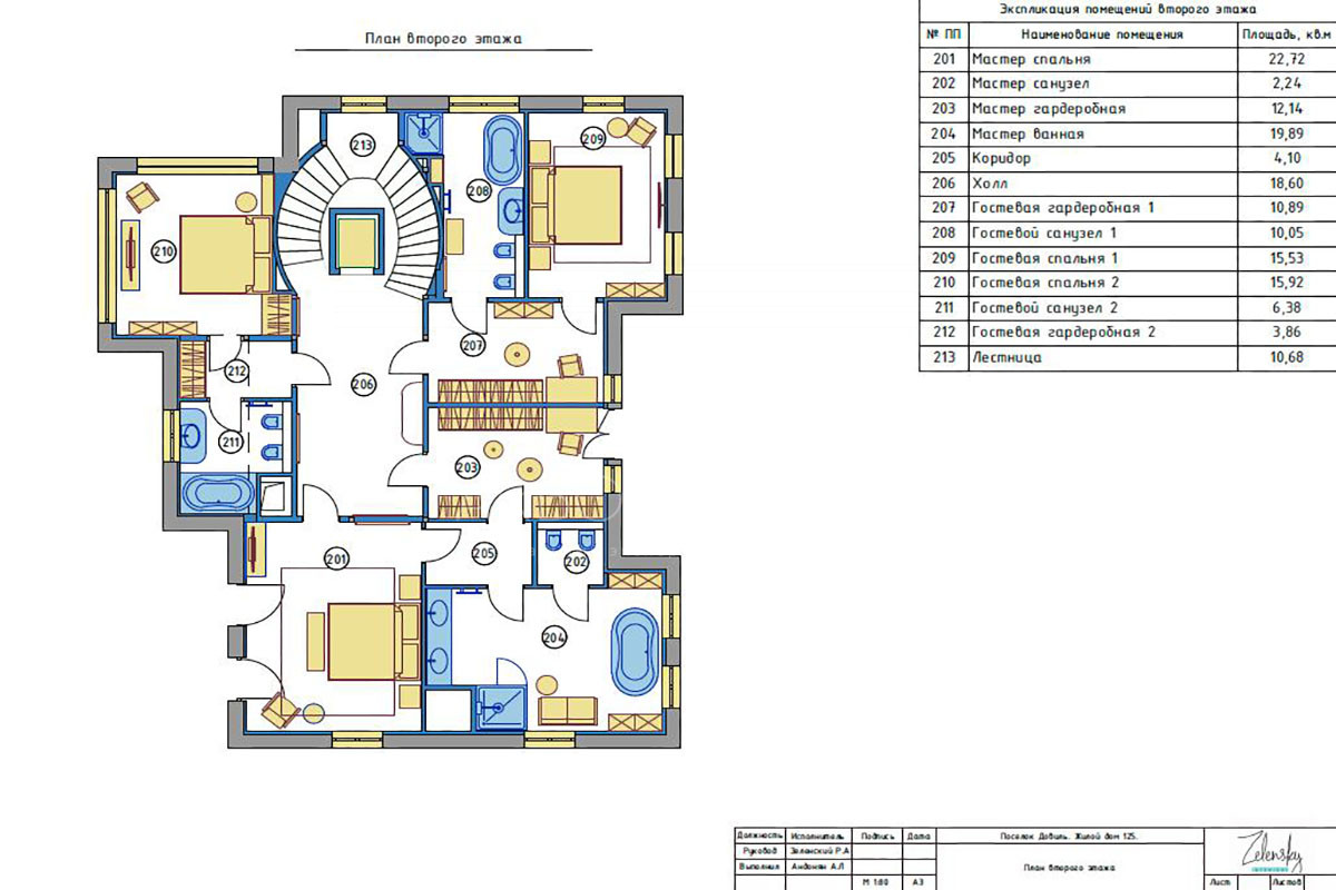 2 этаж: холл, мастер спальня с большой гардеробной и ванной комнатой, коридор, гостевая спальня 1 с ванной комнатой и гардеробной, гостевая спальня 2 с гардеробной и санузлом;