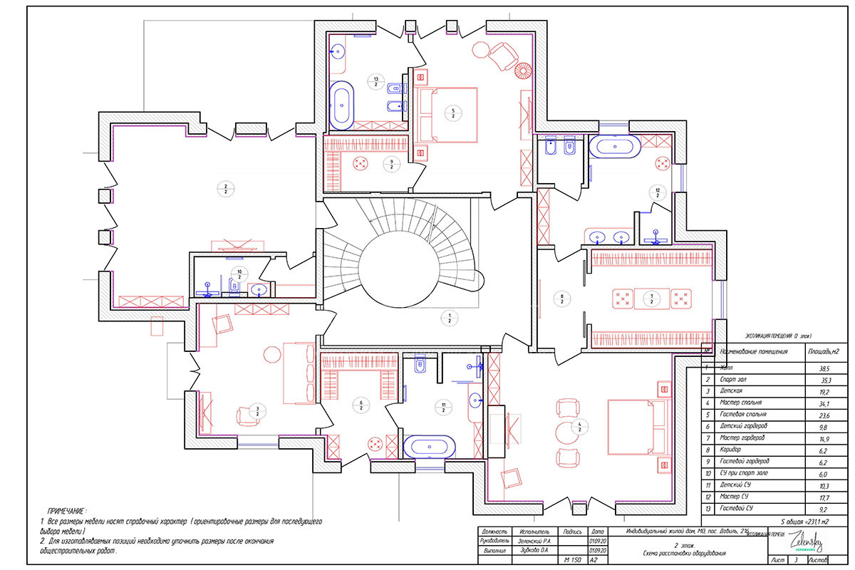 2 этаж: холл, мастер спальня с просторной гардеробной и большой ванной комнатой, спорт.зал, душевая, гостевая спальня с гардеробной и санузлом, спальня с ванной комнатой;