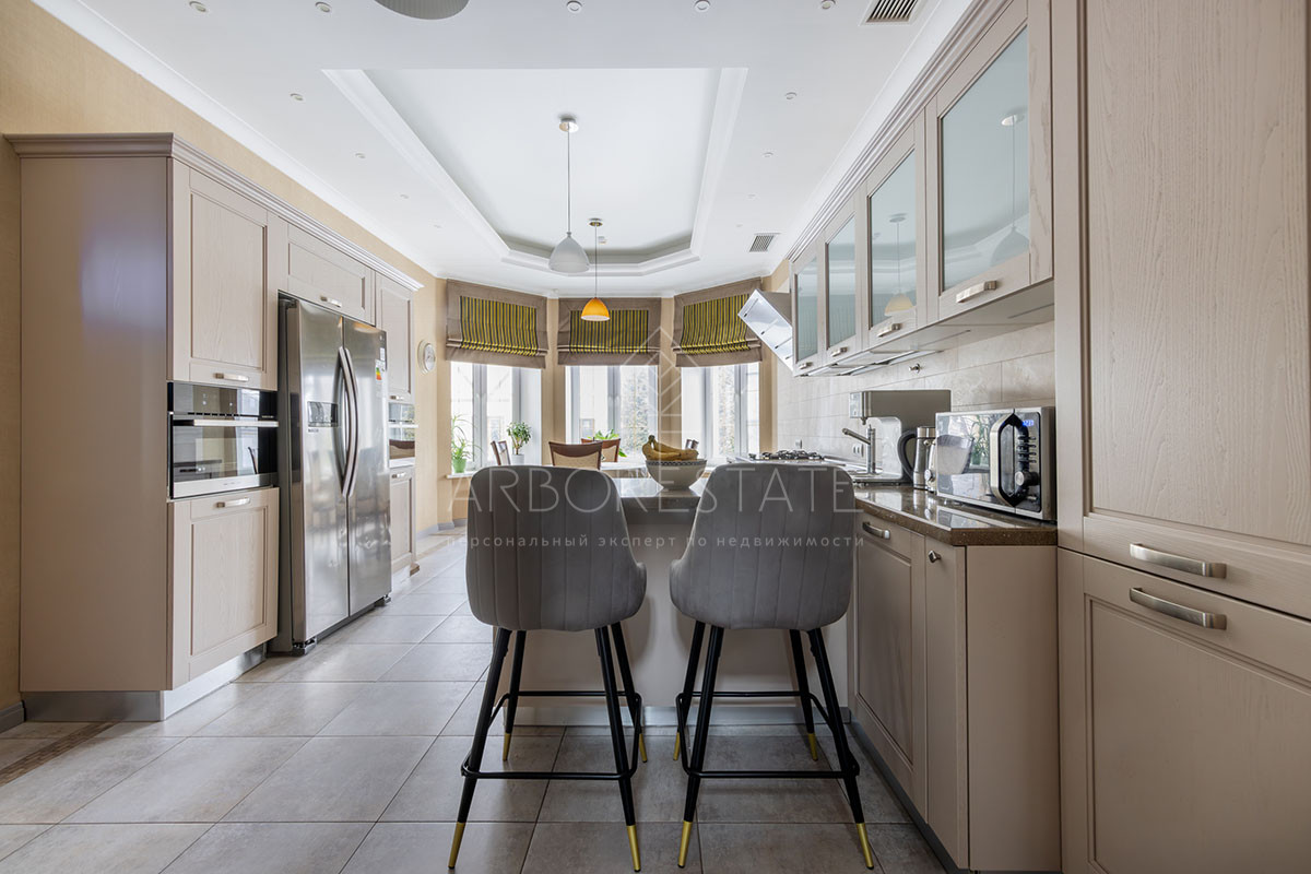Большая площадь остекления и комфортная высота потолков делают внутреннее пространство объемным, светлым и уютным. Функциональная планировка позволяет с комфортом разместиться большой семье и гостям. В доме установлена сантехника и бытовая техника ведущих производителей.