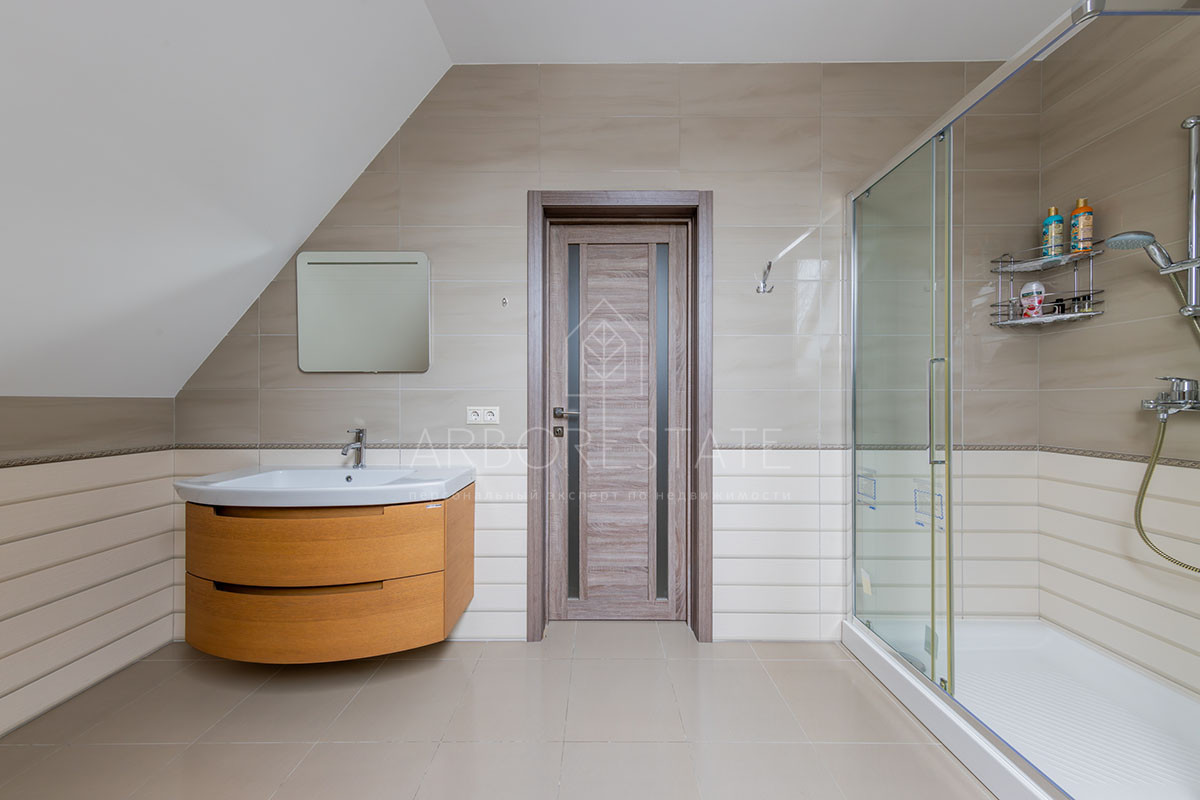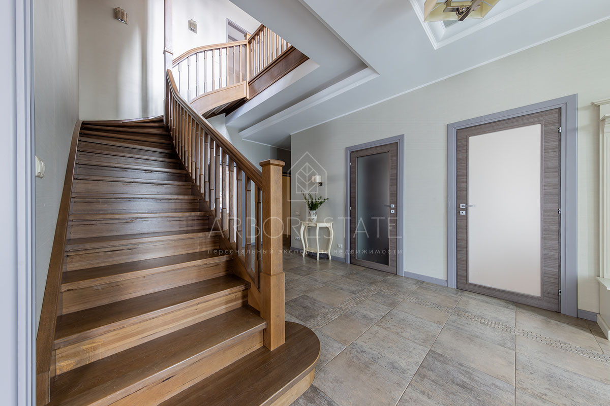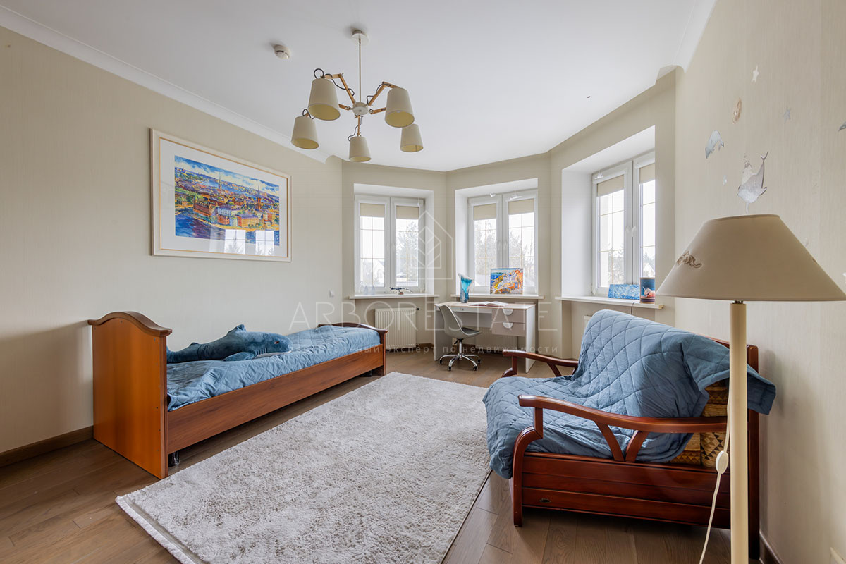 2 этаж: холл, мастер-спальня с 2-мя гардеробным и ванной комнатой, 3 спальни, гардеробная, санузел.