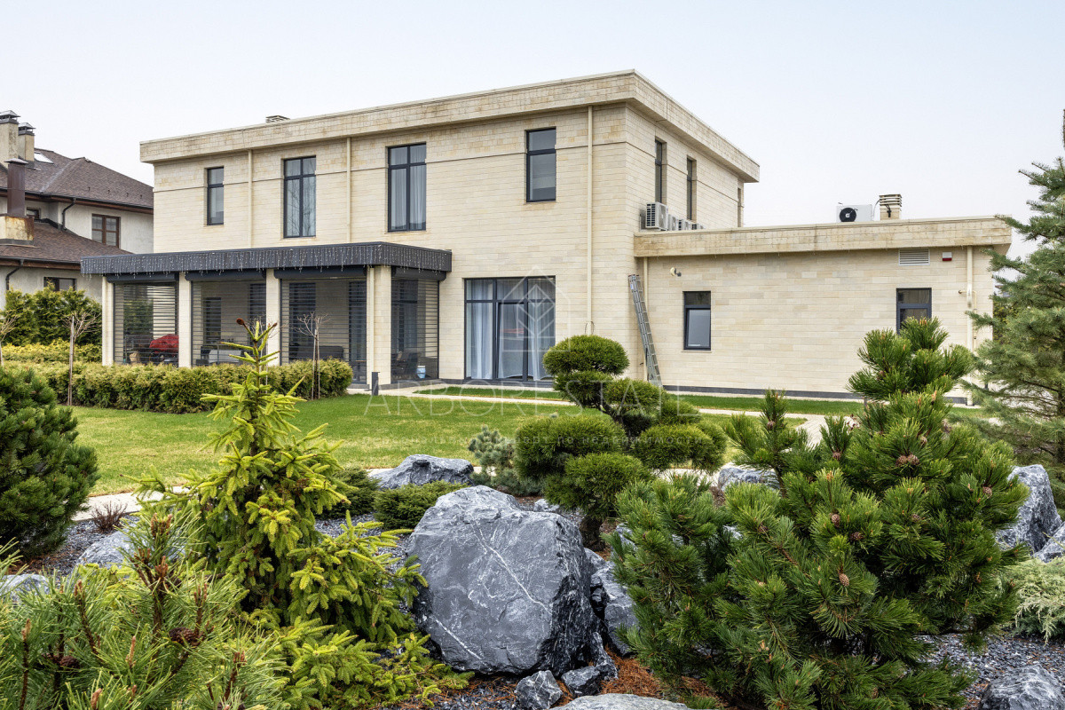 Дом построен из высококачественных материалов. Цоколь и 3 входные группы облицованы натуральным гранитом.