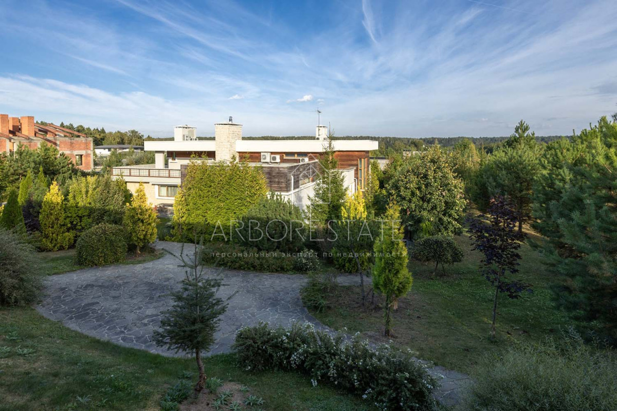Участок площадью 40 соток с ландшафтным проектированием, озеленение, дорожками и освещением.