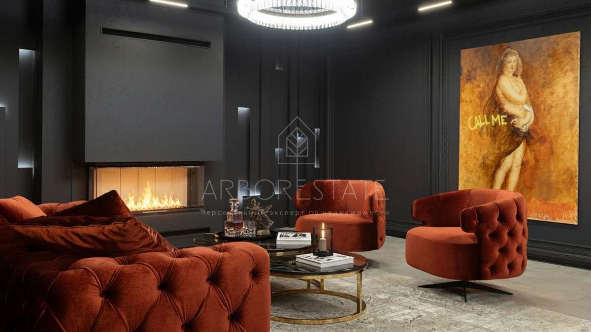 Для вдохновения и отдыха предназначены уютная гостиная с камином, открытая