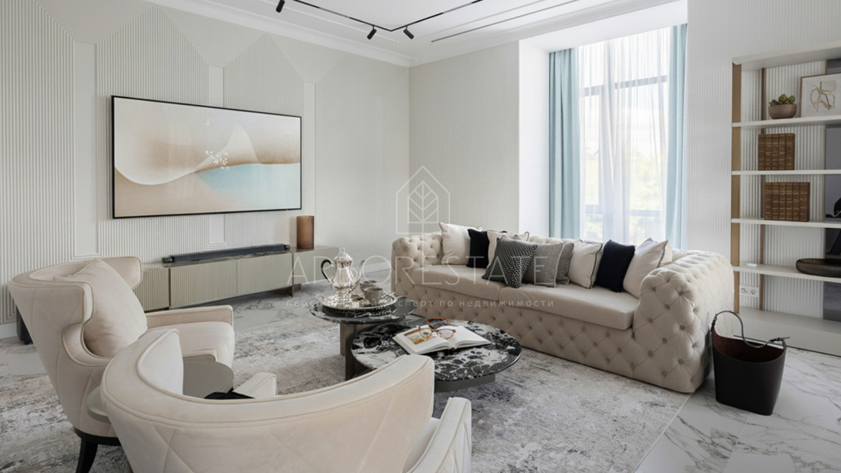 Интерьеры, выдержанные в светлых тонах, отделаны с использованием