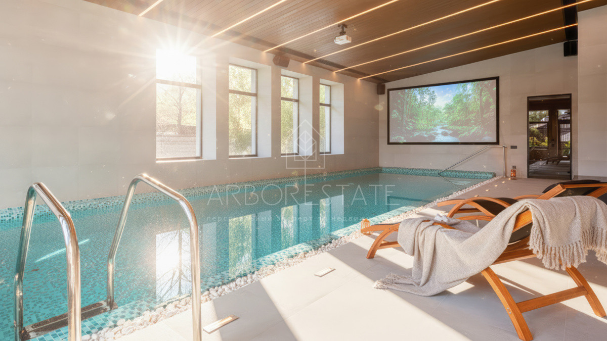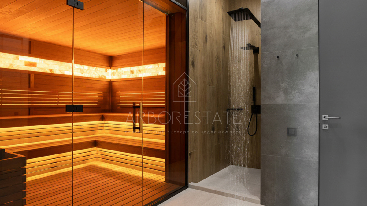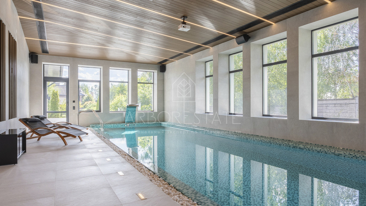роскошная спа-зона с сауной и бассейном 3,5 на 15 метров. Цокольный уровень