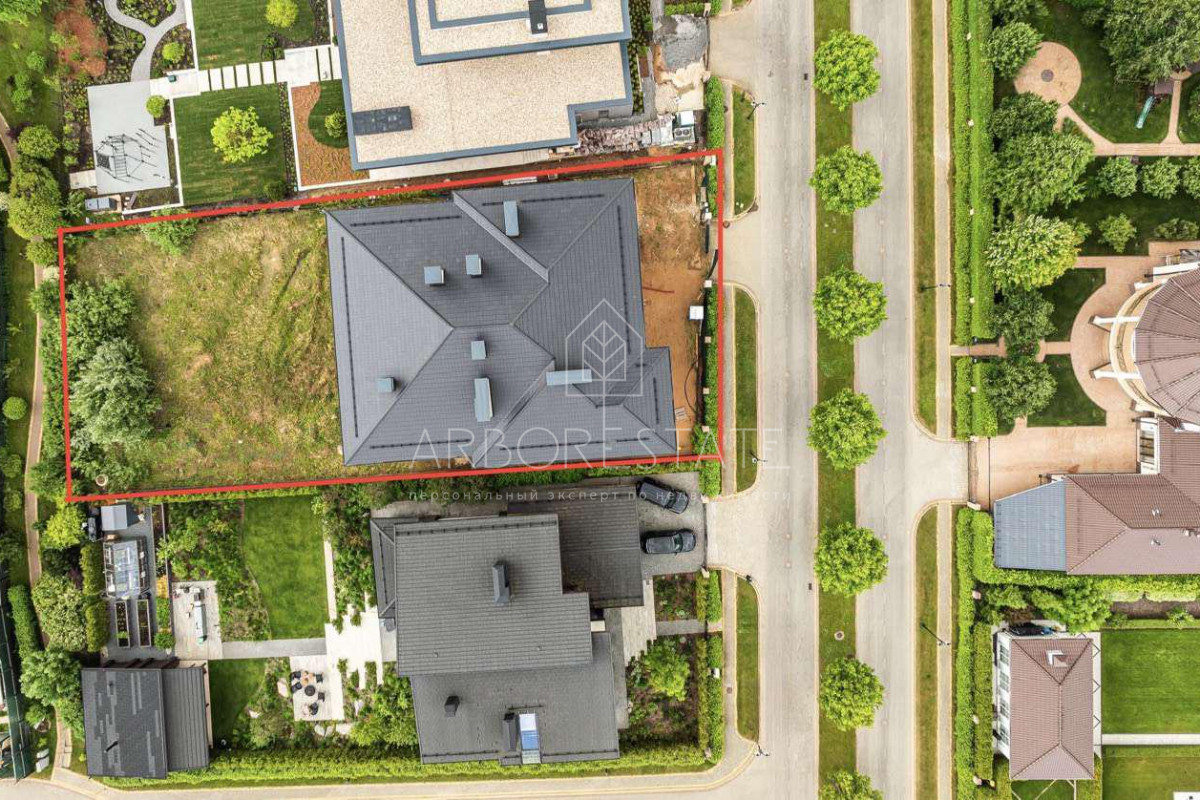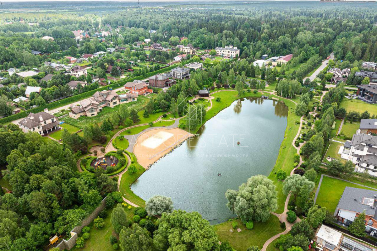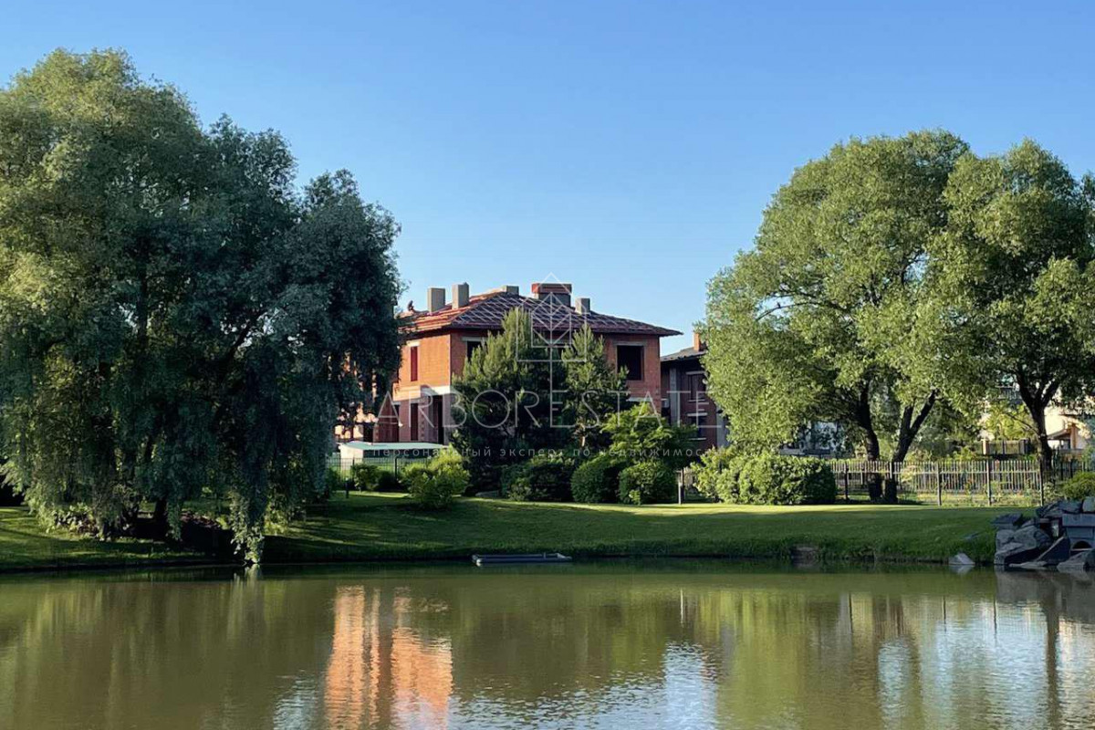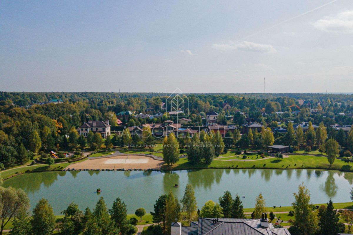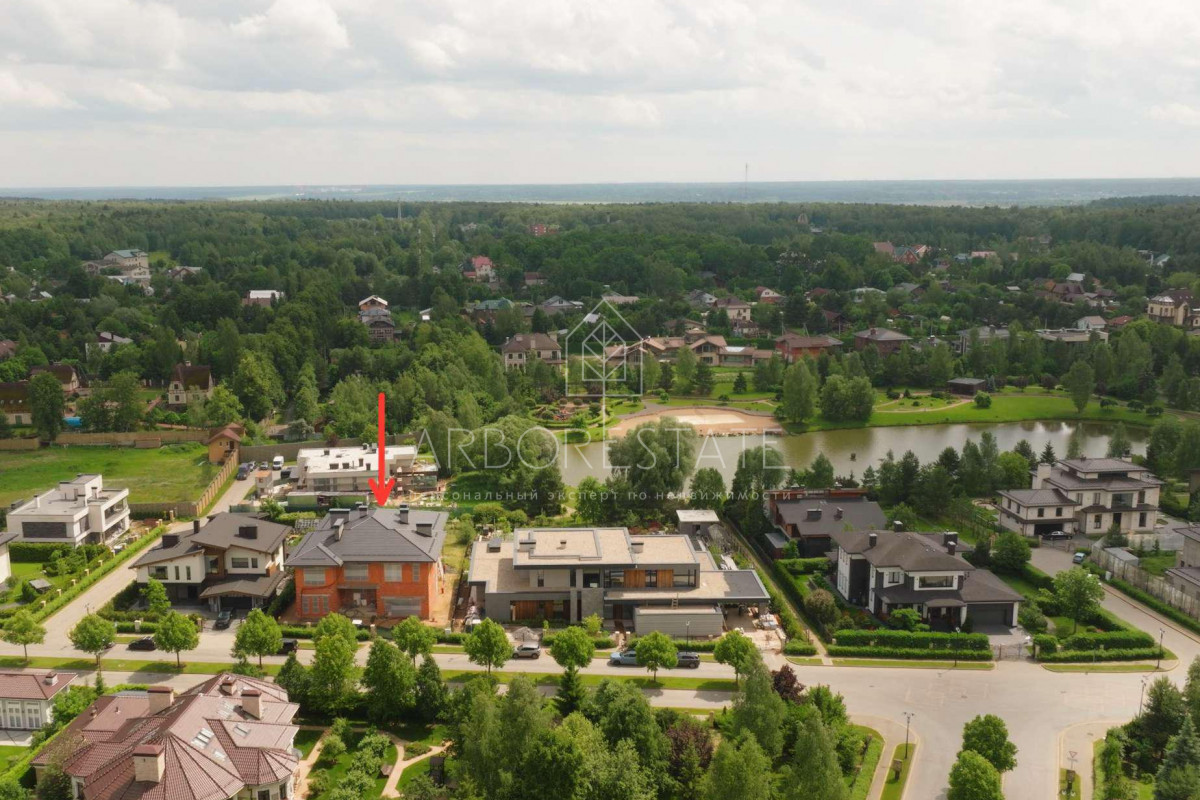 В планировке дома прослеживается современный подход к дизайну интерьера дома. Высокие потолки подчеркивают конструктивные линии дома и делают пространство еще просторнее.Несмотря на свой большой размер, дом очень грамотно посажен на участке, что позволяет создать гармоничный ландшафтный дизайн и просторный внутренний двор.Участок площадью 15 соток имеет правильную прямоугольную форму и собственный выход в парковую зону на озеро. Фасад дома смотрит на главный поселковый парк.
