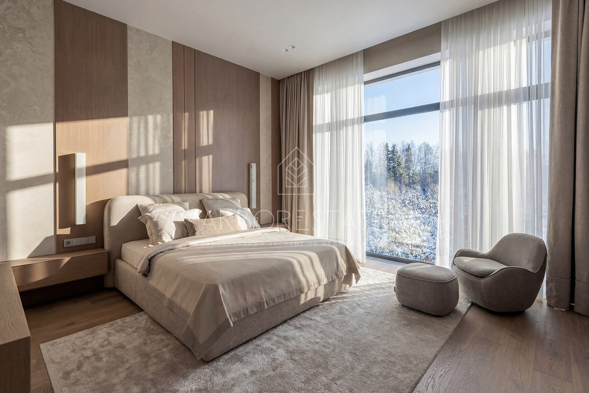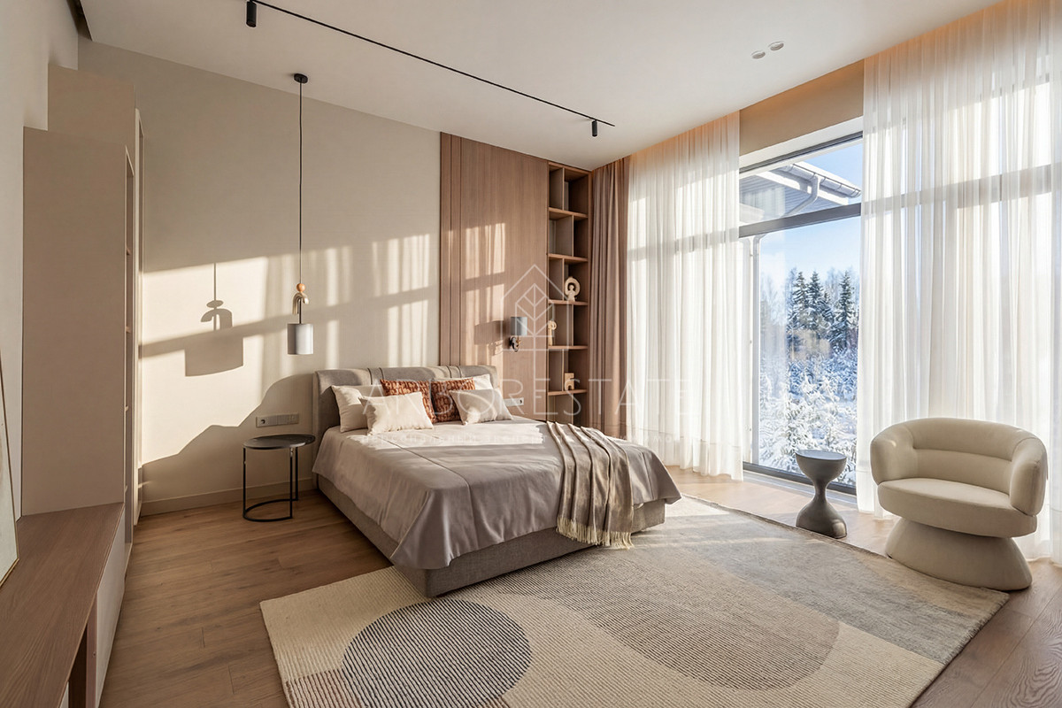 2 этаж: холл, спальня с с/у и гардеробной, спальня с с/у и гардеробной, мастер-спальня с 2 гардеробными и с/у, кабинет.