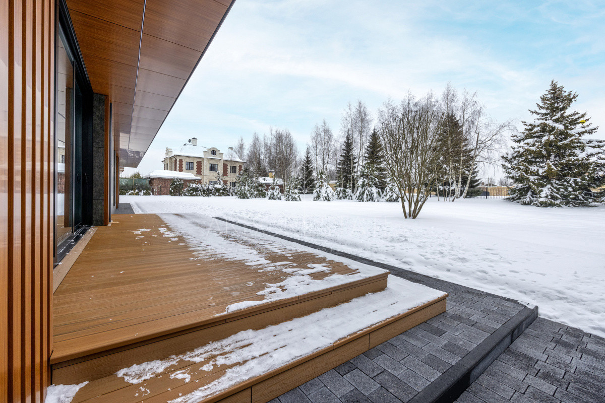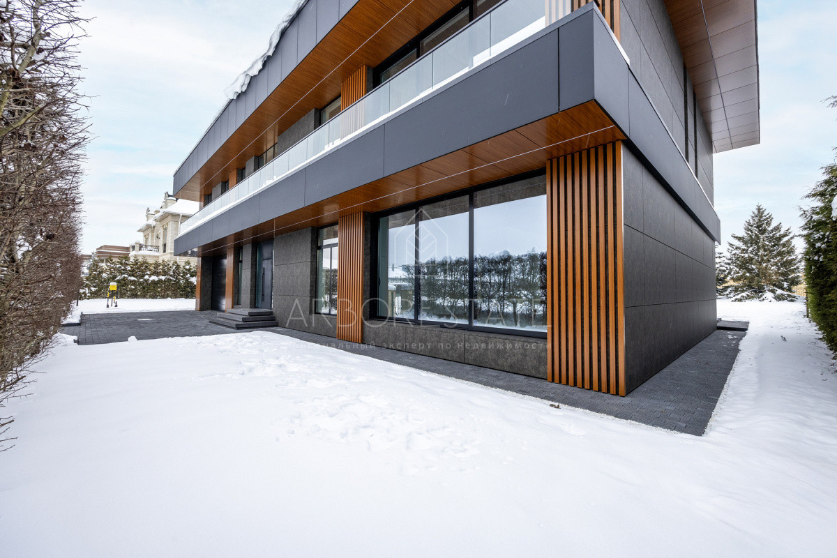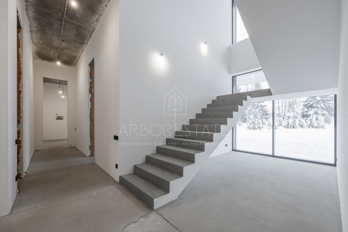 Современный дом готовый под чистовую отделку. В доме 2 этажа. На первом этаже расположены гардеробная, постирочная, кухня-гостиная, рабочая кухня, кладовая, с/у, спальня с с/у и гардеробной, кабинет с с/у, комната для персонала с с/у, котельная. На втором этаже 3 спальни со своими гардеробными и с/у, мастер-спальня с двумя гардеробными, с/у и кабинетом, постирочная, помещение свободного назначения с выходом на эксплуатируемую кровлю и с/у. Есть возможность приобрести данный дом на 10 сотках.
