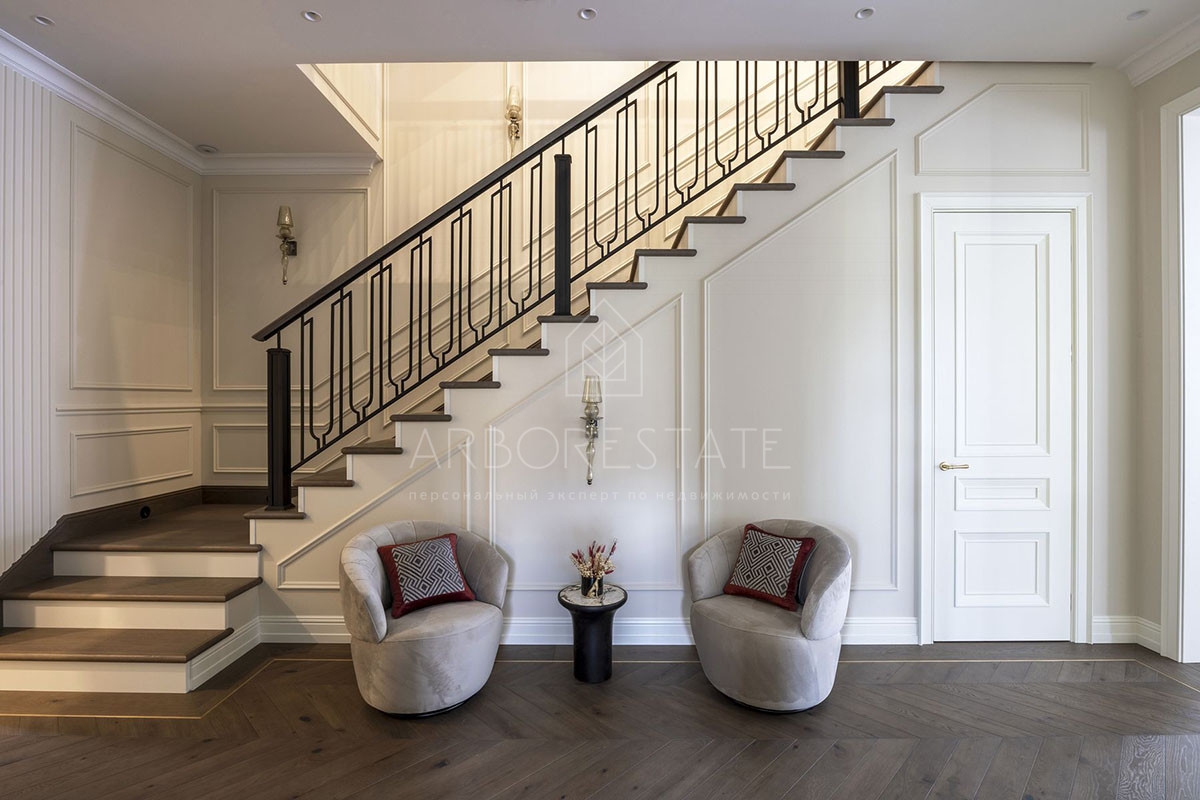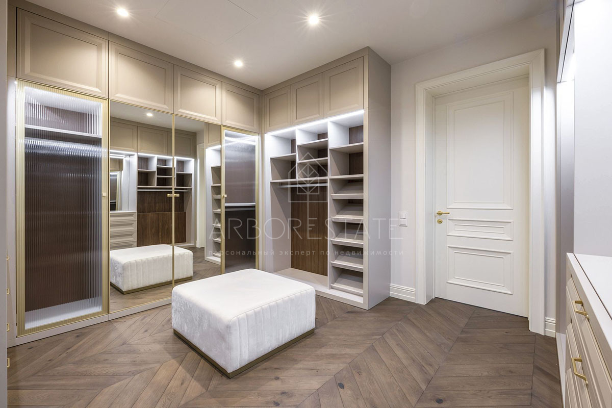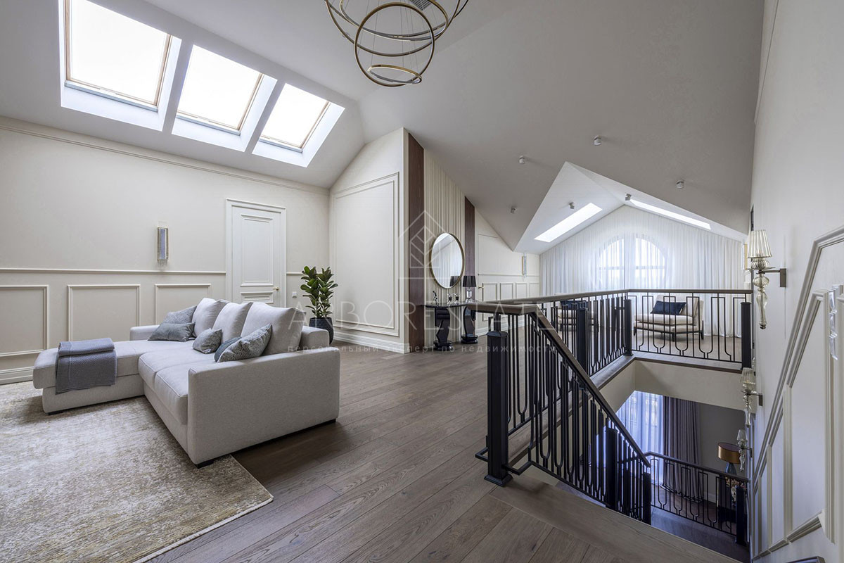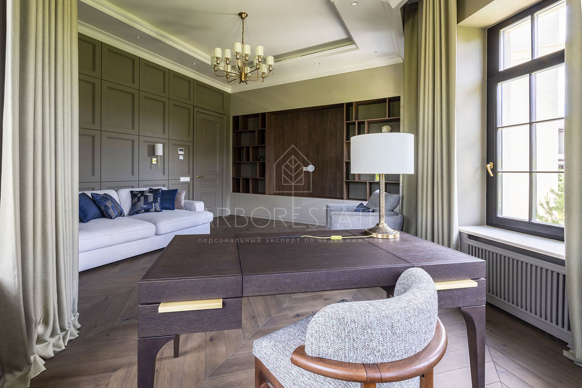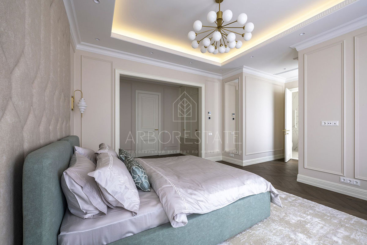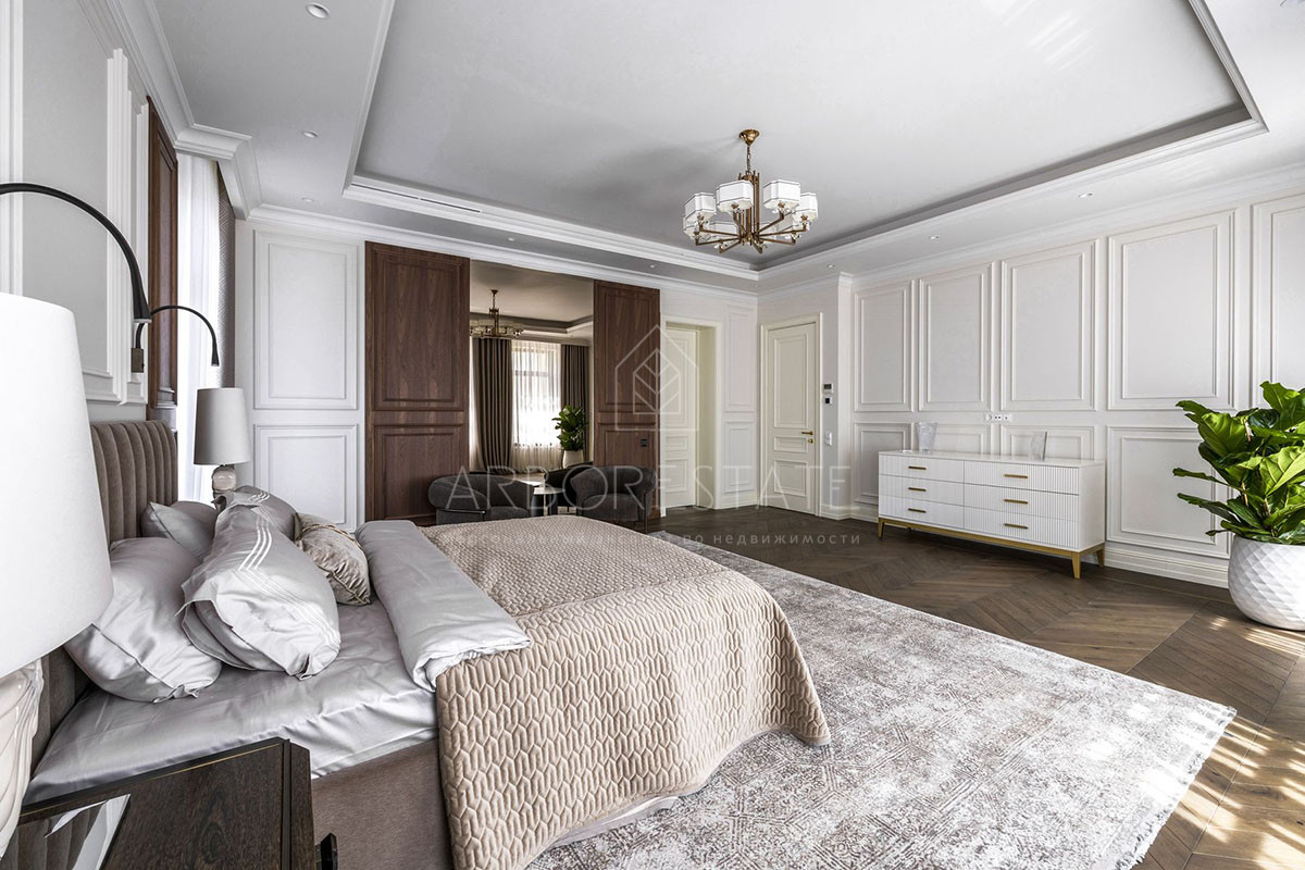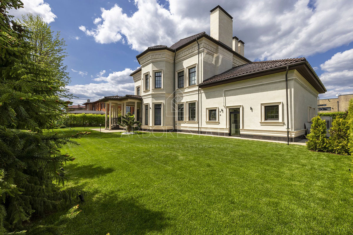 Преимущества дома: современная стилистика отделки, премиальные материалы, 6 спален, СПА зона (сауна, хаммам), гараж на 2 машиноместа, блок для персонала со своей кухней.