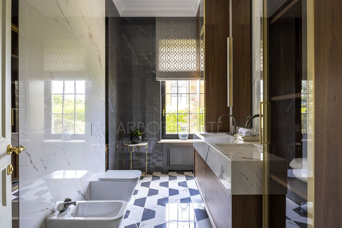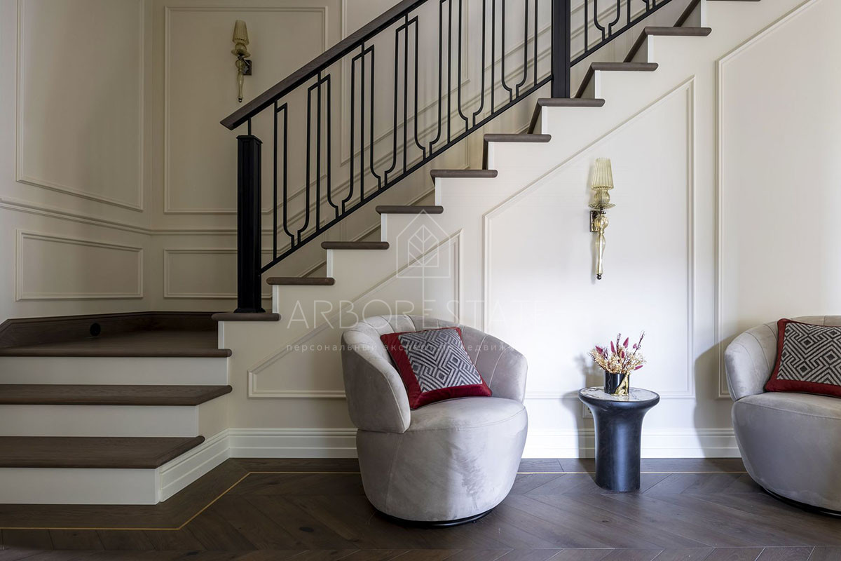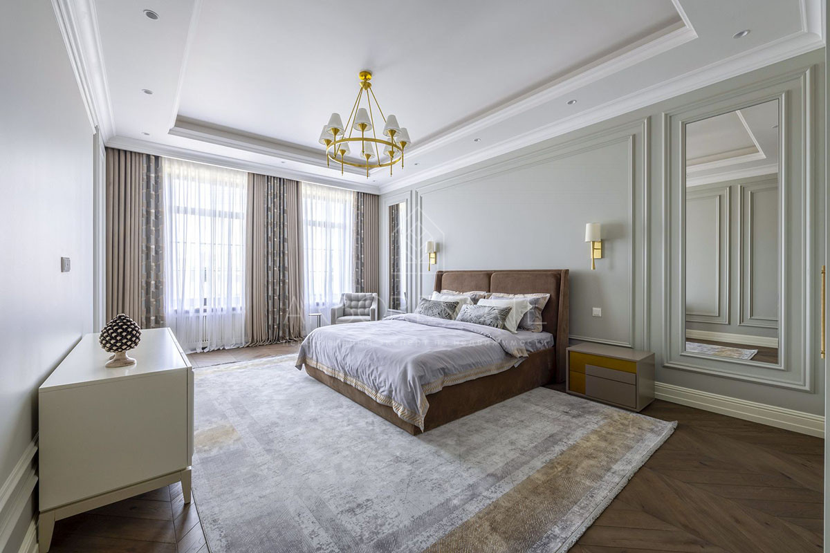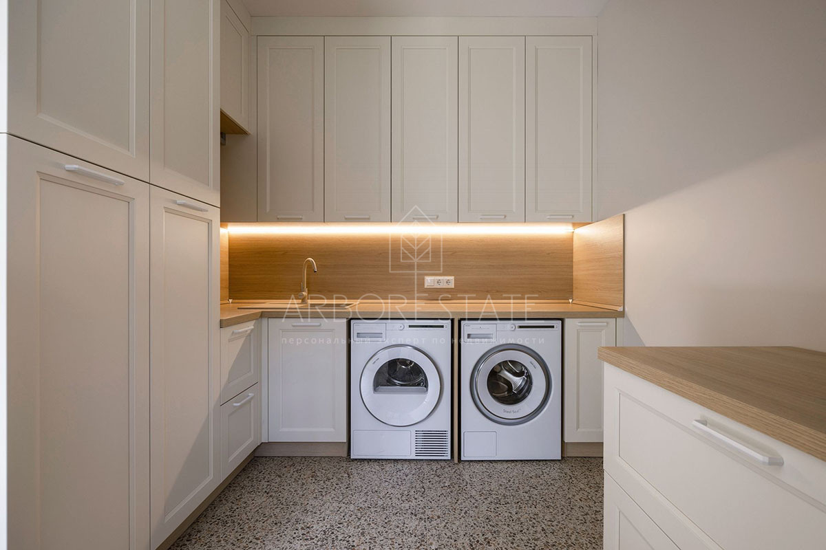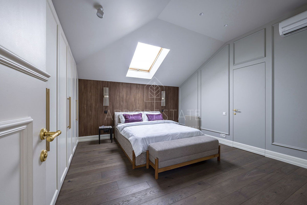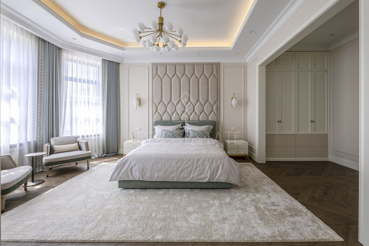 Преимущества дома: современная стилистика отделки, премиальные материалы, 6 спален, СПА зона (сауна, хаммам), гараж на 2 машиноместа, блок для персонала со своей кухней.