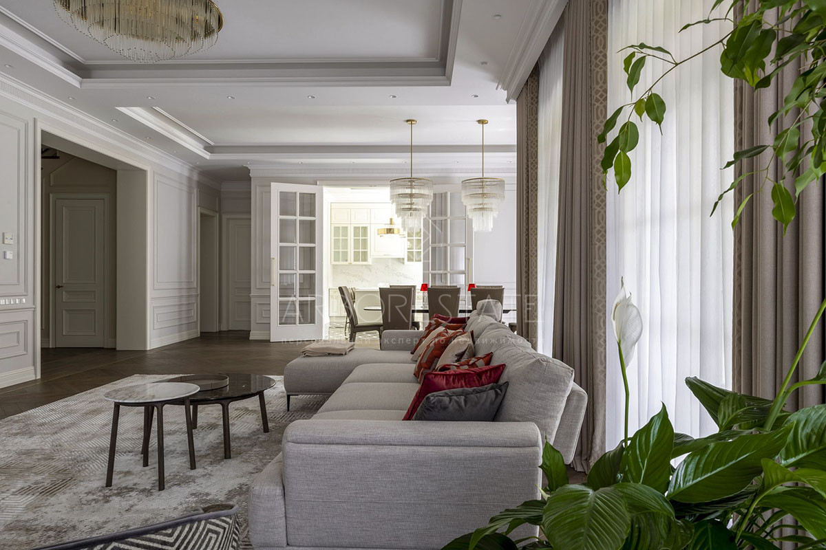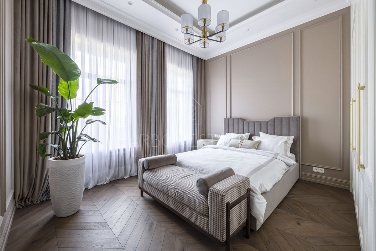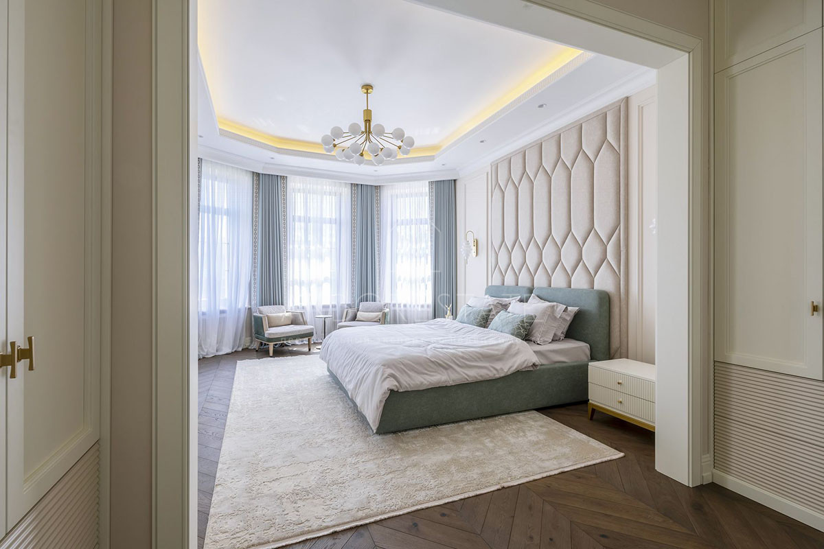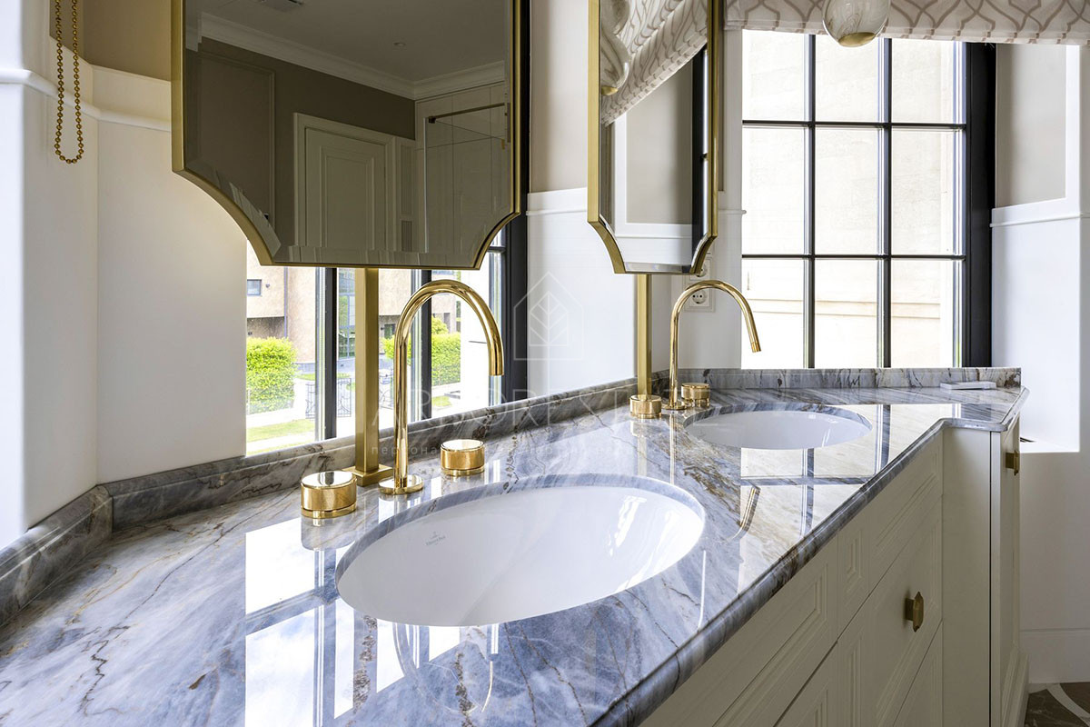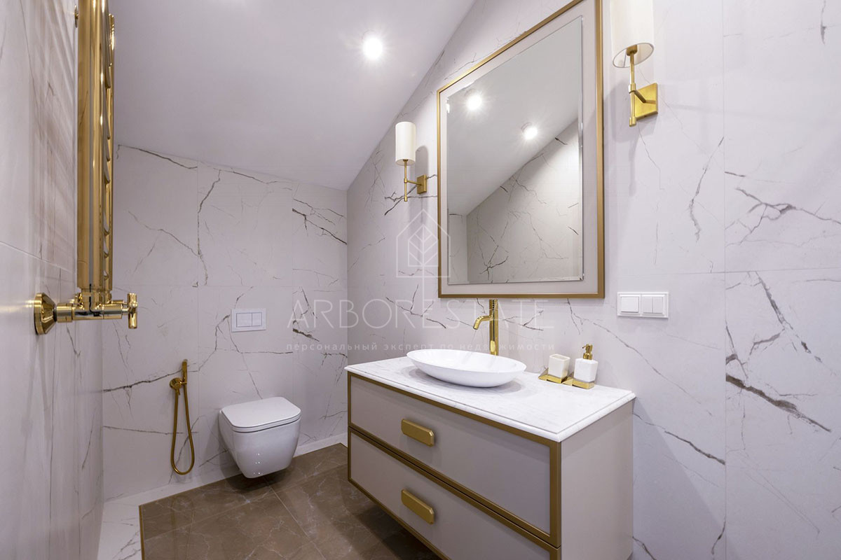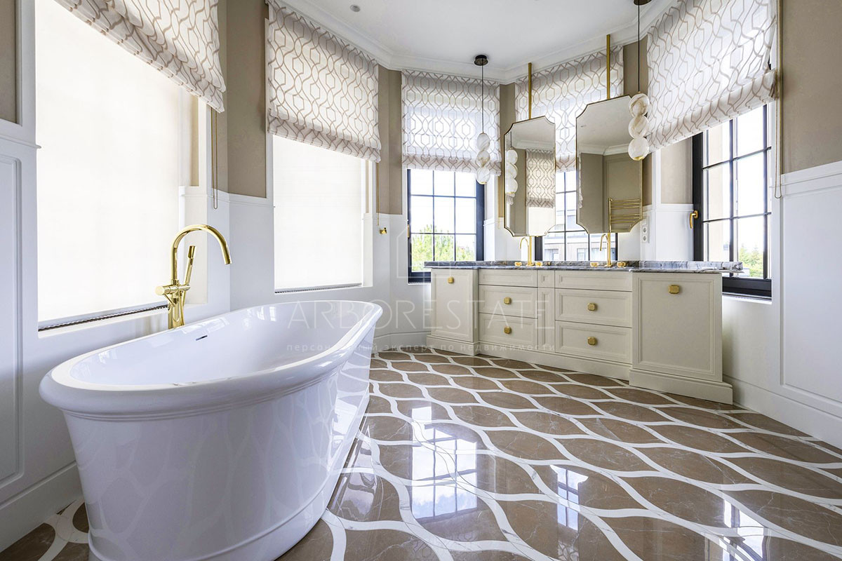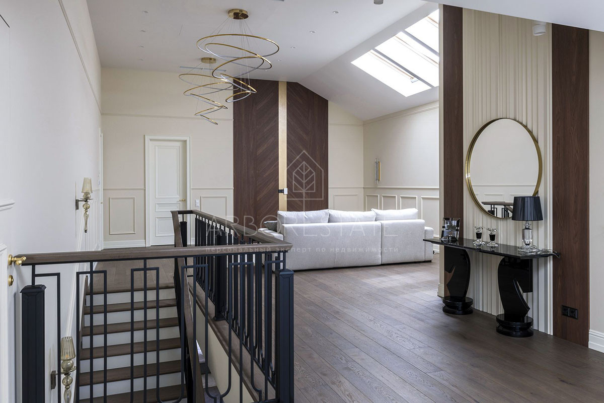 Преимущества дома: современная стилистика отделки, премиальные материалы, 6 спален, СПА зона (сауна, хаммам), гараж на 2 машиноместа, блок для персонала со своей кухней.