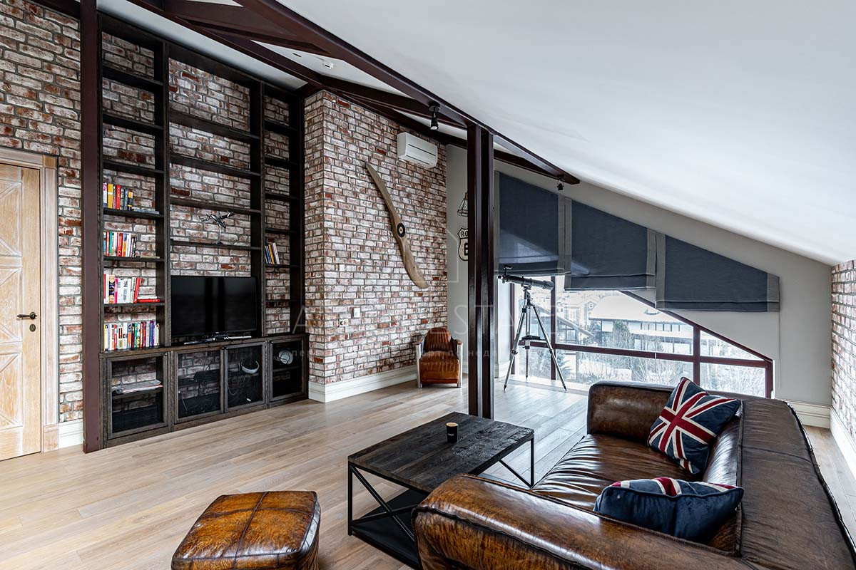 Загородный дом в стиле шале находится в престижном посёлке "Миллениум парк" на Новой Риге и полностью готов к проживанию.