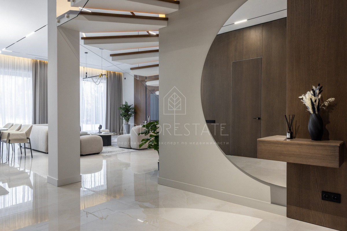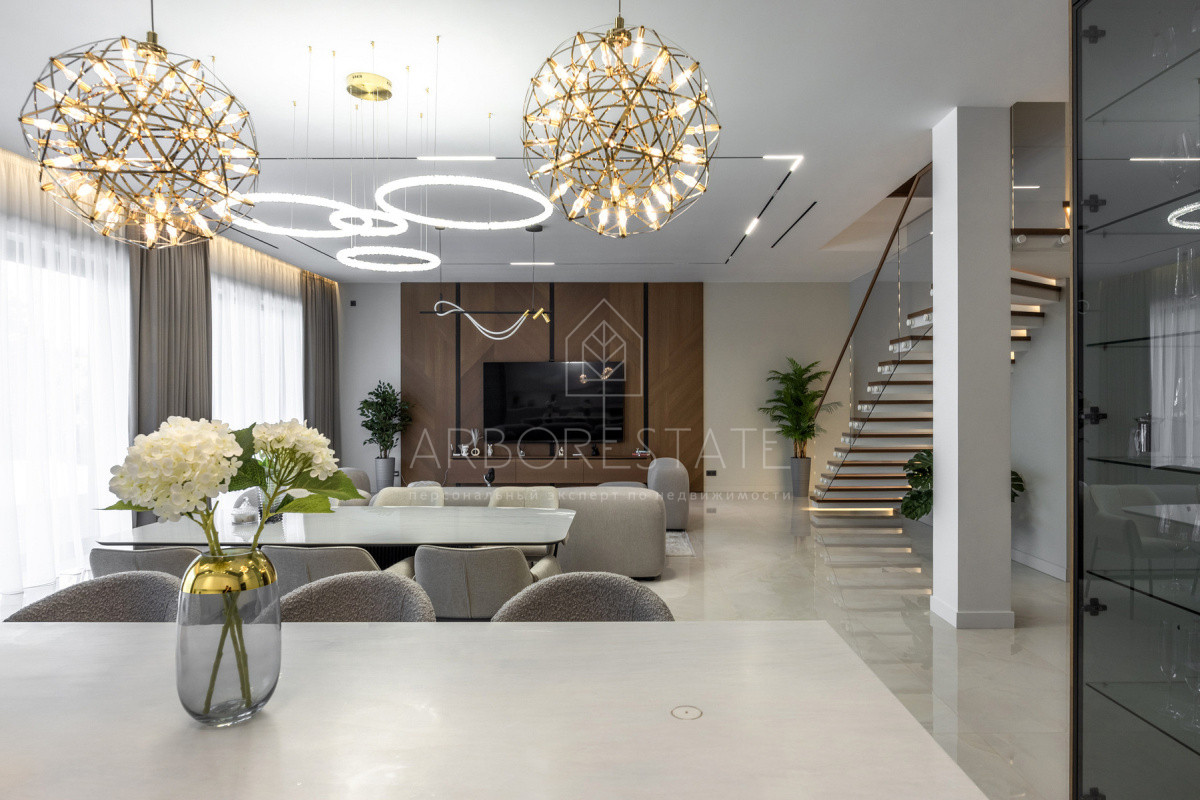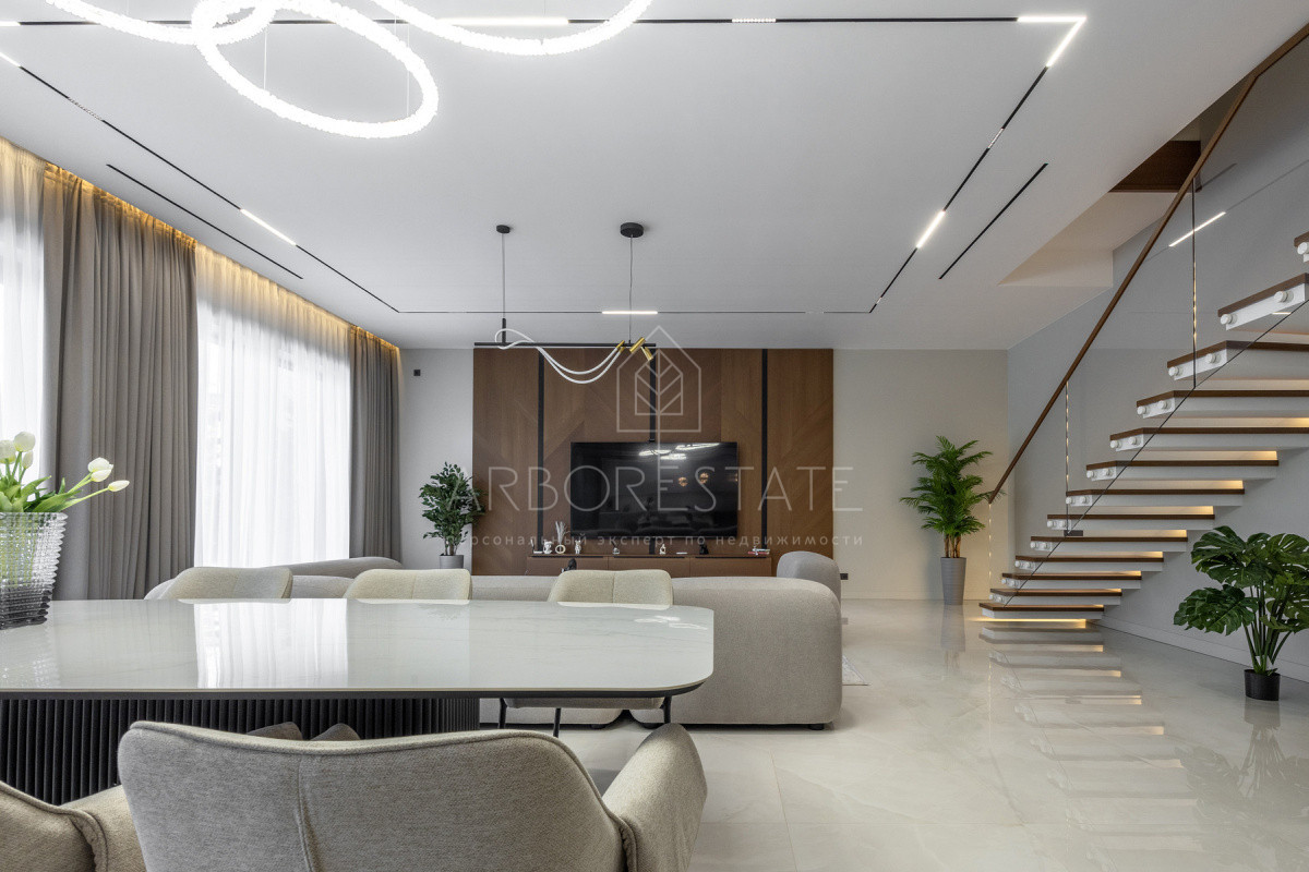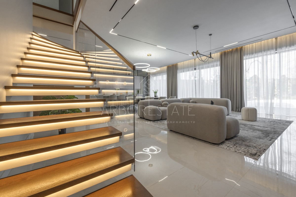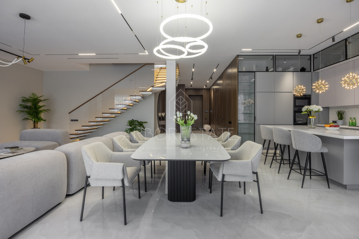 Двухэтажный особняк продается в состоянии "под ключ", с современным дизайнерским интерьером.
