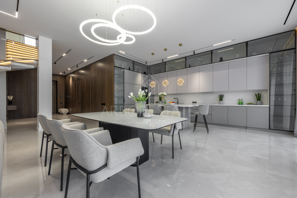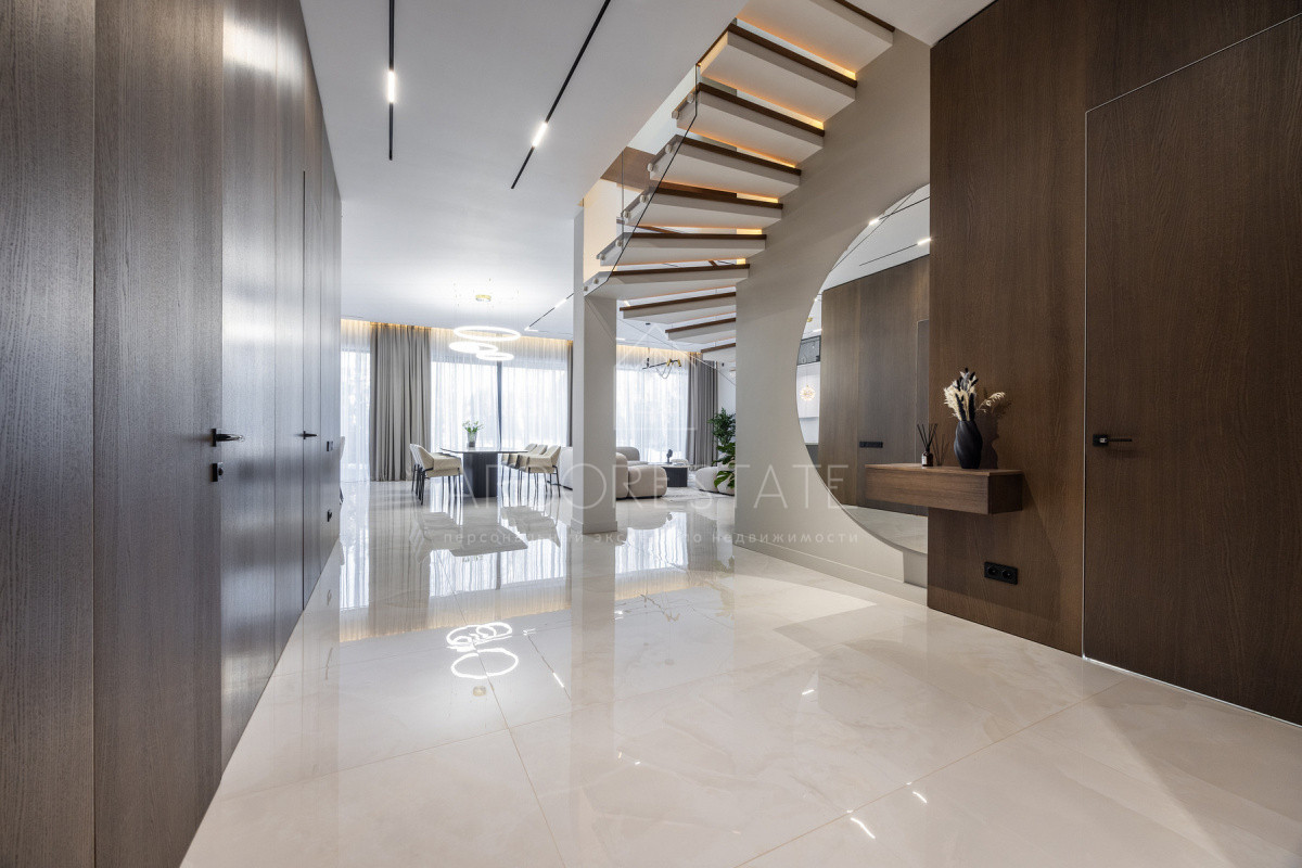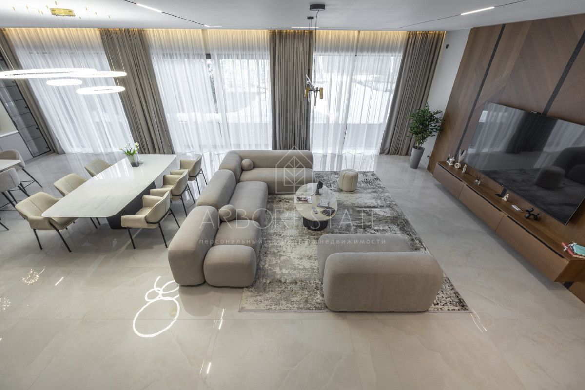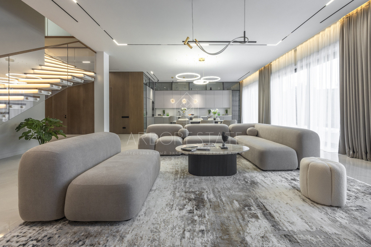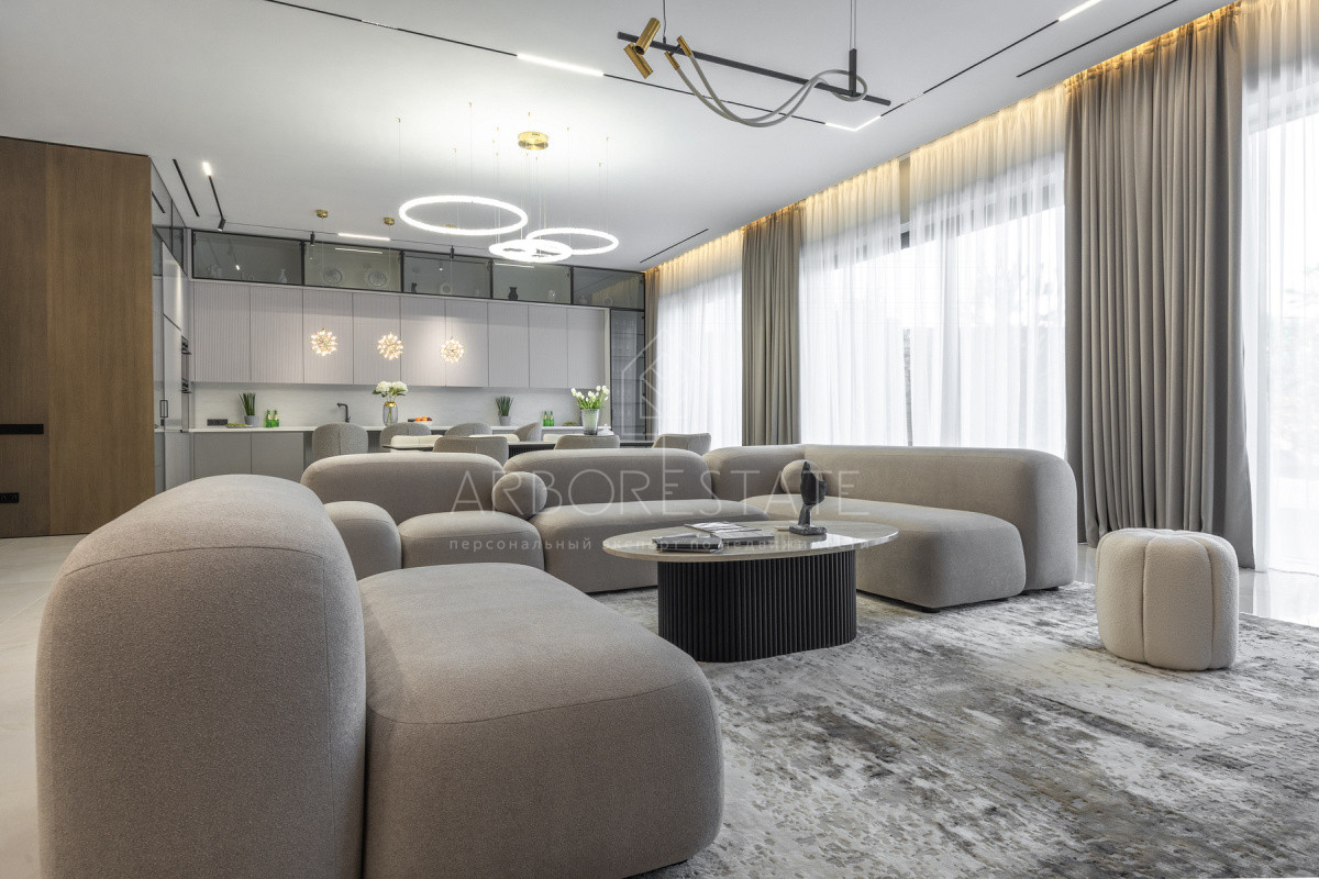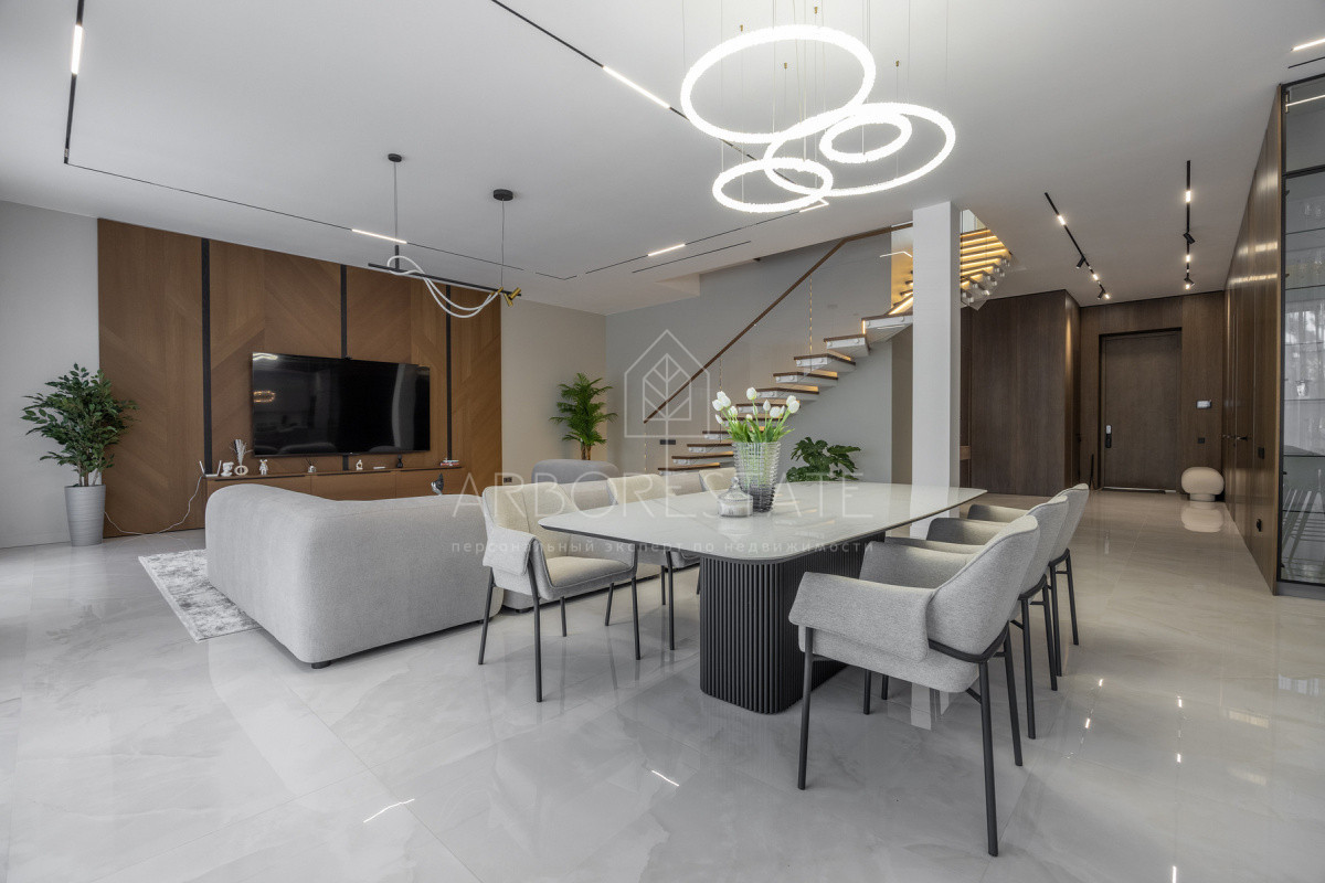 Двухэтажный особняк продается в состоянии "под ключ", с современным дизайнерским интерьером.