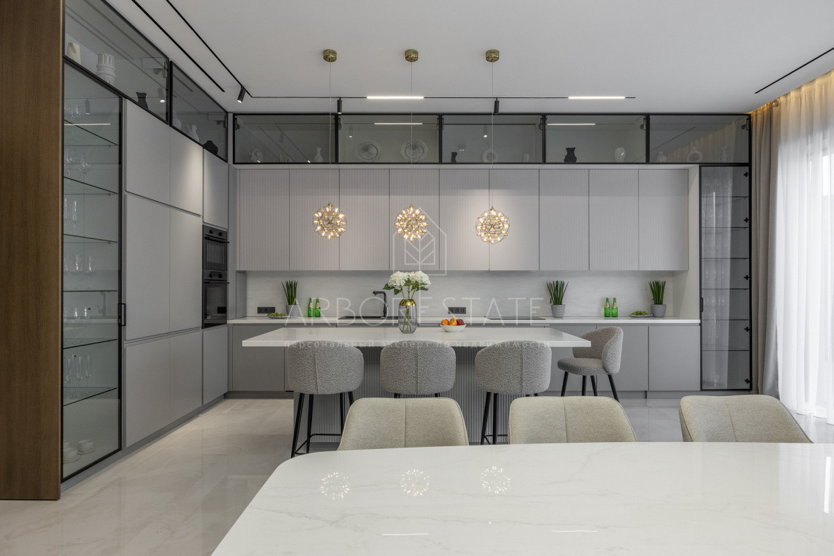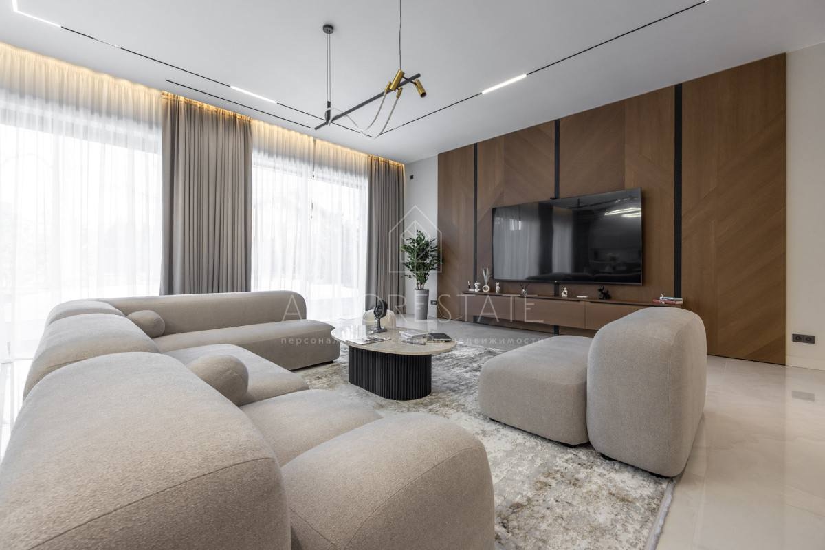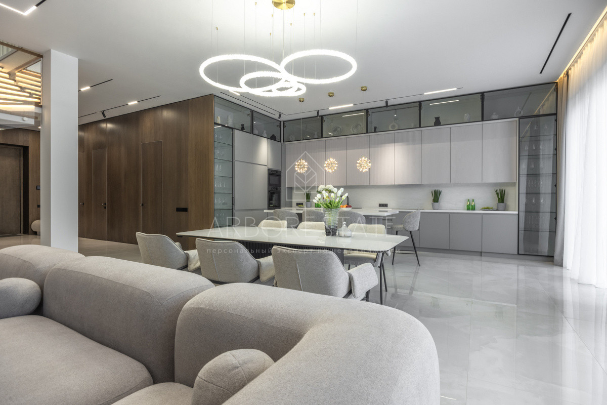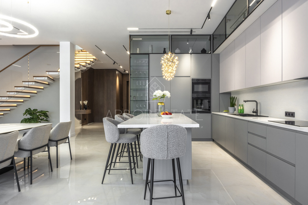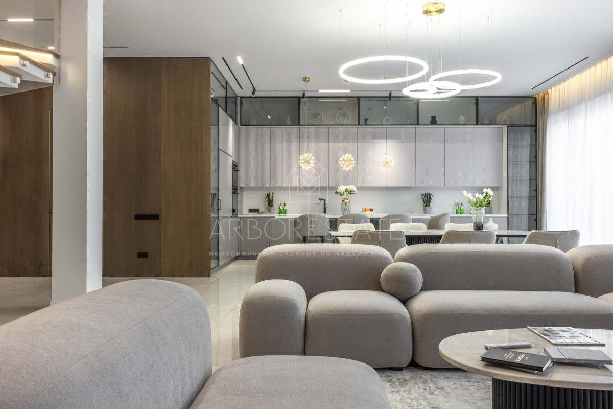 Двухэтажный особняк продается в состоянии "под ключ", с современным дизайнерским интерьером.