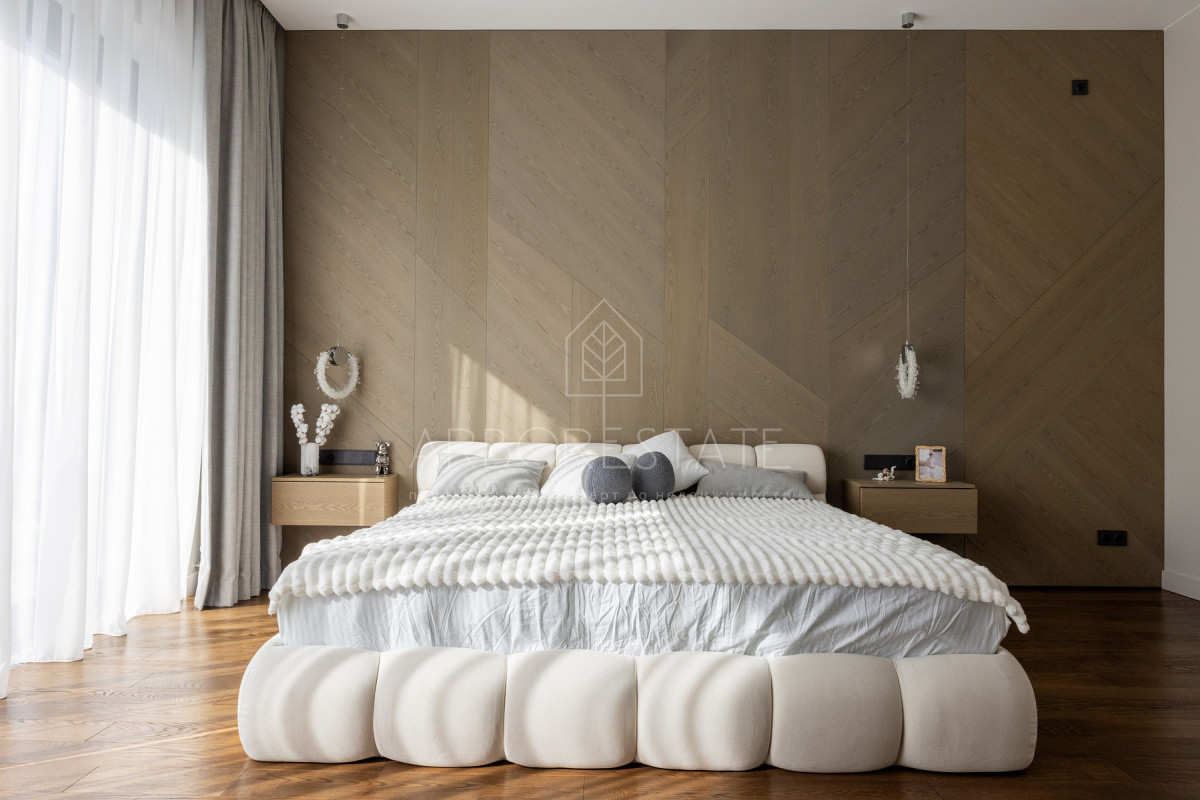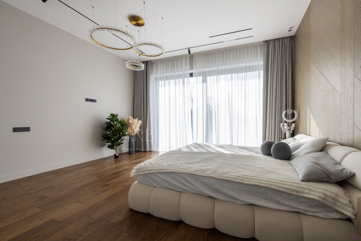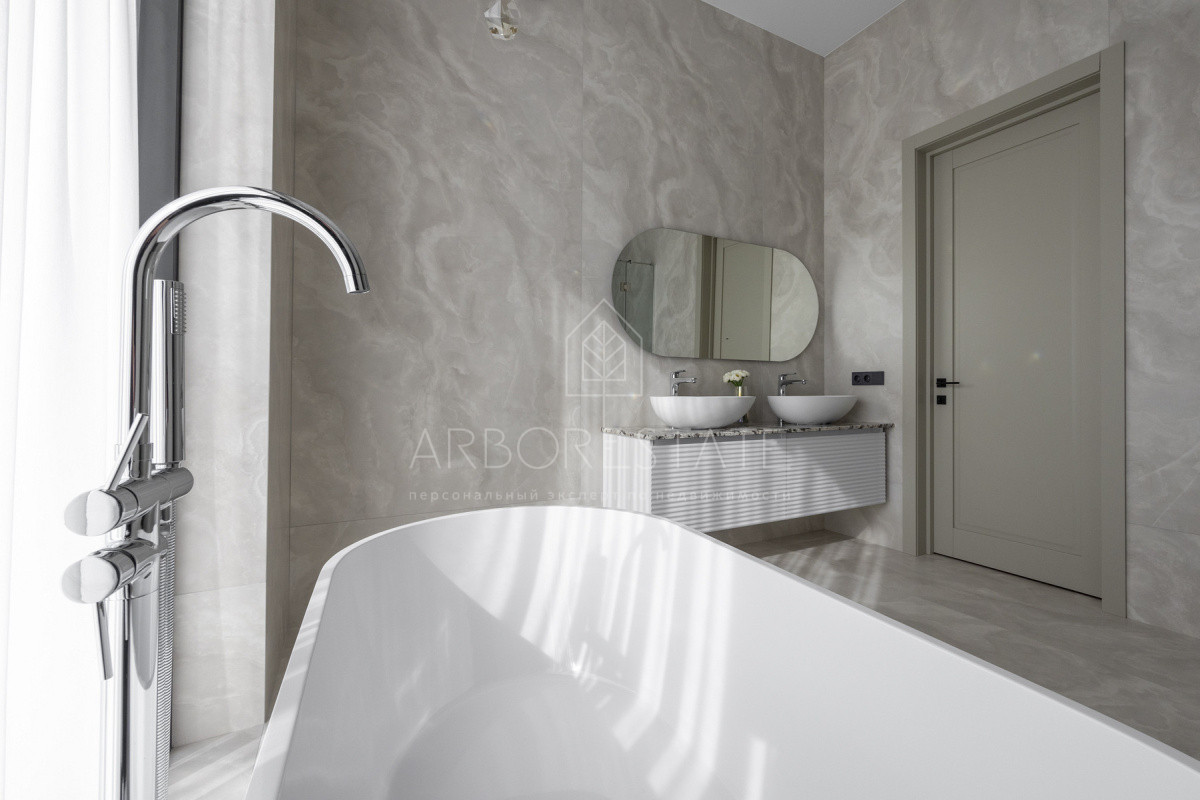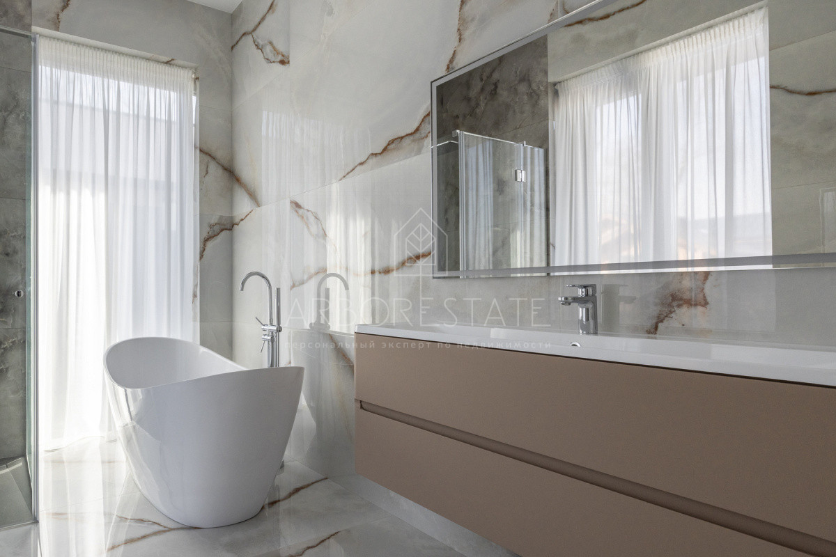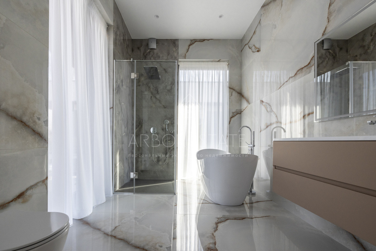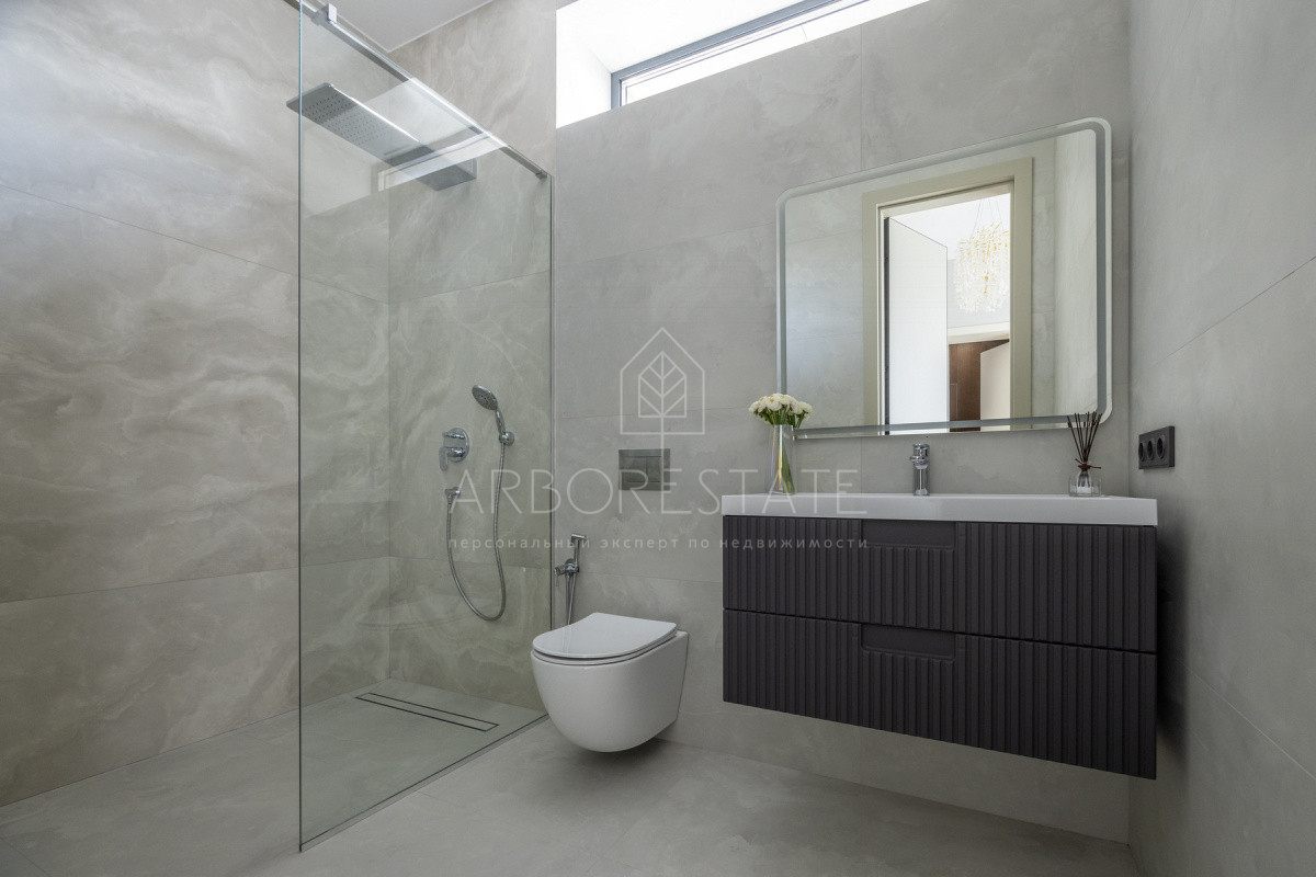 2 этаж: холл, мастер-спальня со своей просторной гардеробной и ванной комнатой, 3 детских спальни со своими санузлами и гардеробными.