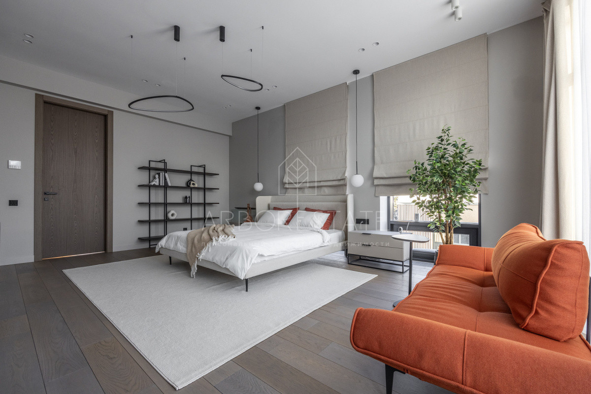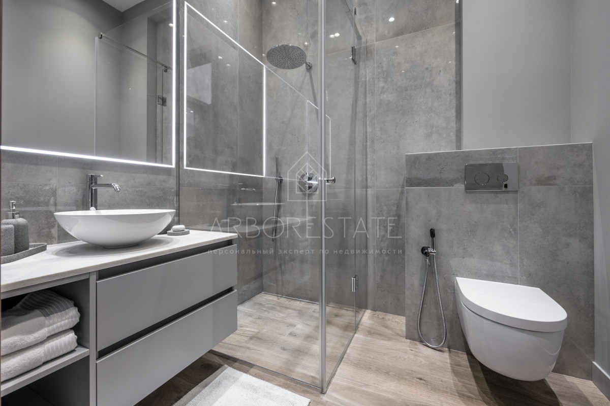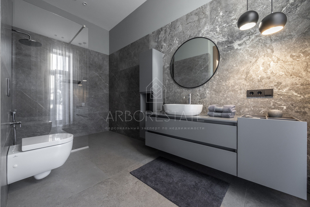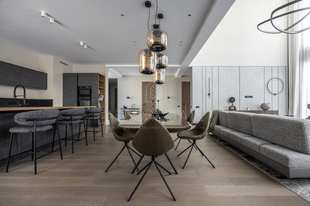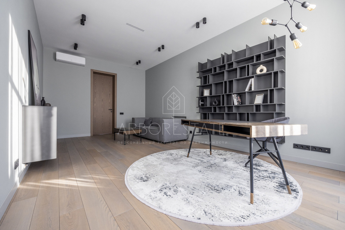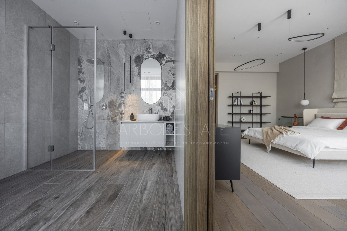 Дом меблирован. Построен в современном стиле со строгими и лаконичными фасадами. Эксплуатируемая кровля (275,74 кв.м.) позволяет создать зону для отдыха на свежем воздухе.