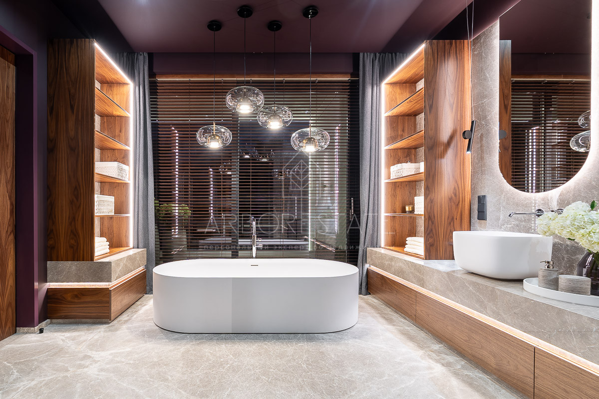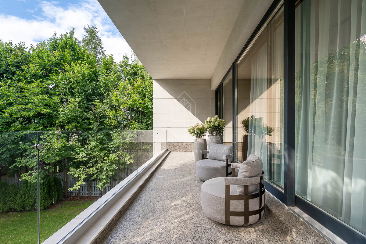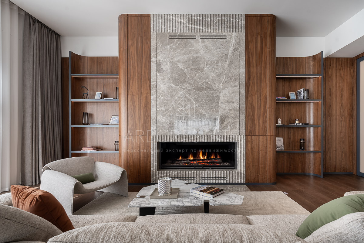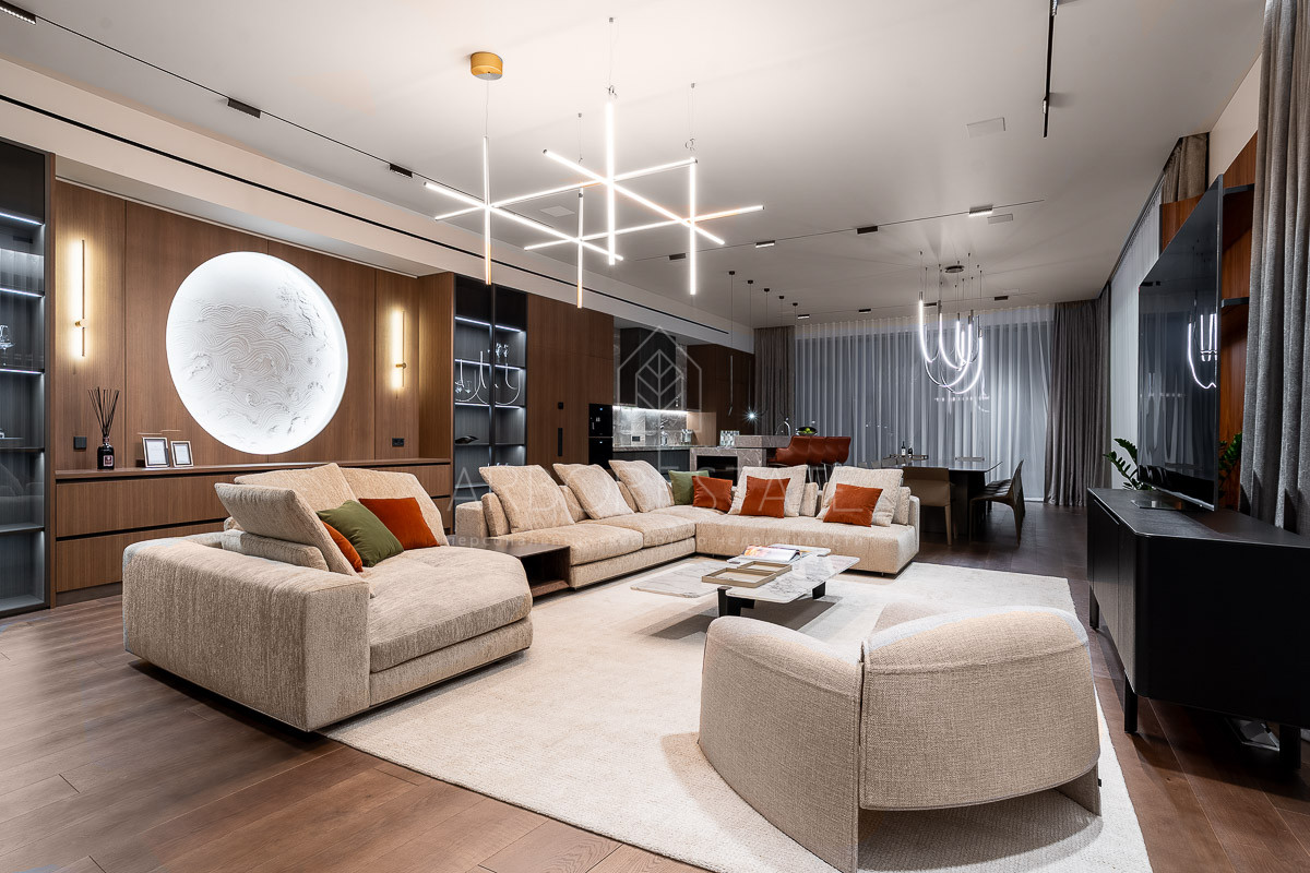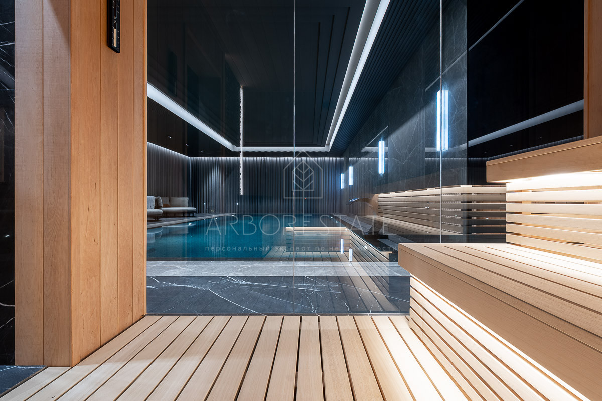 Коттедж имеет общую площадь 1256 м2 и располагается на приватном лесном участке. В доме: пять спален со своими гардеробными комнатами и санузлами, кухня, столовая и гостиная с камином, несколько открытых балконов и террас, квартира для персонала, гараж на три автомобиля, зона СПА с сауной, переливной бассейн, подсобные и обслуживающие помещения, включая рабочую кухню, постирочную. В отделке использовались высоко качественные натуральные материалы, мрамор, дерево, мебель известных Итальянских брендов: Minotti, Paltrona Frau, Poliform, Porada. Бытовая кухонная техника Miele, стиральное и сушильное оборудование Asco.