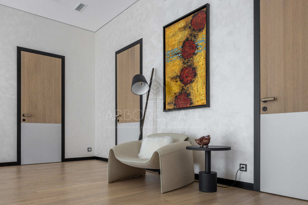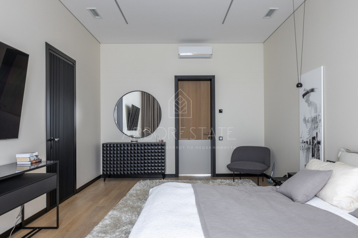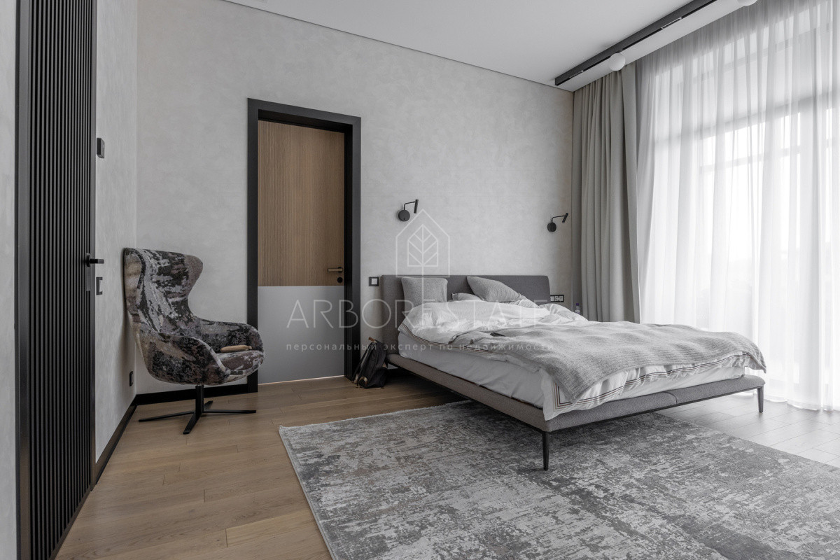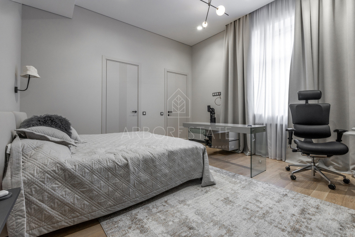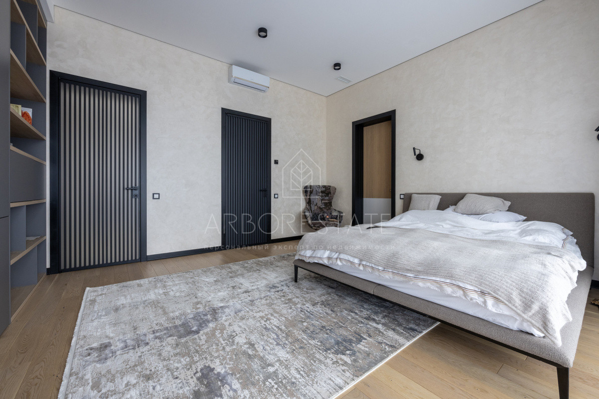 На втором этаже находятся четыре спальни, каждая из которых оснащена собственной ванной комнатой и гардеробной, что обеспечивает максимальный комфорт для всех членов семьи.