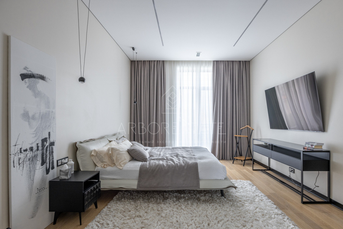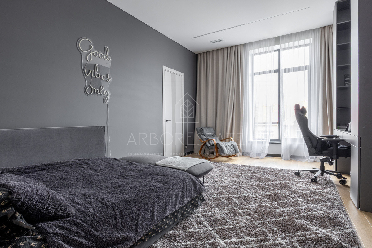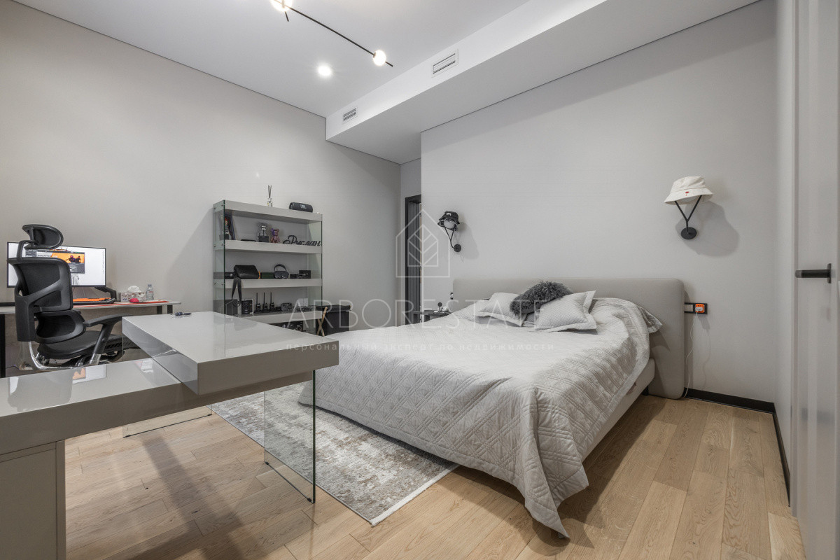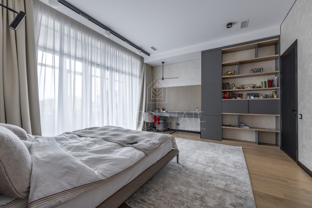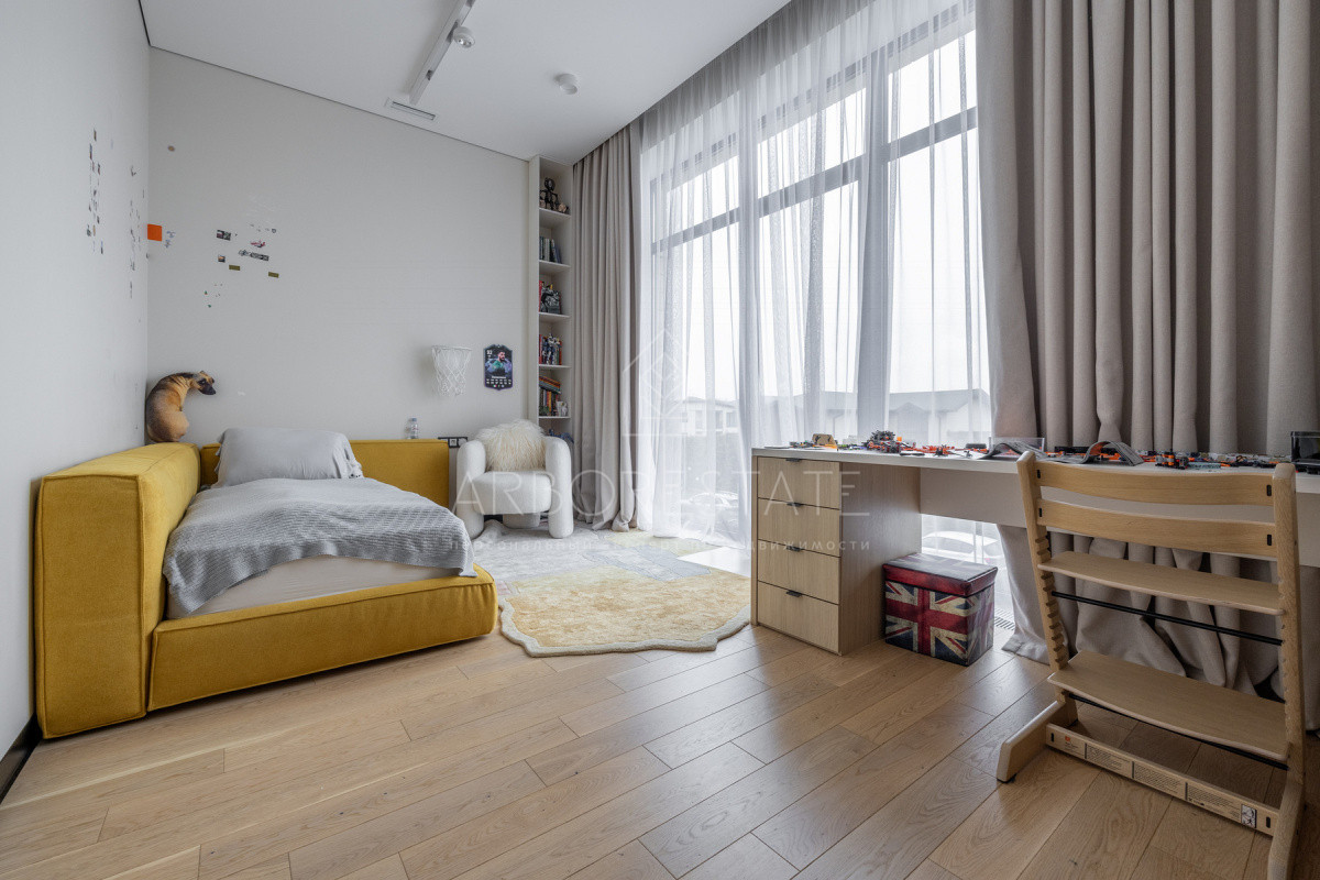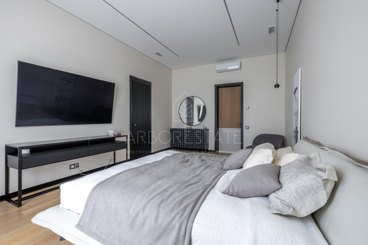 На втором этаже находятся четыре спальни, каждая из которых оснащена собственной ванной комнатой и гардеробной, что обеспечивает максимальный комфорт для всех членов семьи.