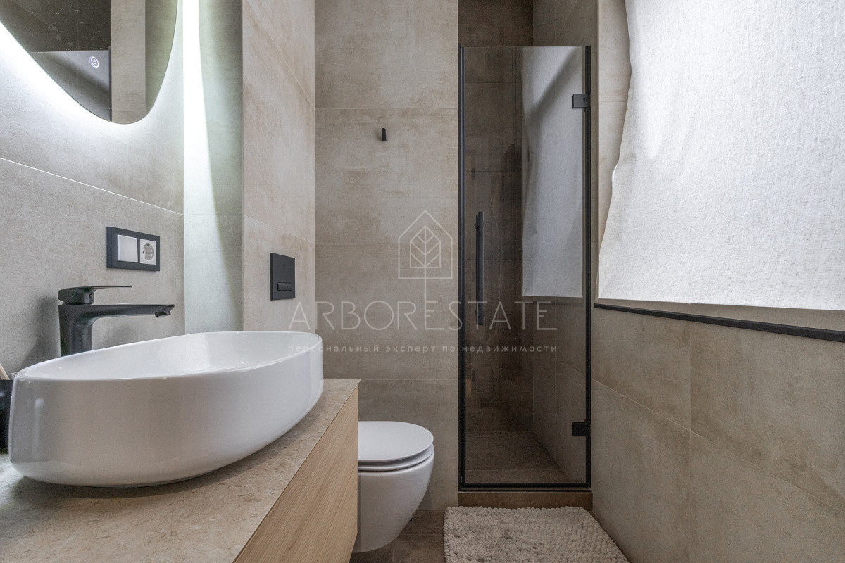 Дом оснащен современными инженерными системами: выделенная мощность электричества 30 кВт, система бесперебойного питания, приточно-вытяжная вентиляция, предусмотрена зарядка для электромобиля. На участке выполнена дренажная система.