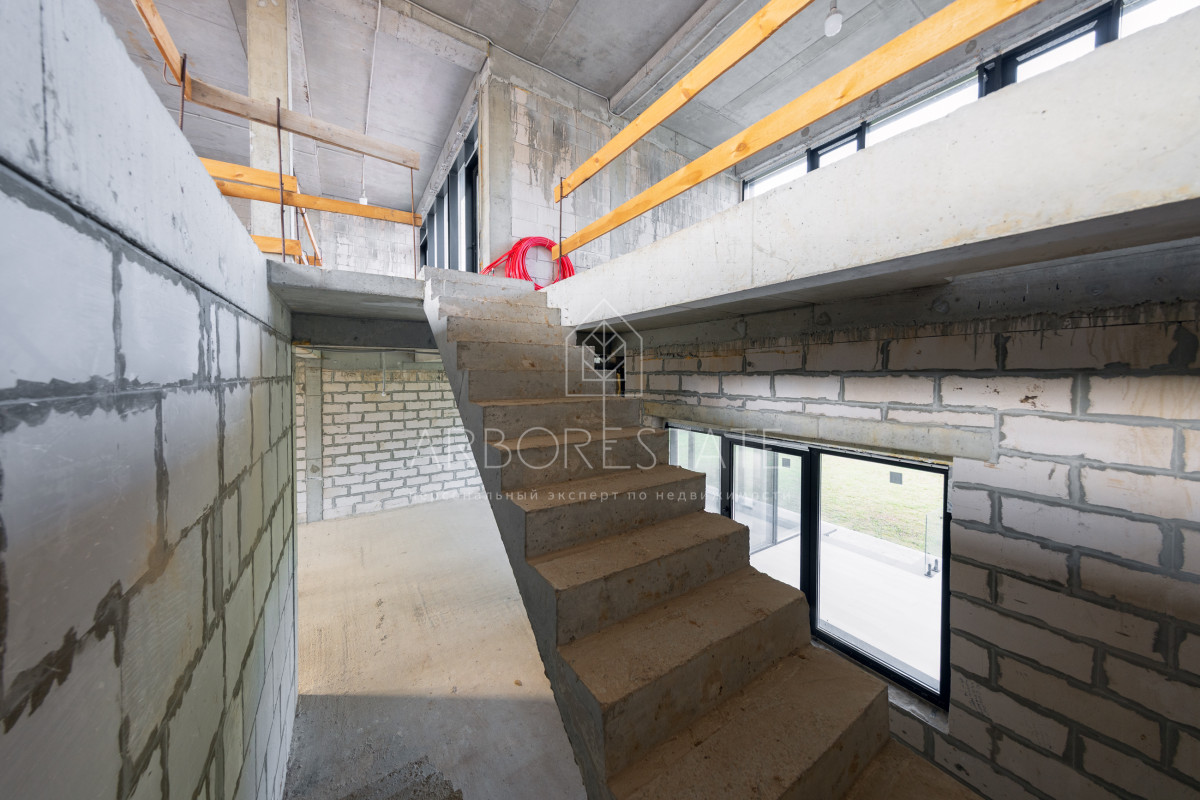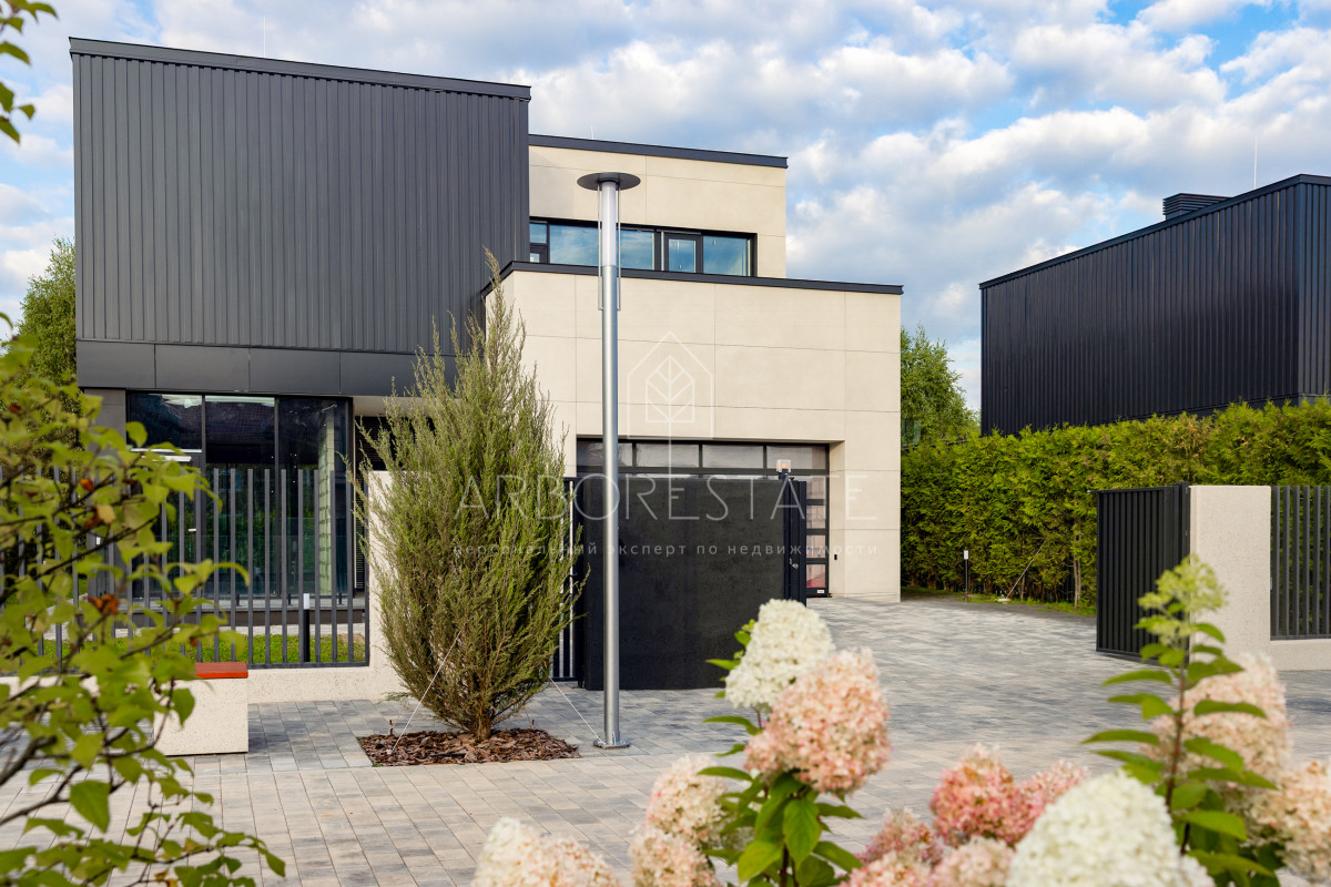 Новый современный лом в клубном поселке Папушево Парк. Дом удачно расположен в застроенной и тихой части поселка, примыкает к лесному массиву. Проект создан с акцентом на максимальный комфорт: просторные помещения, панорамные окна, выходы на террасу и высокие потолки. Дом предлагается без отеки, так что у будущих покупателей есть возможность сделать всё по своему вкусу.