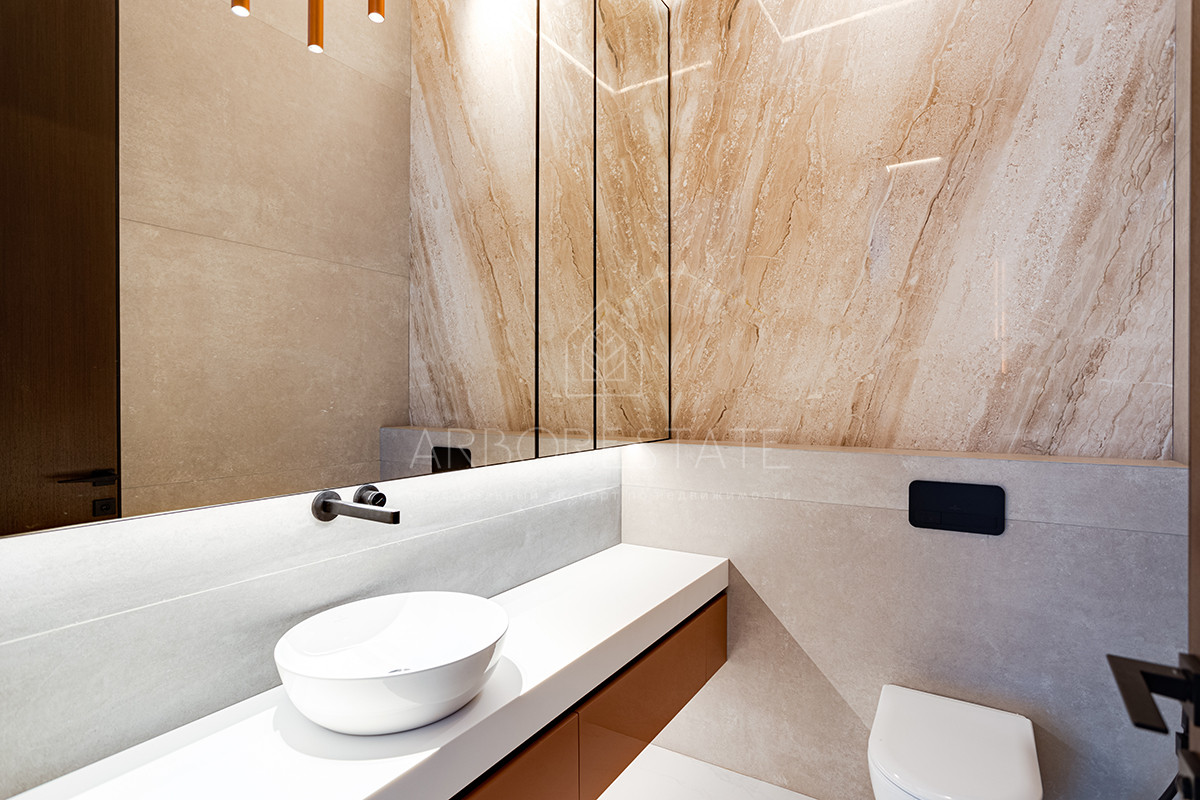 2-й этаж: холл, мастер-спальня с просторными гардеробной, ванной комнатой и выходом на балкон, 3 спальни с гардеробными и с/у, спальня с гардеробной и ванной комнатой.