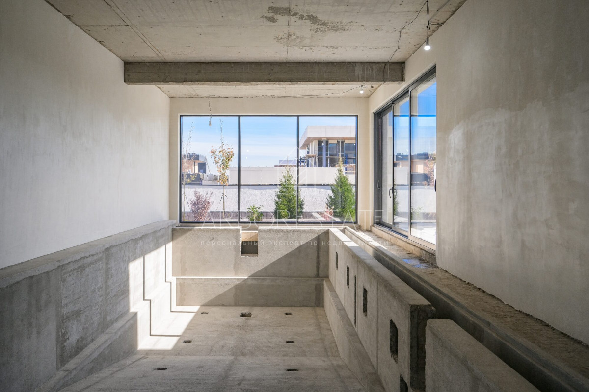 Функциональная планировка: 4 спальни с с/у, 2 гостиные, кабинет, спа-комплекс с бассейном, тренажерный зал, блок для персонала с отдельным входом с улицы, гараж на 2 м/м и навес на 4 м/м.