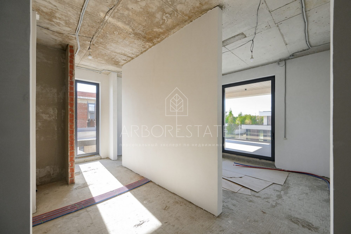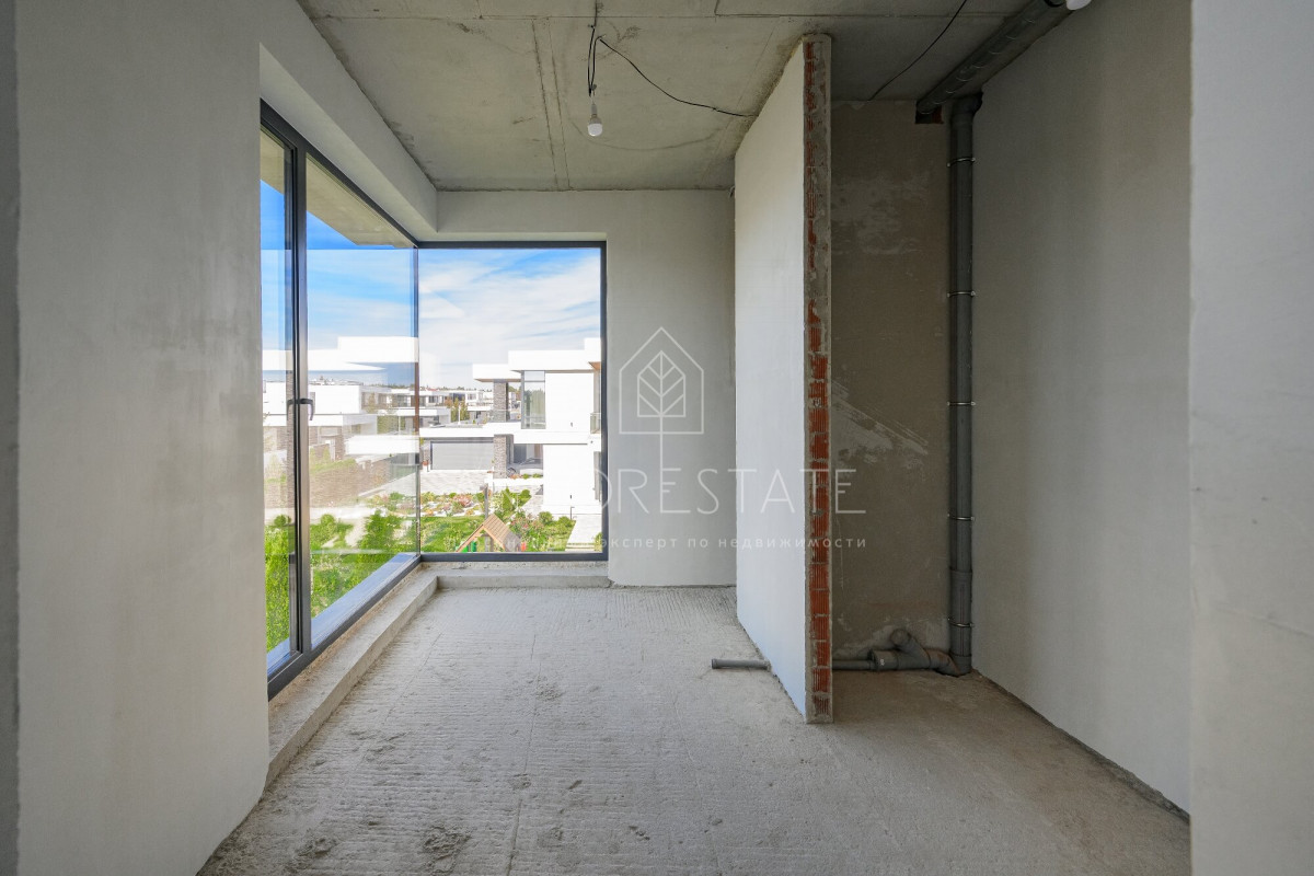 Просторный современный коттедж 940 кв.м “под отделку” на благоустроенном участке 16 соток в дальней части жилого коттеджного поселка Райт Хиллс, 17 км от МКАД по Новорижскому шоссе.