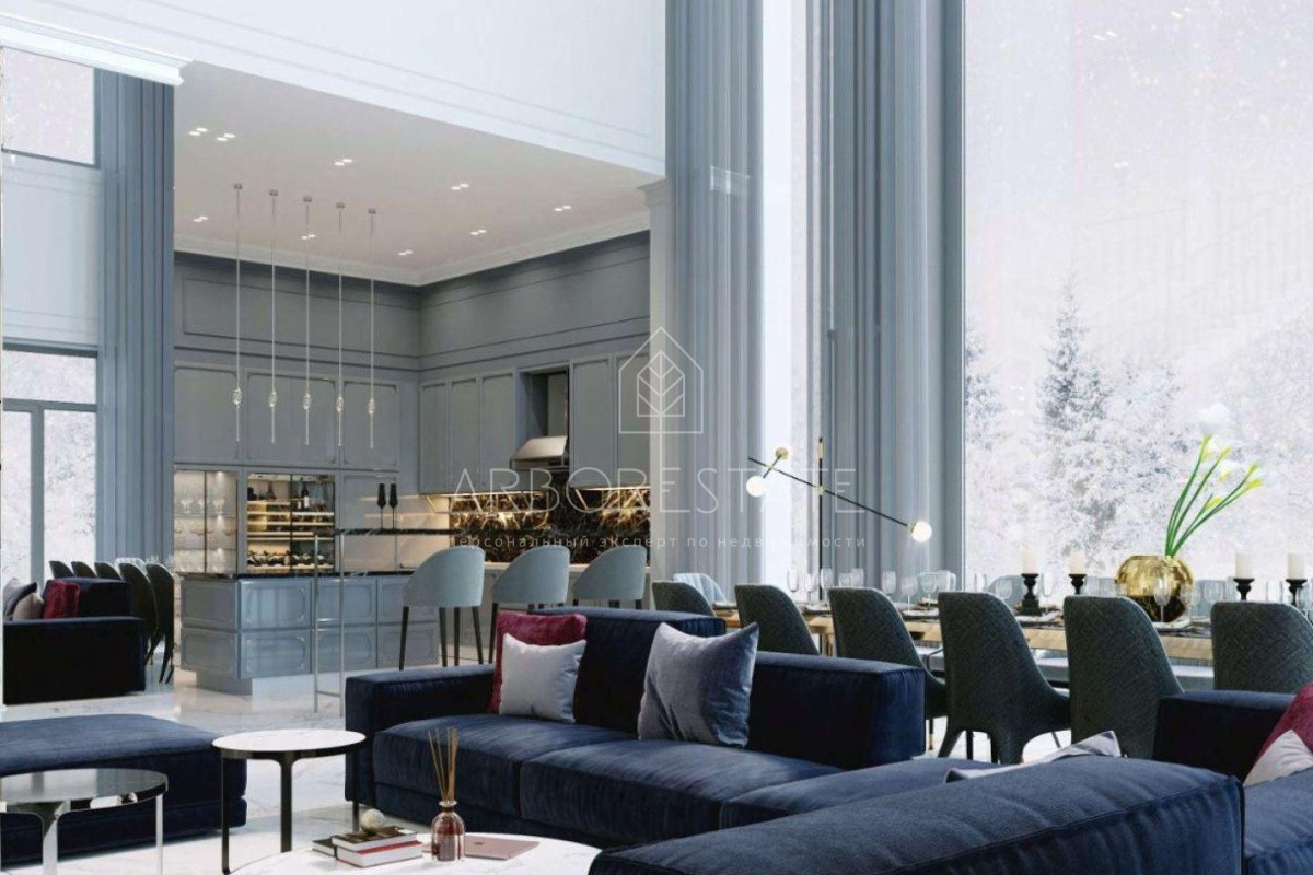 Дом площадью 1100 м² с 5 спальнями расположен на видовом участке 23 сотки в коттеджном посёлке Ренессанс парк.
