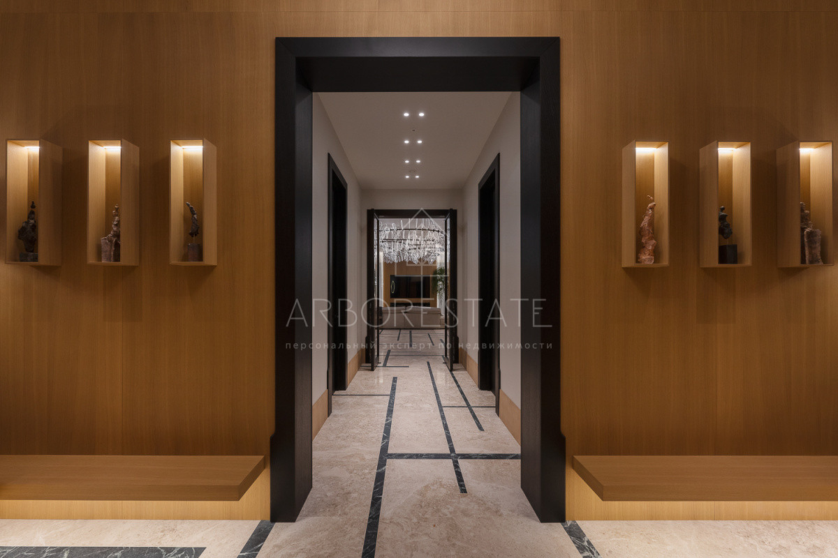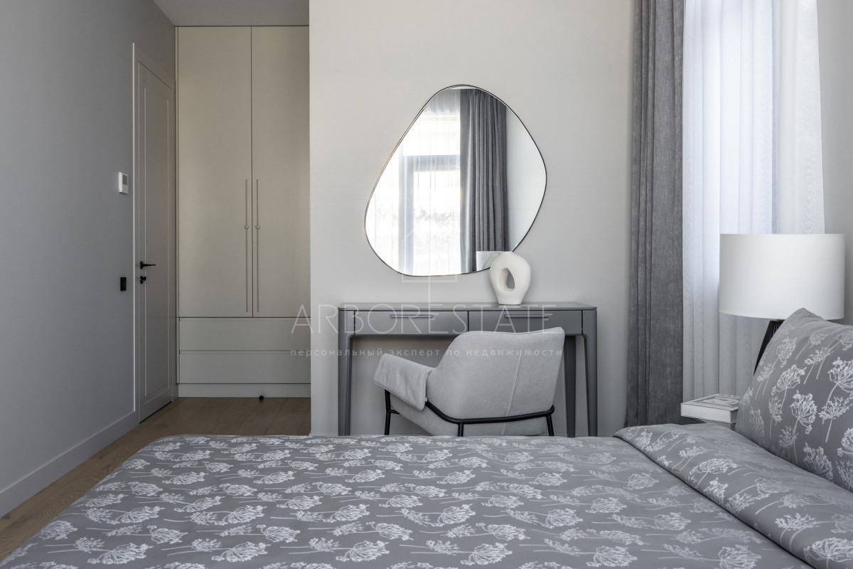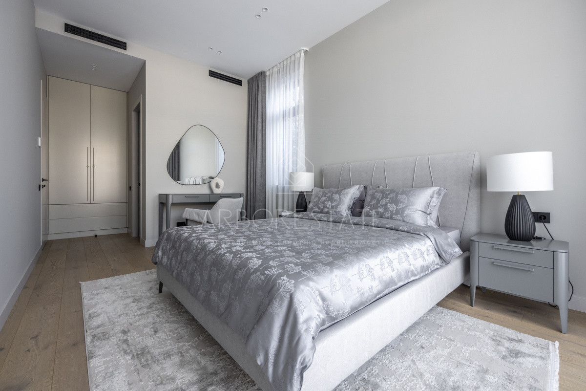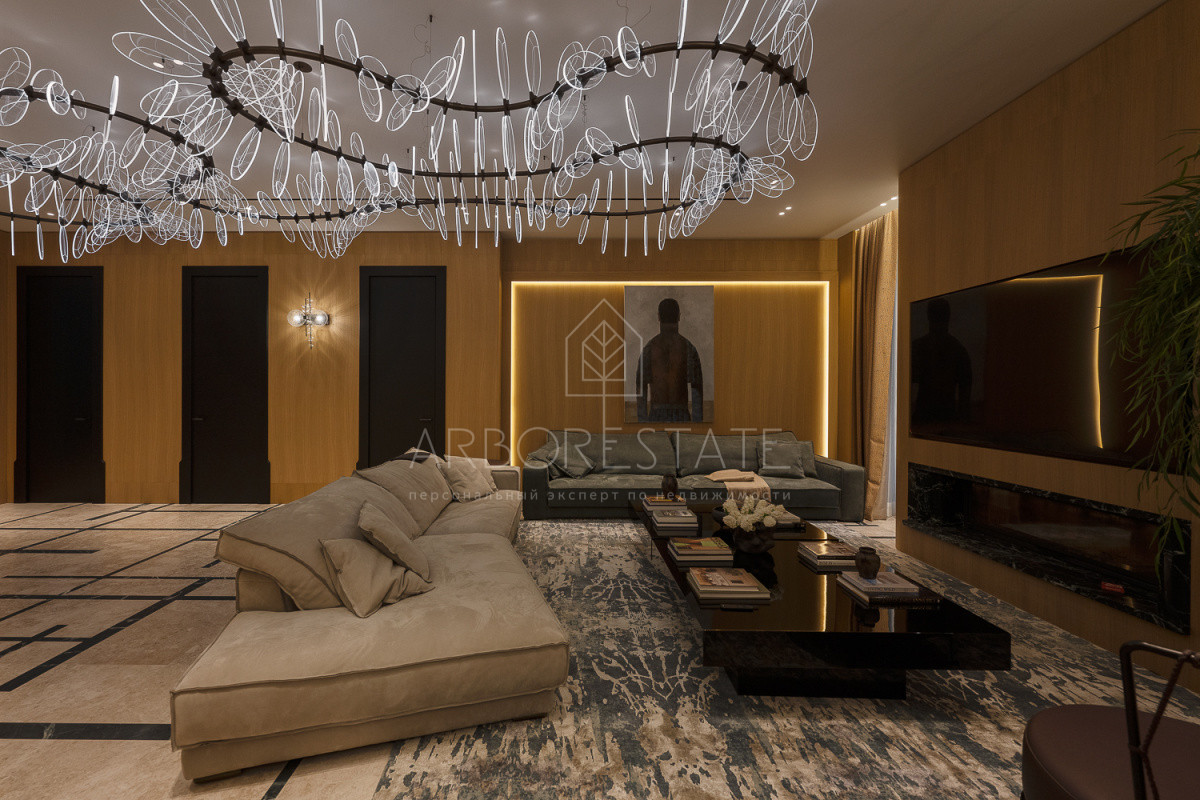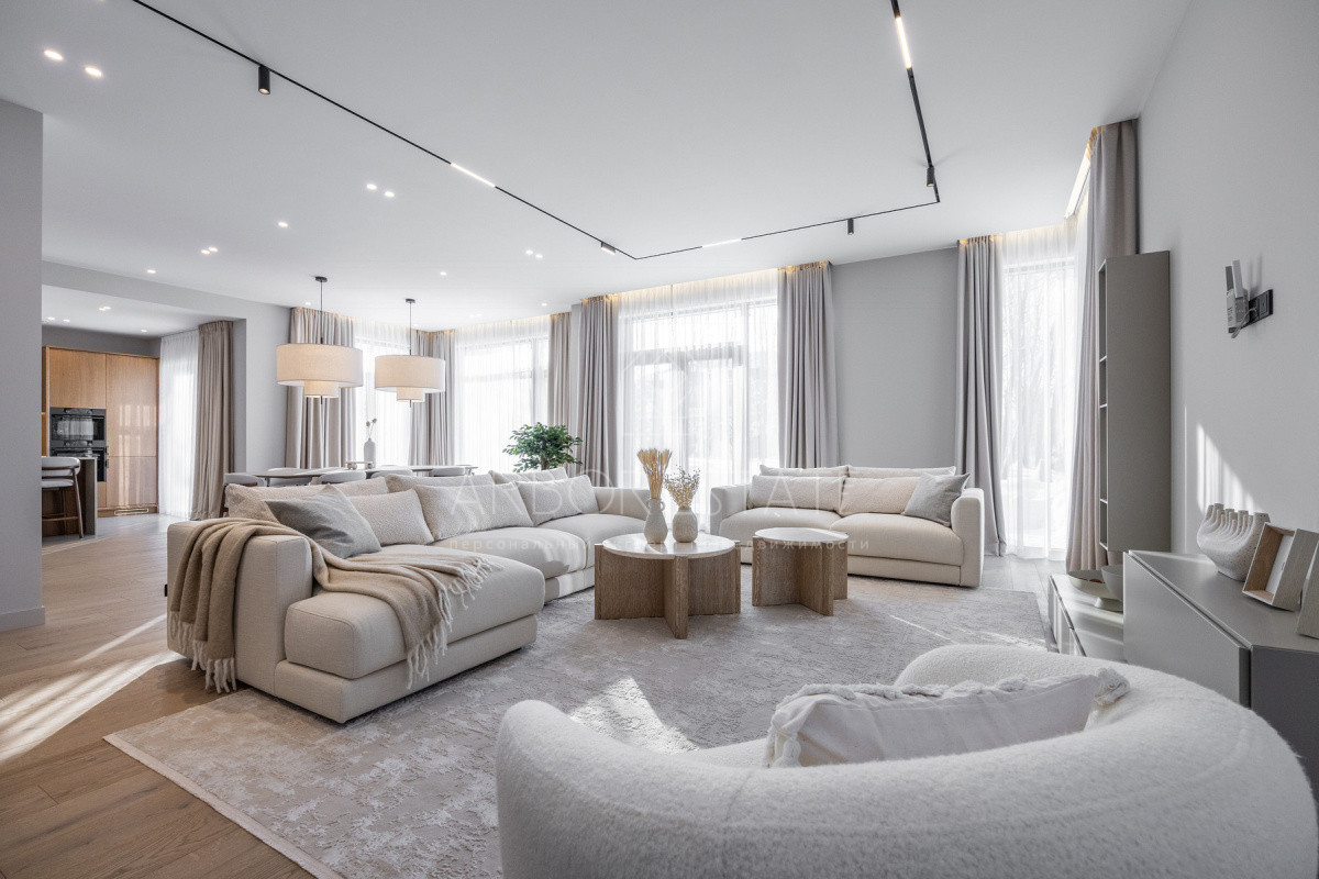 Внутреннее пространство организовано максимально функционально: большая гостиная с камином плавно перетекает в кухню и столовую, создавая единое пространство для общения и семейных ужинов. В доме — 6 уютных спален, 7 санузлов, удобные технические помещения и просторный гараж на 2 автомобиля.