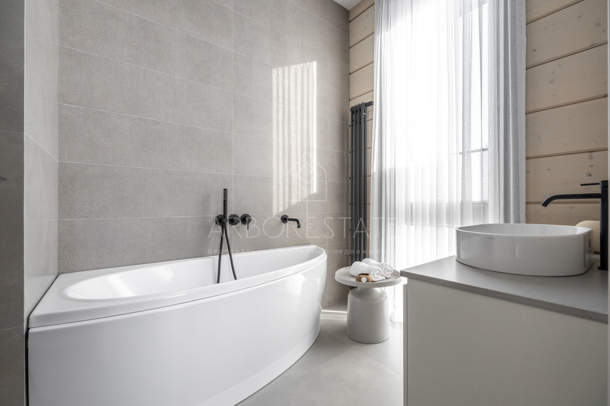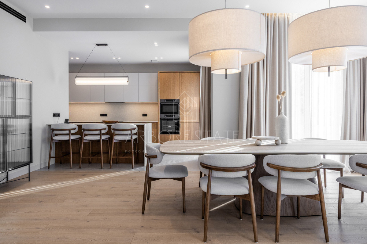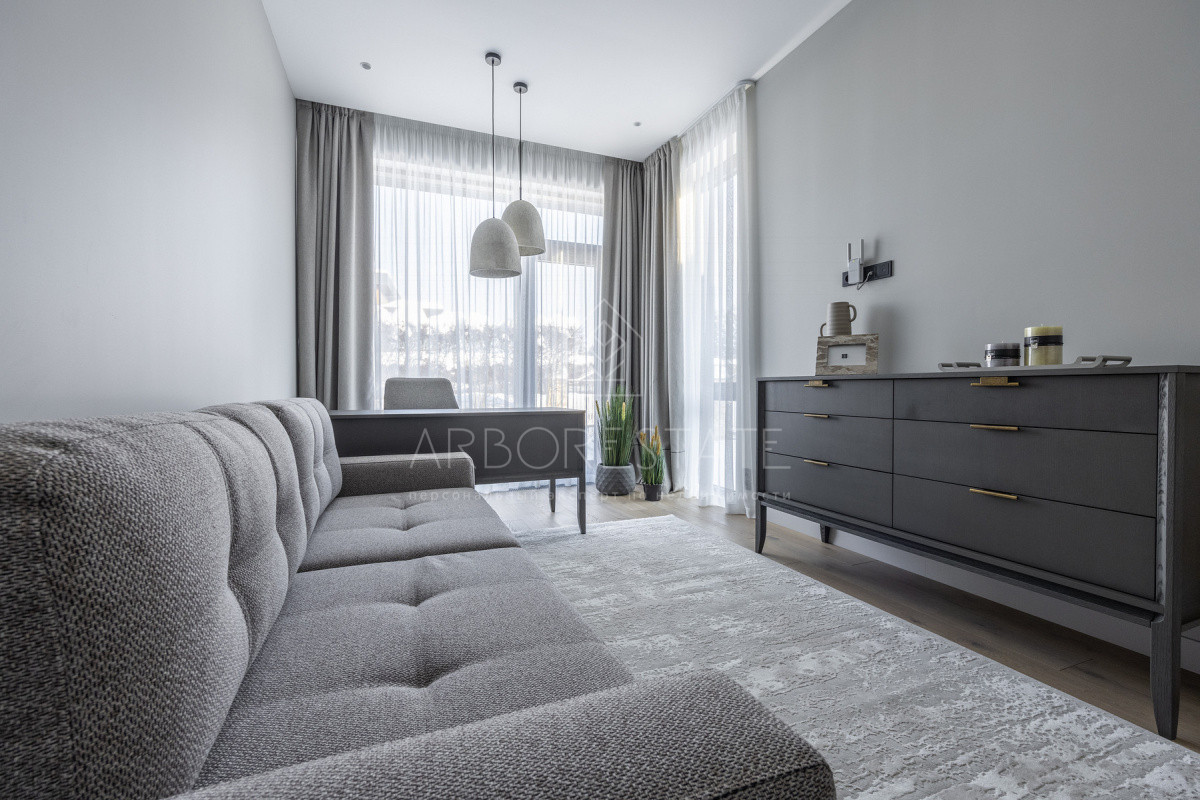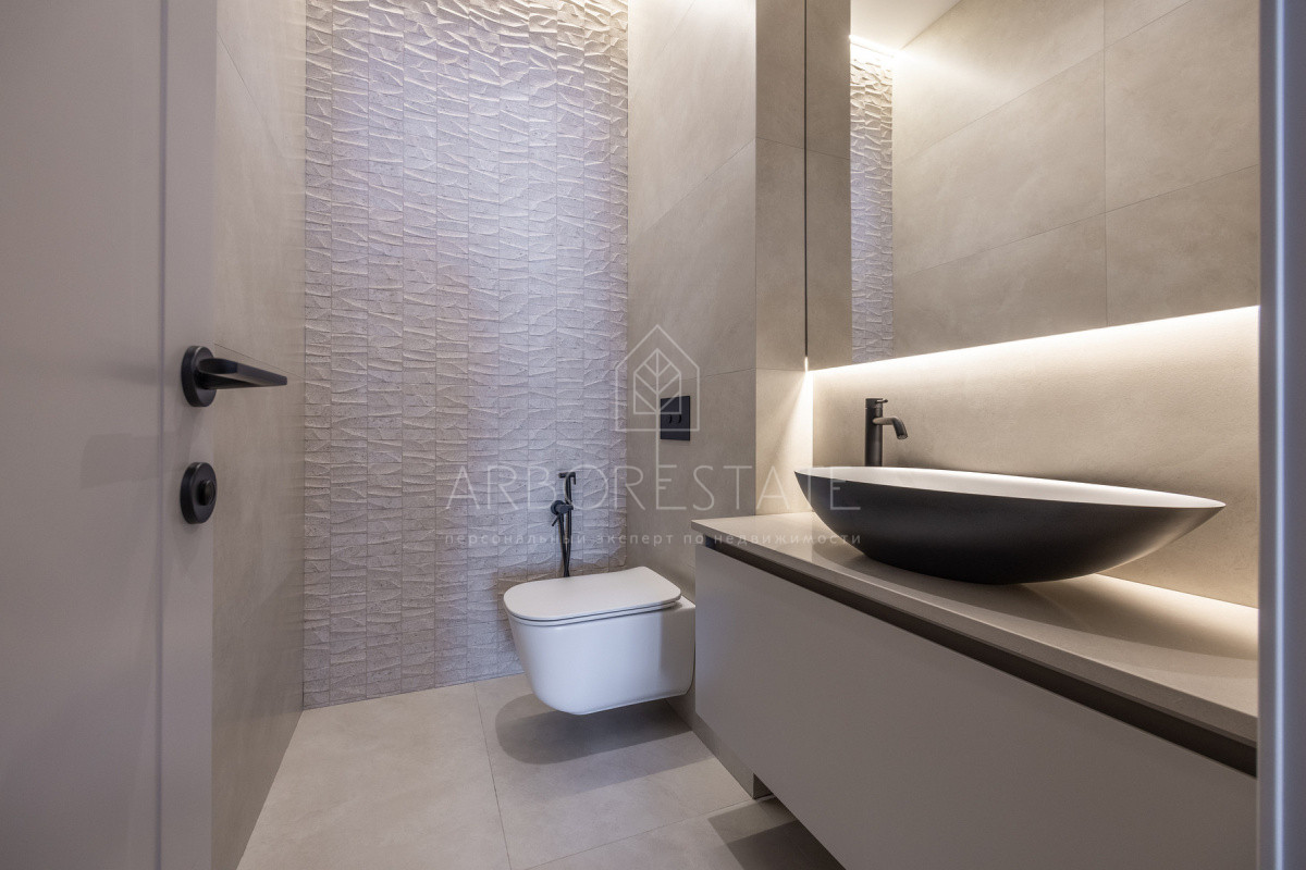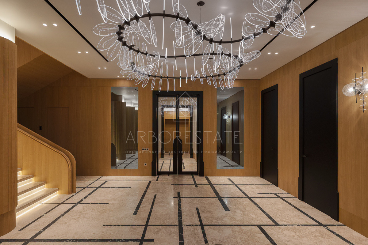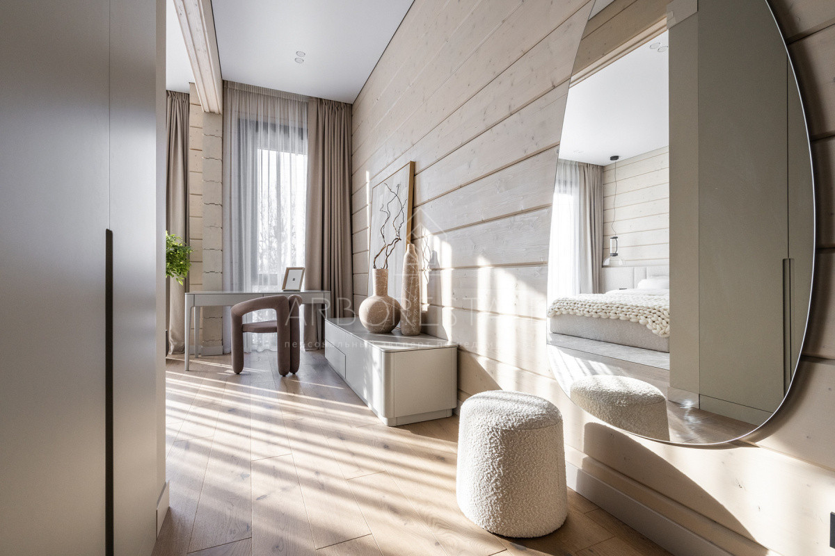 Внутреннее пространство организовано максимально функционально: большая гостиная с камином плавно перетекает в кухню и столовую, создавая единое пространство для общения и семейных ужинов. В доме — 6 уютных спален, 7 санузлов, удобные технические помещения и просторный гараж на 2 автомобиля.