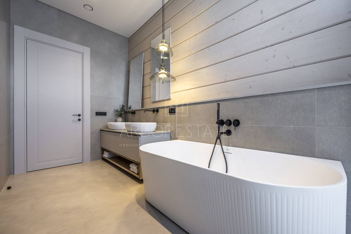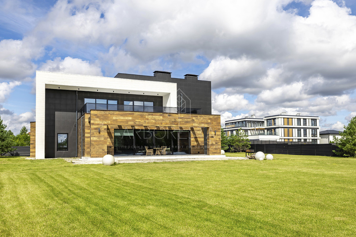 Новый дом в современном стиле в одном из лучших коттеджных посёлков Подмосковья — Ренессанс Парк. Просторный, светлый, с продуманной до мелочей планировкой, этот дом площадью 515 кв.м станет идеальным местом для жизни. Архитектура сочетает надежность кирпичного основания первого этажа и уютную эстетику деревянного второго уровня.