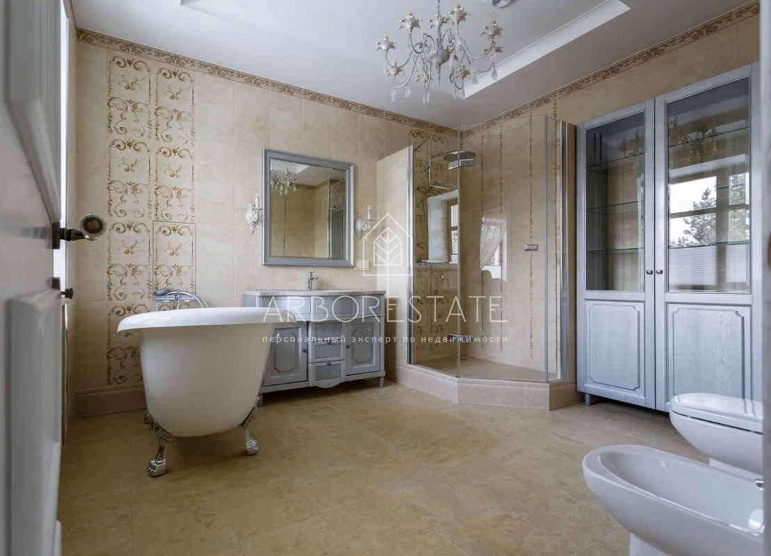 2 этаж: мастер-спальня с гардеробной и ванной комнатой, две детских спальни, каждая с санузлом, зимний сад.