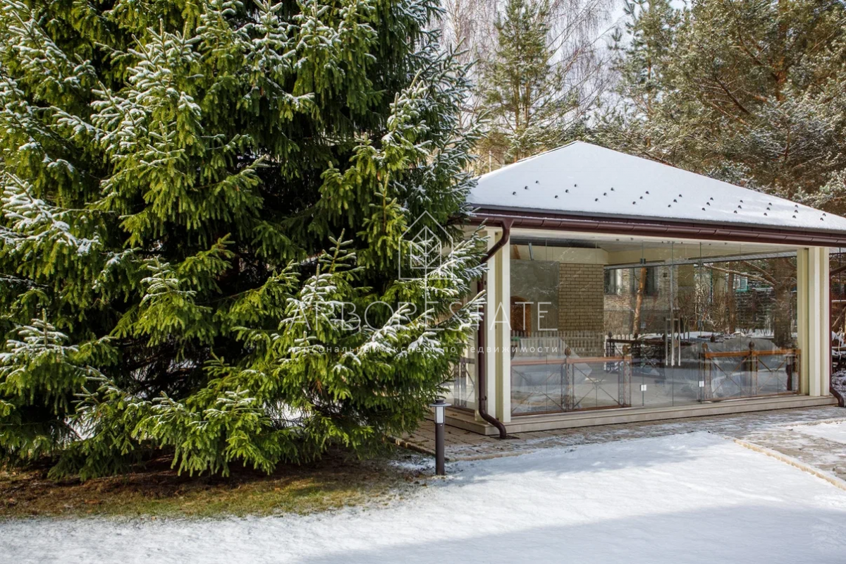 На участке площадью 28 соток проведено ландшафтное проектирование, высажено несколько крупномеров хвойных пород, сделаны дорожки, освещение. В приватной части участка находится застекленная беседка.