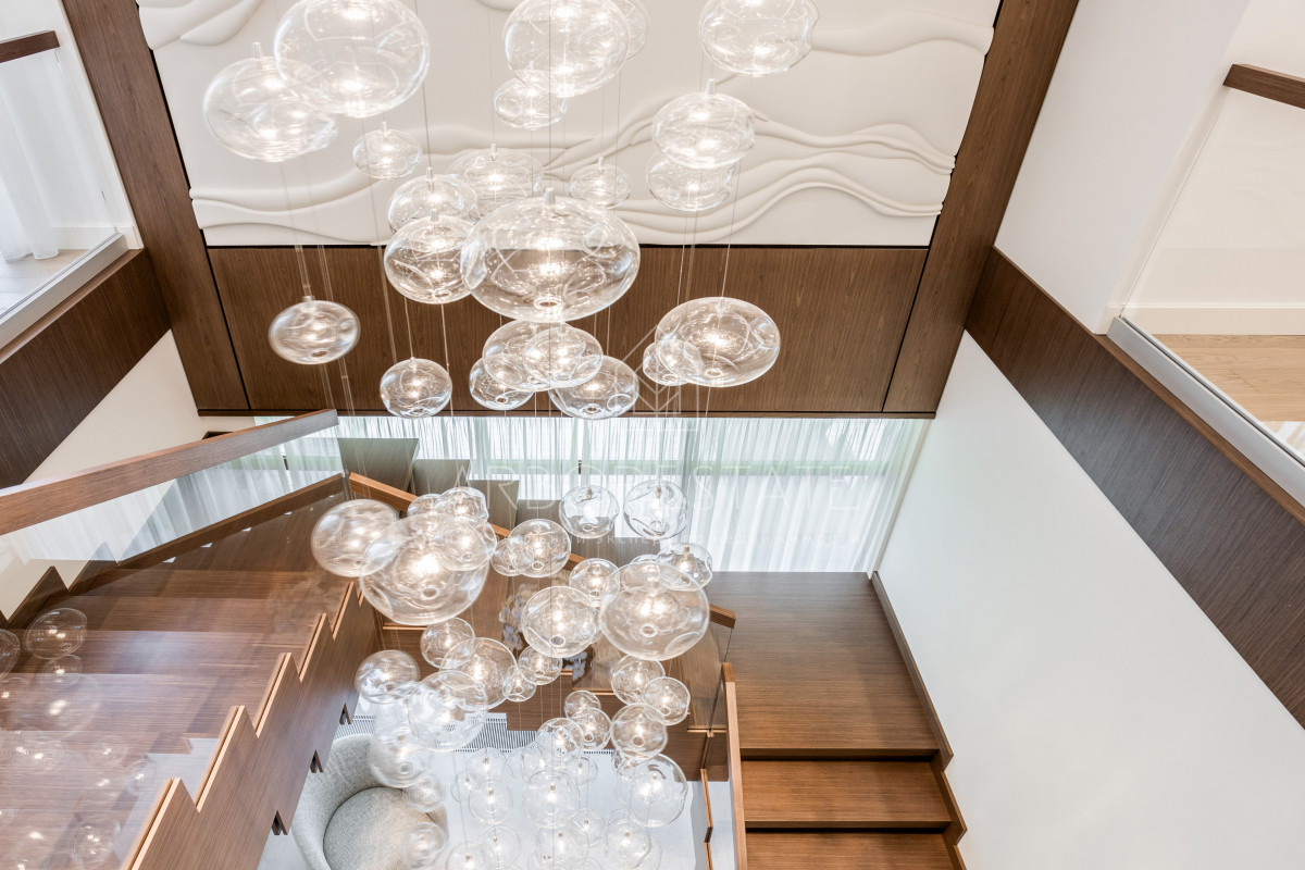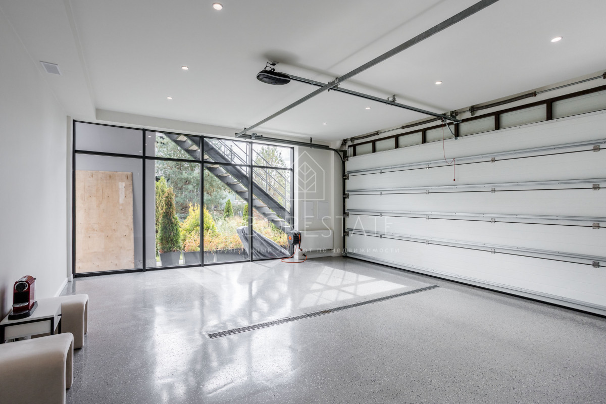 1 этаж: прихожая, холл, гардеробная - 2 шт., столовая с выходом на террасу, кухня, гостиная с парящим камином, санузел, кабинет, постирочная, котельная, гараж на 2 машины;