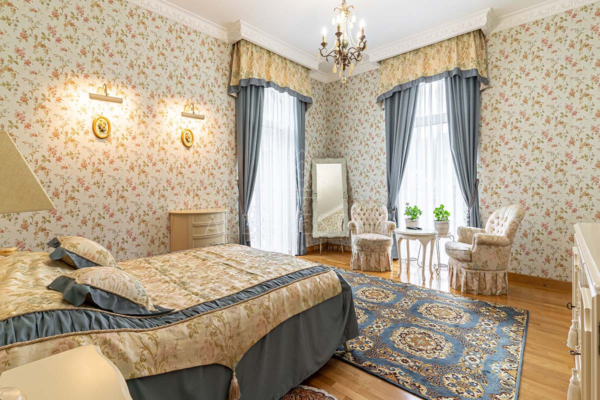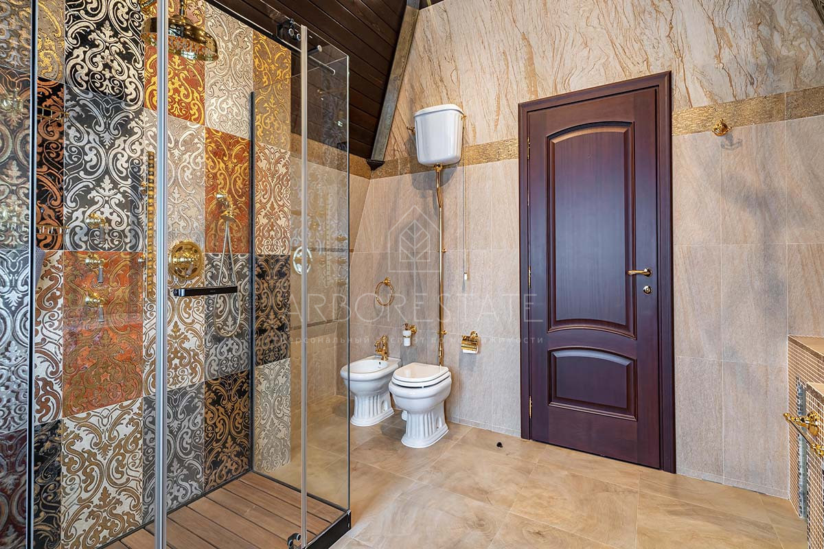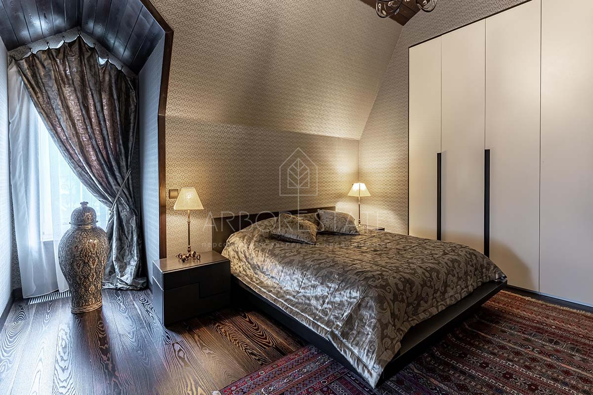 На втором этаже: мастер-спальня с гардеробом и санузлом, спальня со своим санузлом и гардеробом, кабинет, который может служить дополнительной спальней, комната для няни, постирочная.