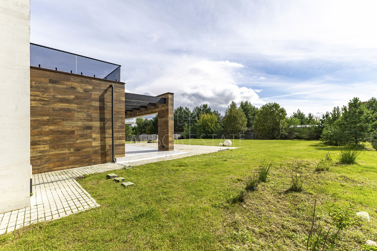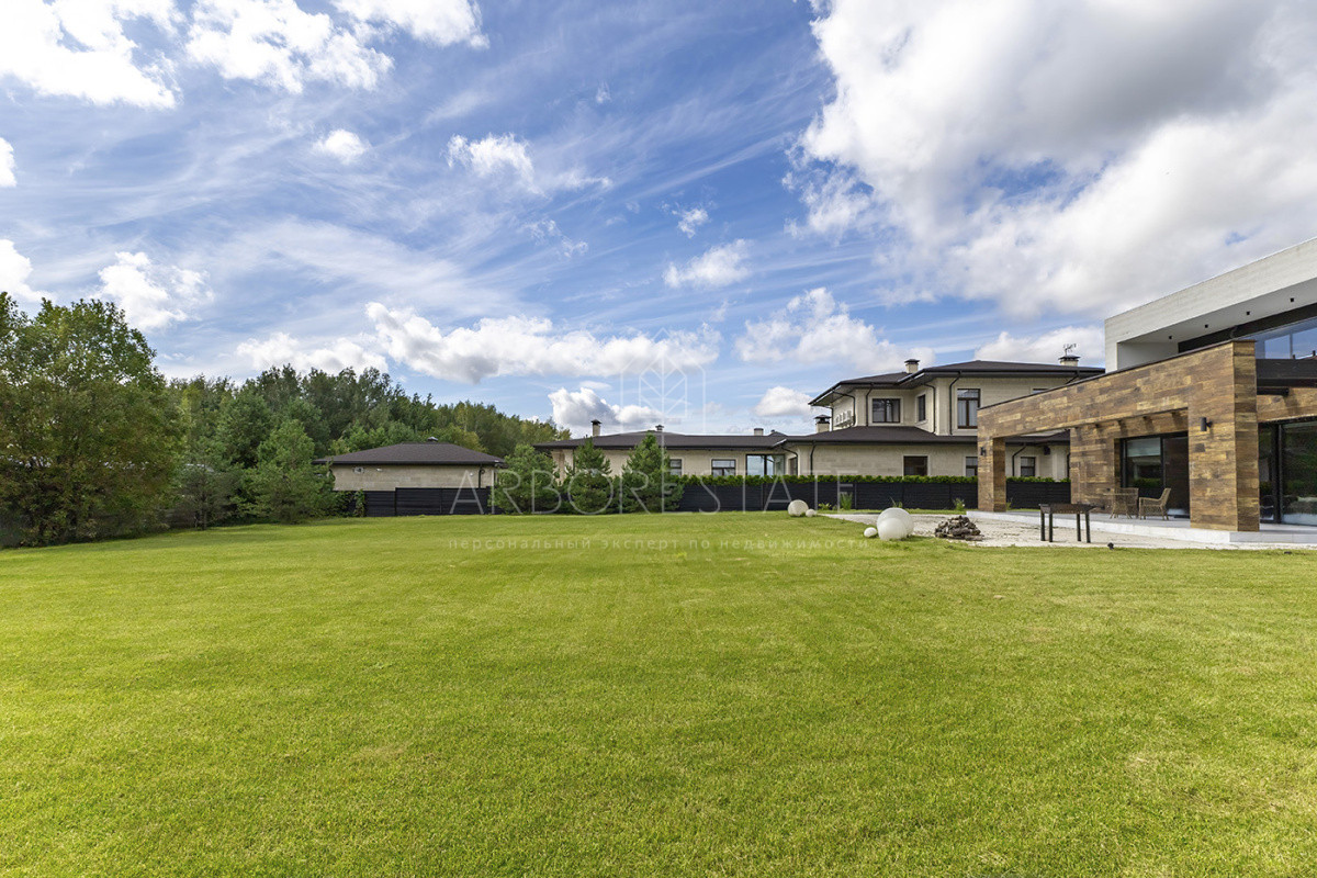 Новый дом в современном архитектурном стиле, на большом ровном участке.