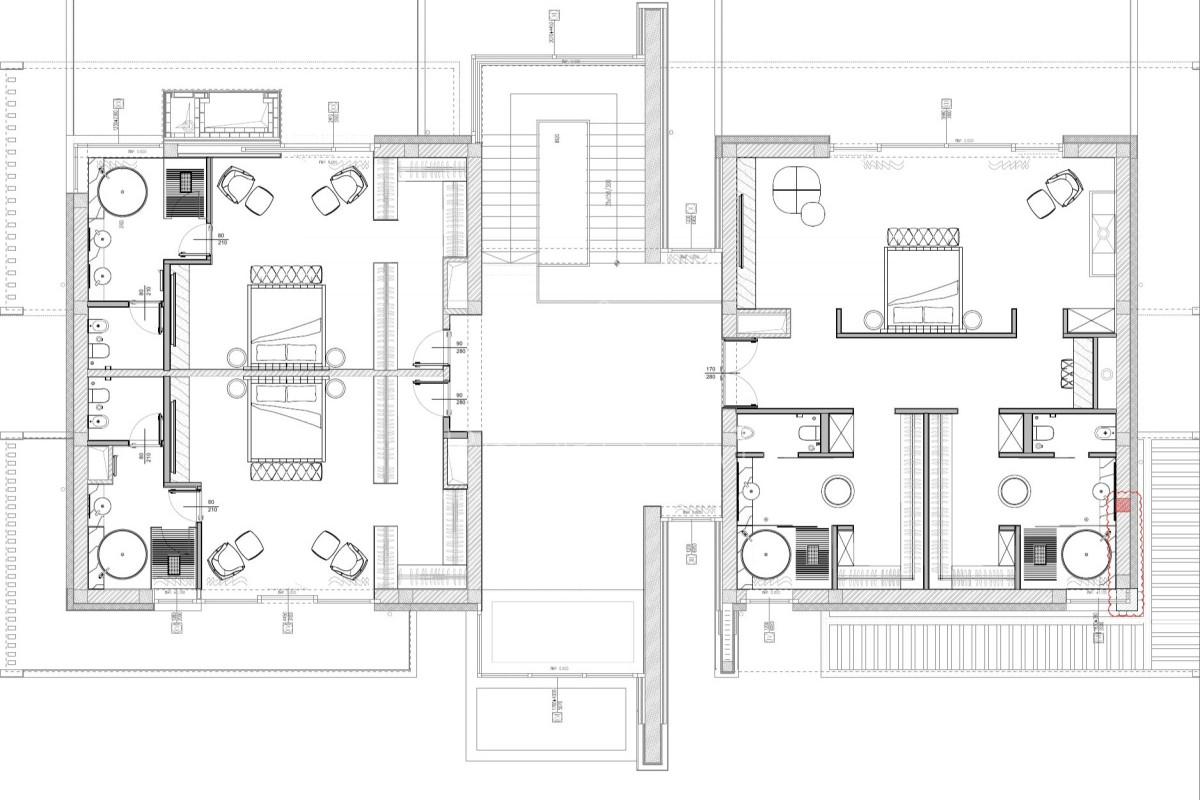 2 этаж: мастер-спальня с двумя гардеробными и двумя ванными