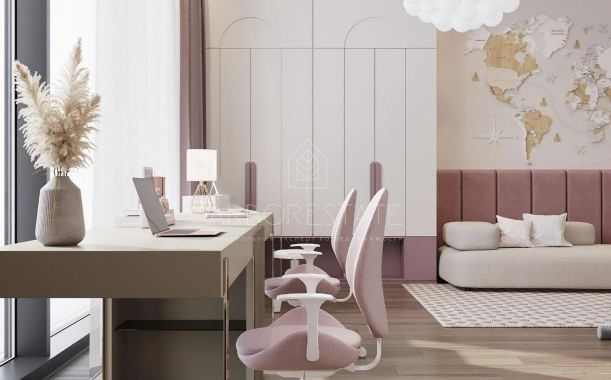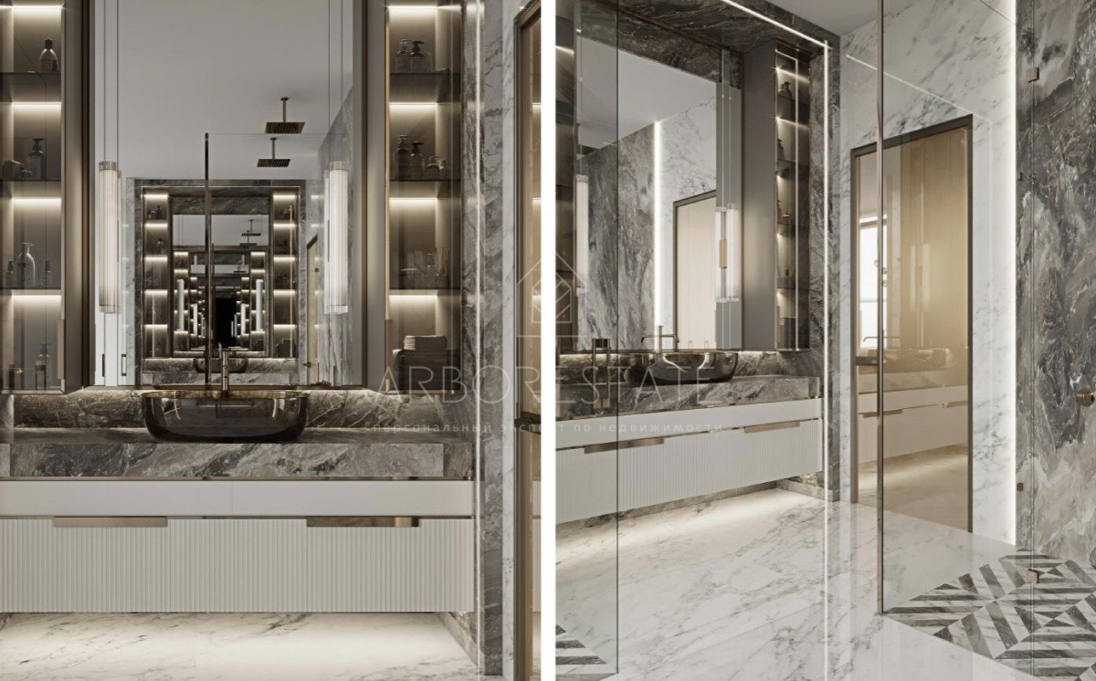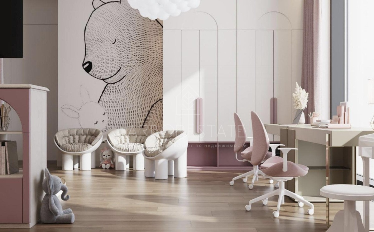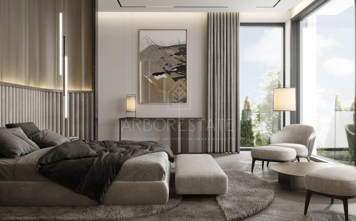 2 этаж: мастер-спальня с двумя гардеробными и ванной комнатой, 3 детские спальни, каждая - с с/у, гардеробная, комната няни.