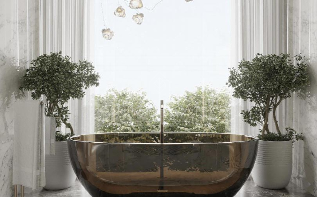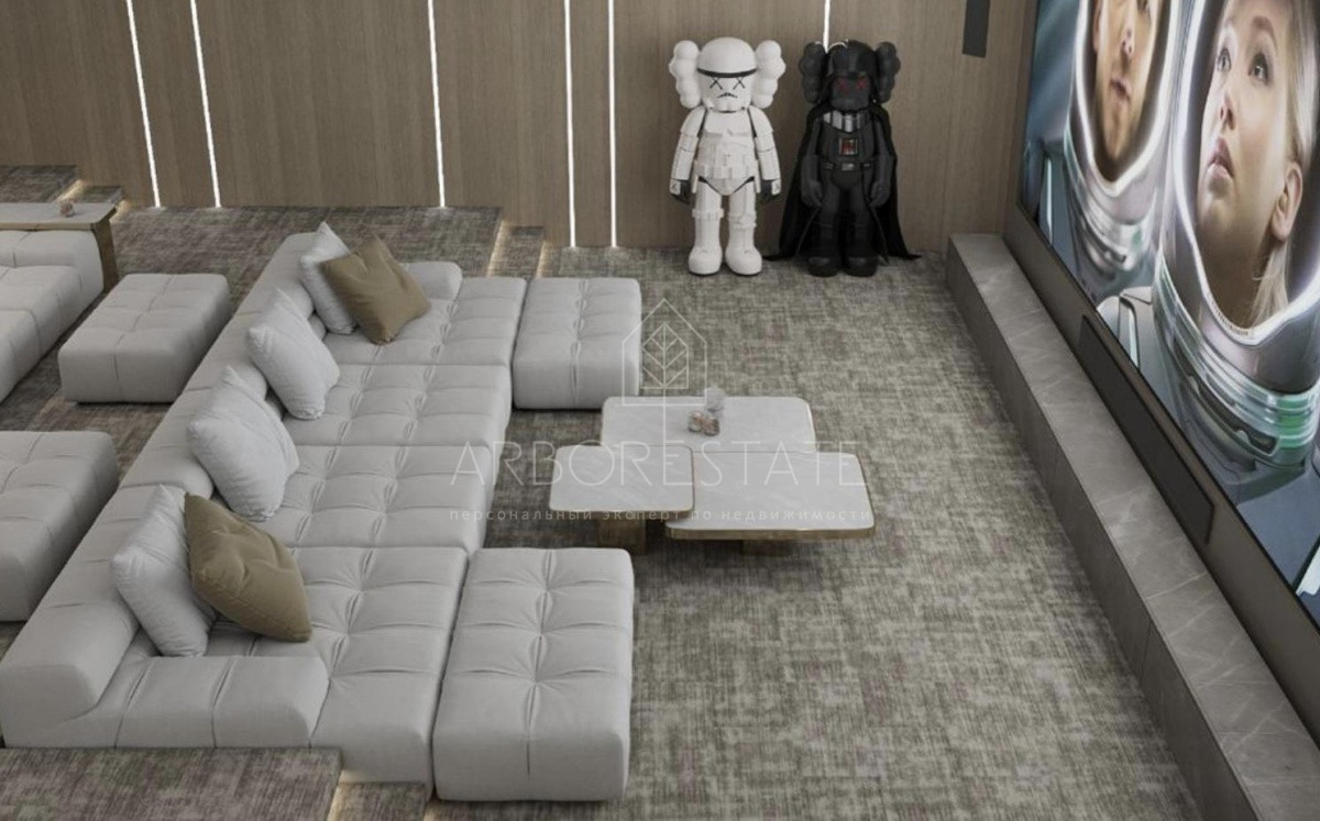 На участке предусмотрен свой комплекс SPA площадью 348 кв.м (бассейн, хамам, сауна, тренажерный зал, салон красоты, массажный кабинет, 2 санузла), гостевой дом 206 м2 и двухэтажный гараж площадью 277 м2 с квартирой для персонала.