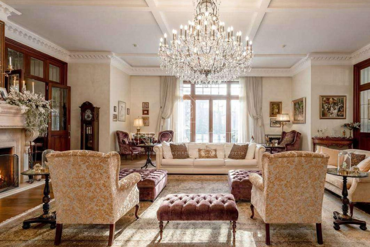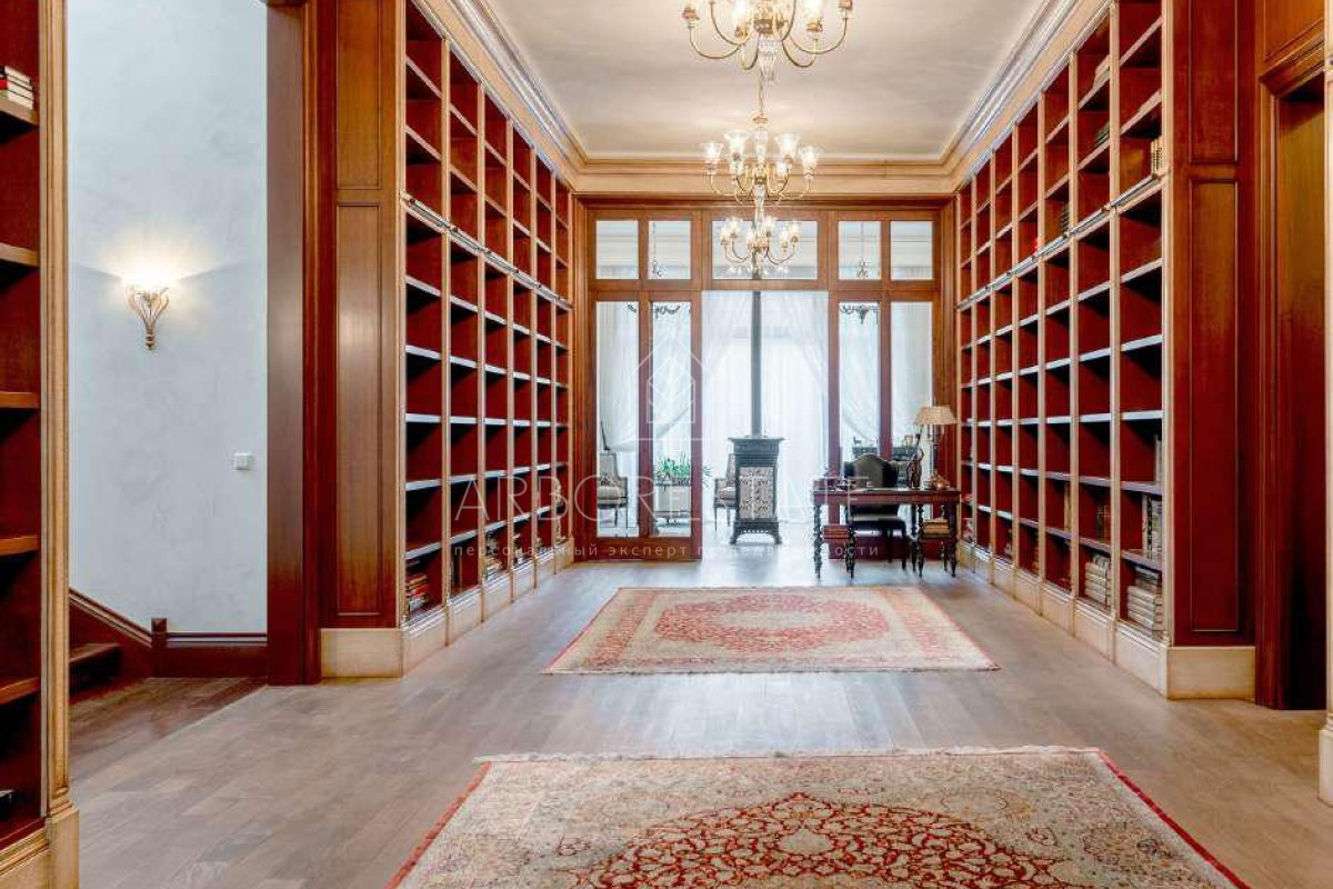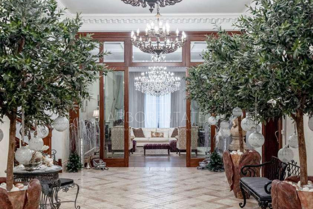 В доме расположились просторная гостиная с домашним кинотеатром, столовая – кухня, 6 мастер-спален, отдельная 2-х комнатная квартира для персонала, библиотека, кабинет, игровая, винный погреб и дегустационная, зимний сад, лифт, эксплуатируемая кровля, гараж на два автомобиля.