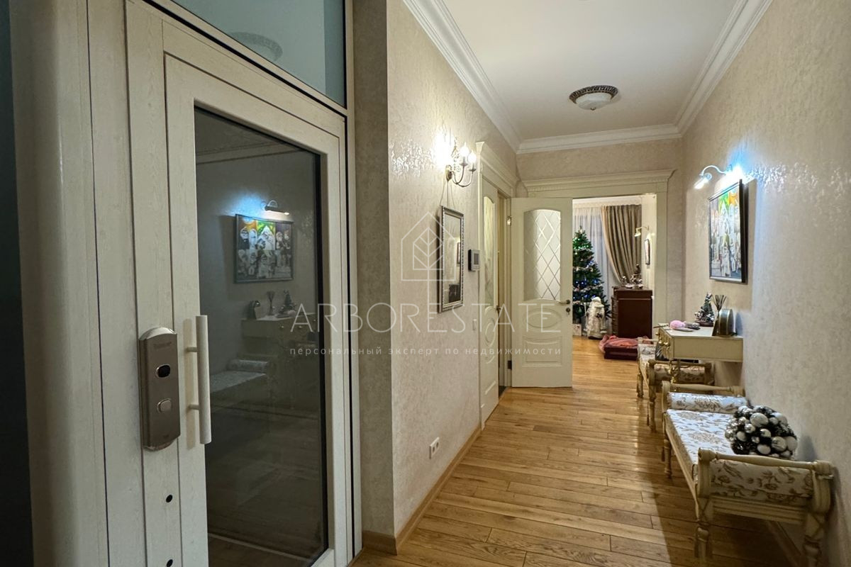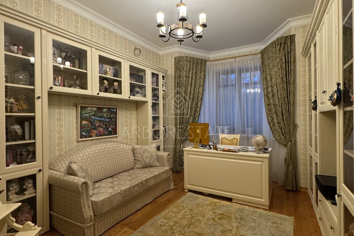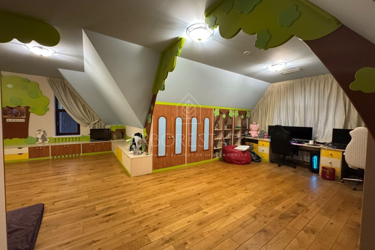 Дом площадью 365кв.м, полностью готов к проживанию, меблирован. В доме гостиная, столовая-кухня, 4 спальни, кабинет, лифт. Есть отдельностоящий гараж с блоком для персонала. Находится в обжитой части посёлка, шаговая доступность до центральной парковой зоны с озером.