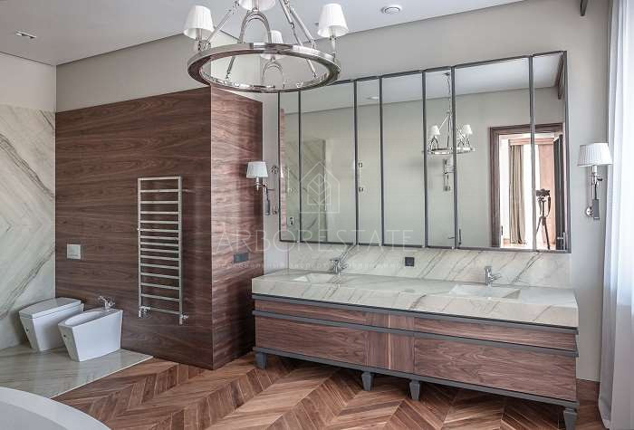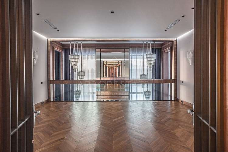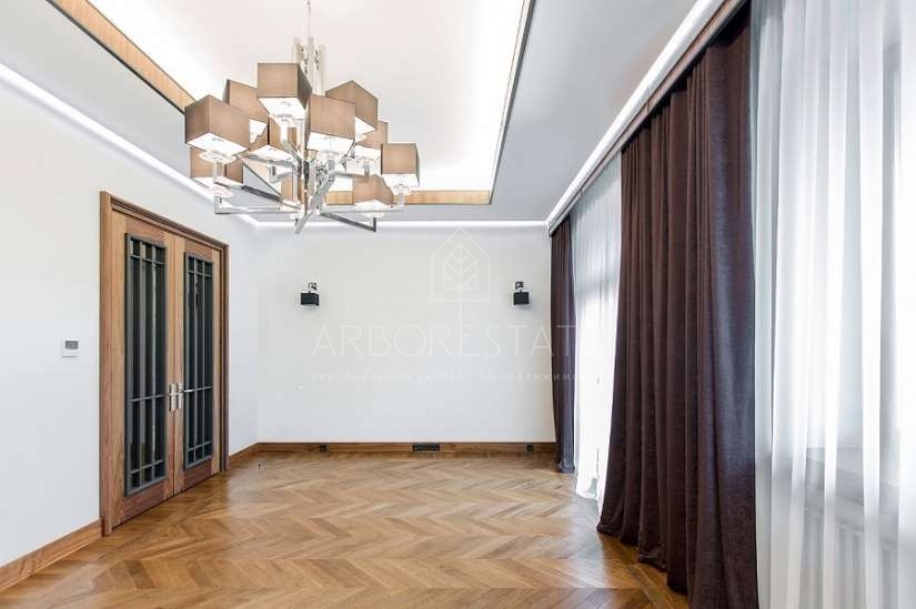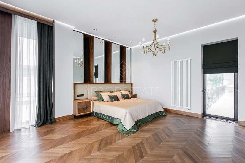 В самом сердце престижного коттеджного поселка «Жуковка XXI» расположен великолепный дом «под ключ» площадью 989 кв.м, созданный по авторскому дизайн-проекту. Каждая деталь интерьера здесь — эксклюзив, от роскошных люстр до уникальной мебели, изготовленной по эскизам архитектора. Высокие потолки, увеличенные дверные проемы и панорамные окна наполняют пространство светом, а натуральные материалы — мрамор, дуб, оникс и стекло — подчеркивают статусность резиденции.