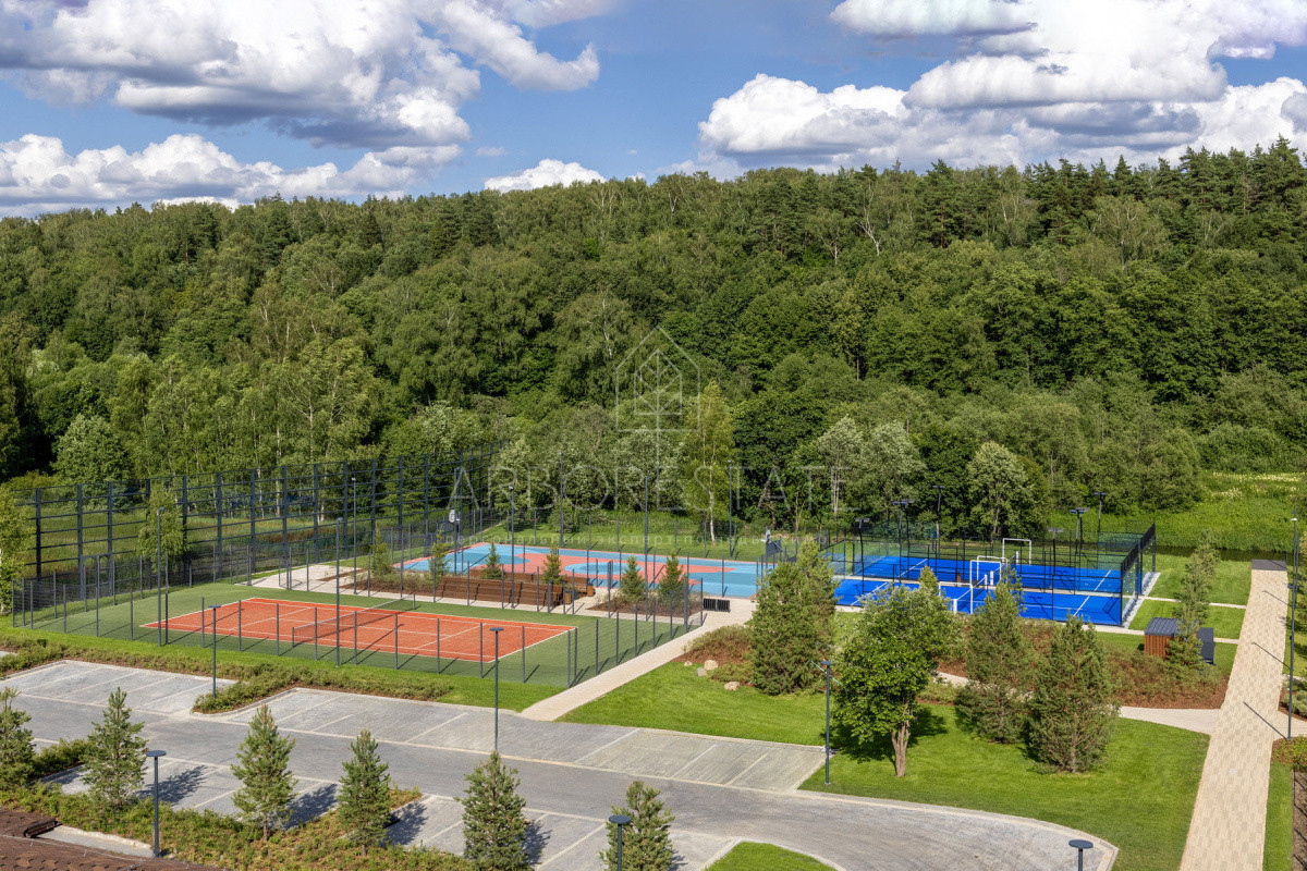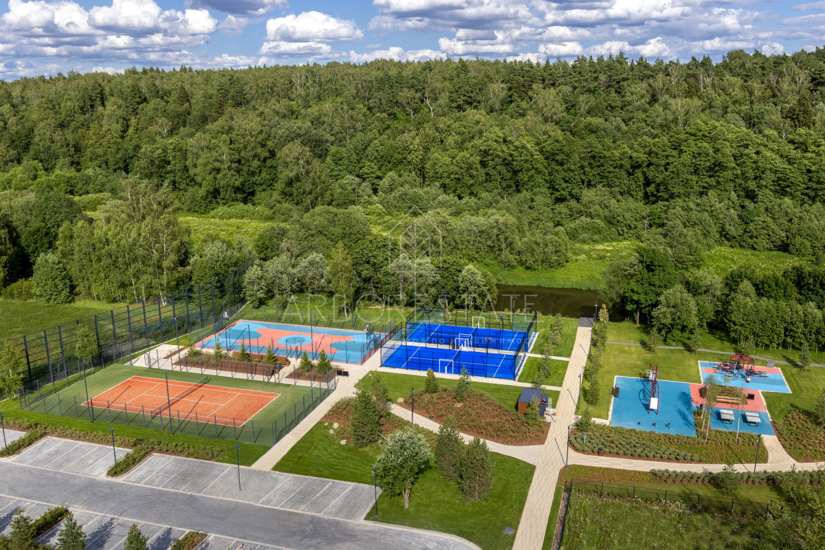 В северной части сконцентрированы спортивные зоны: падел-корты, теннисный корт, универсальная спортивная площадка для игры в баскетбол, мини-футбол и волейбол, а также зона воркаута, настольный теннис и мини-гольф.