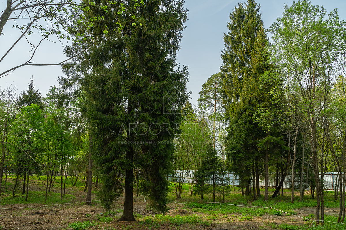 Приватный участок только с 1 соседом. На участке растут вековые сосны и ели. Располагается в дальней, максимально тихой части поселка.